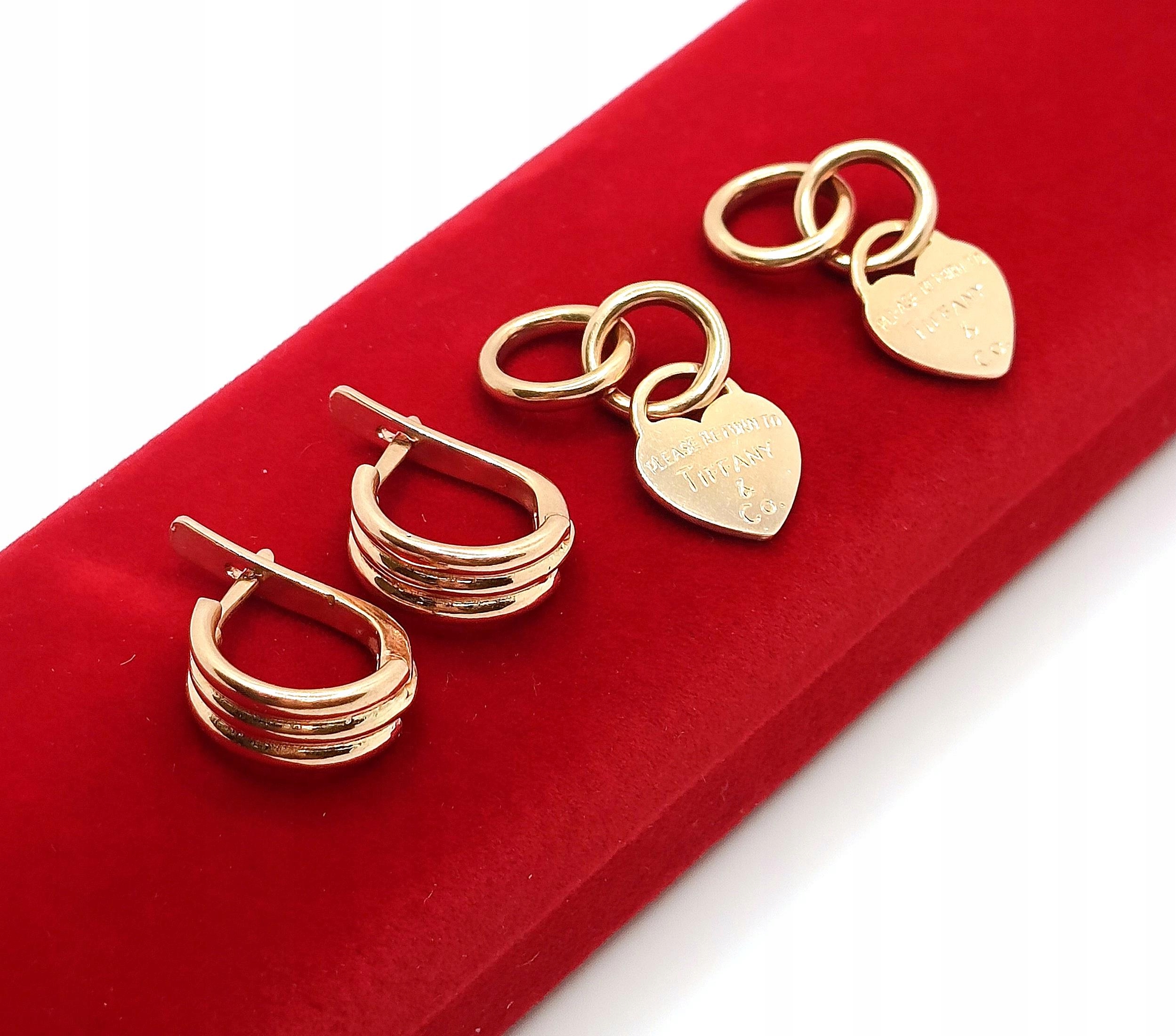 Oferujemy na sprzedaż piękne, złote kolczyki 2 w 1.