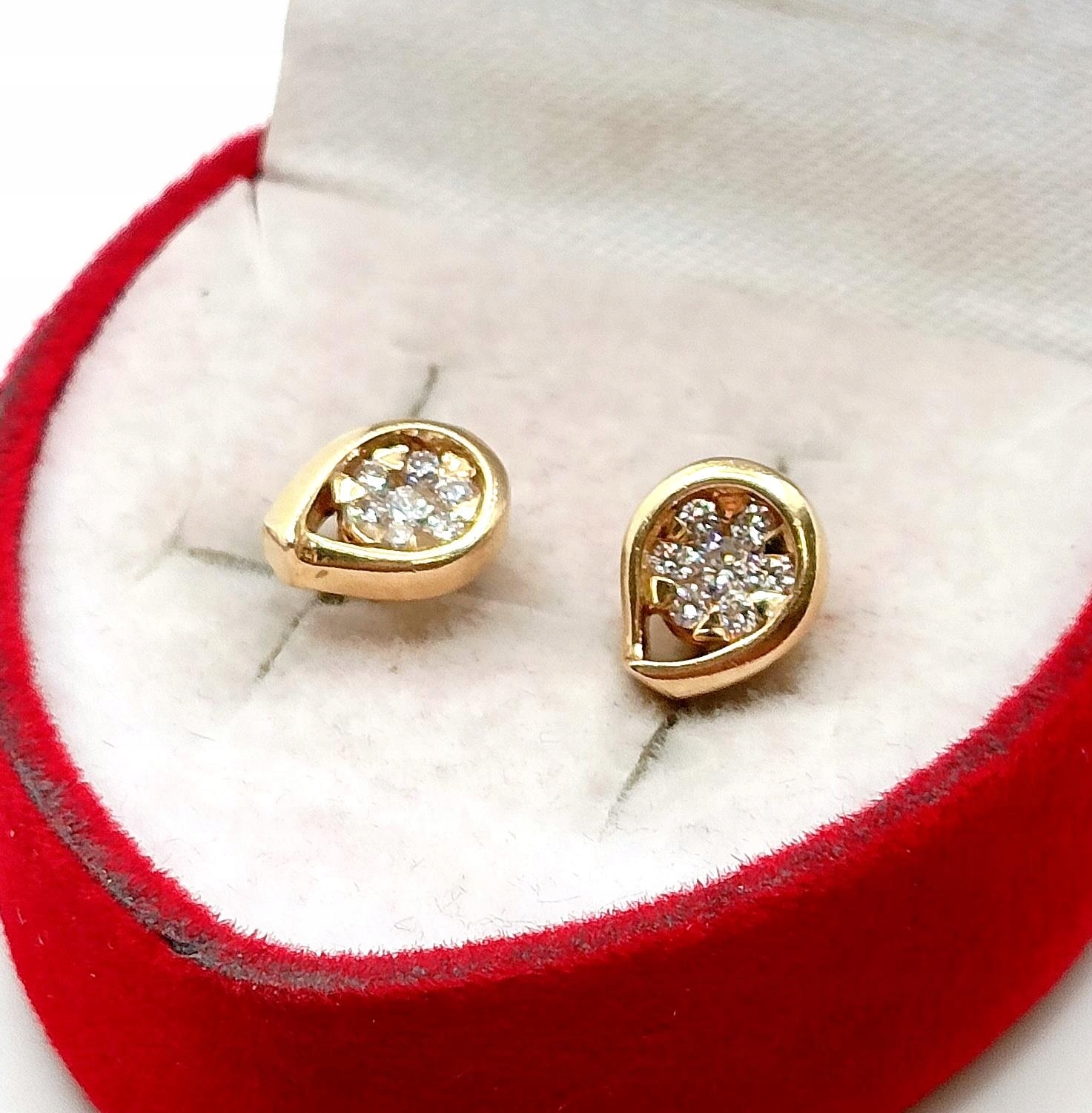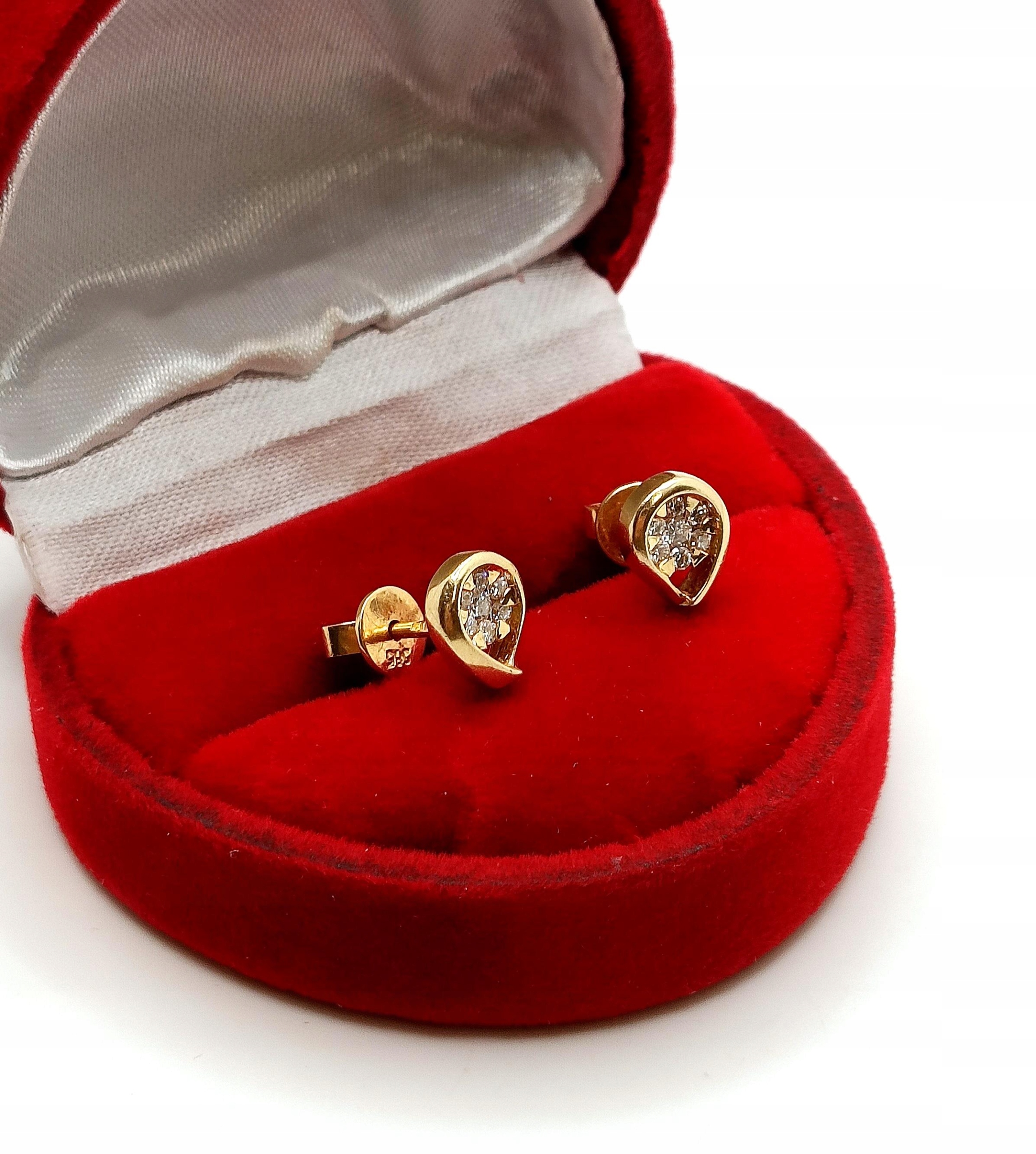 Złote kolczyki z Brylantami 0,14 ct sztyft PR.585 W:1,87 gr