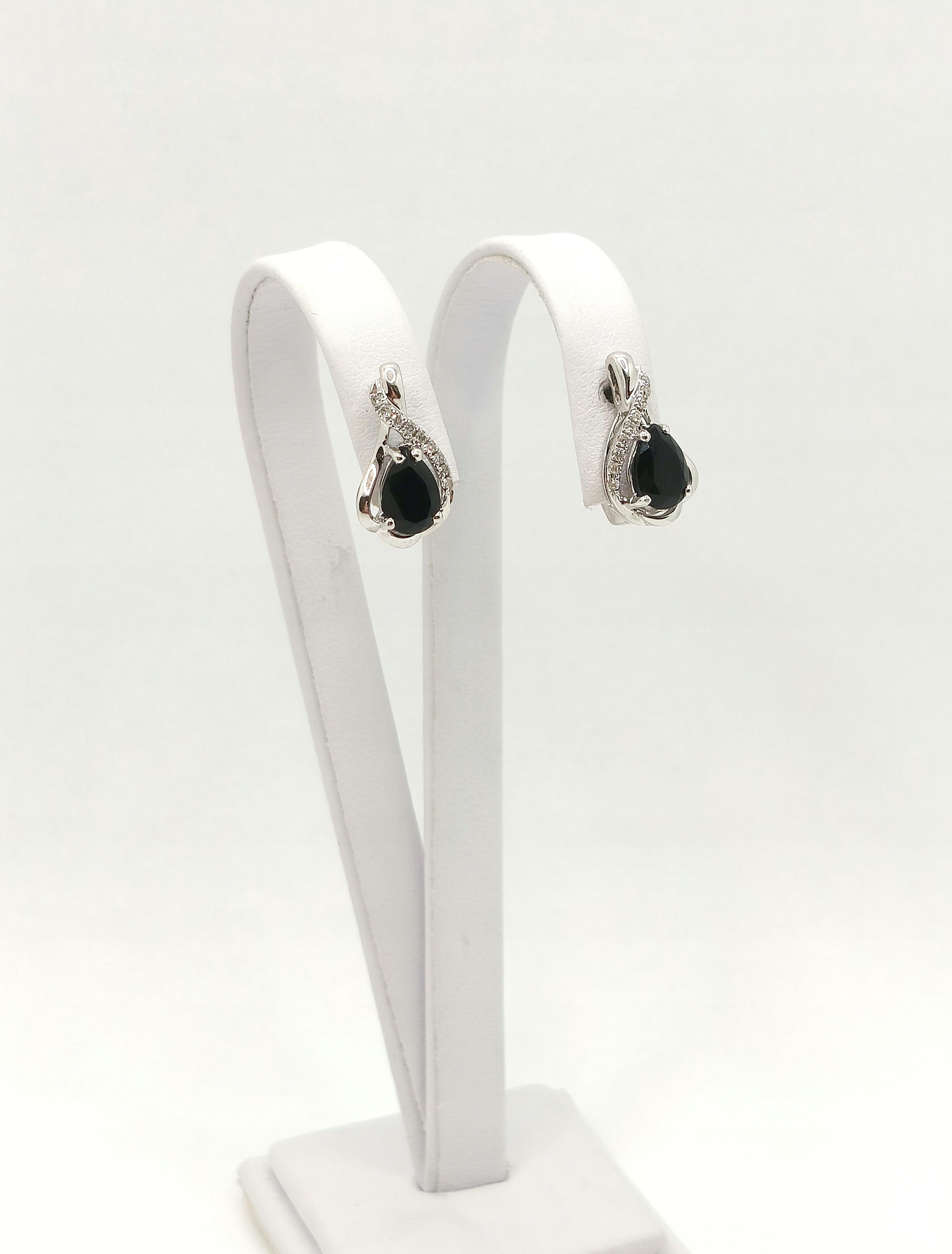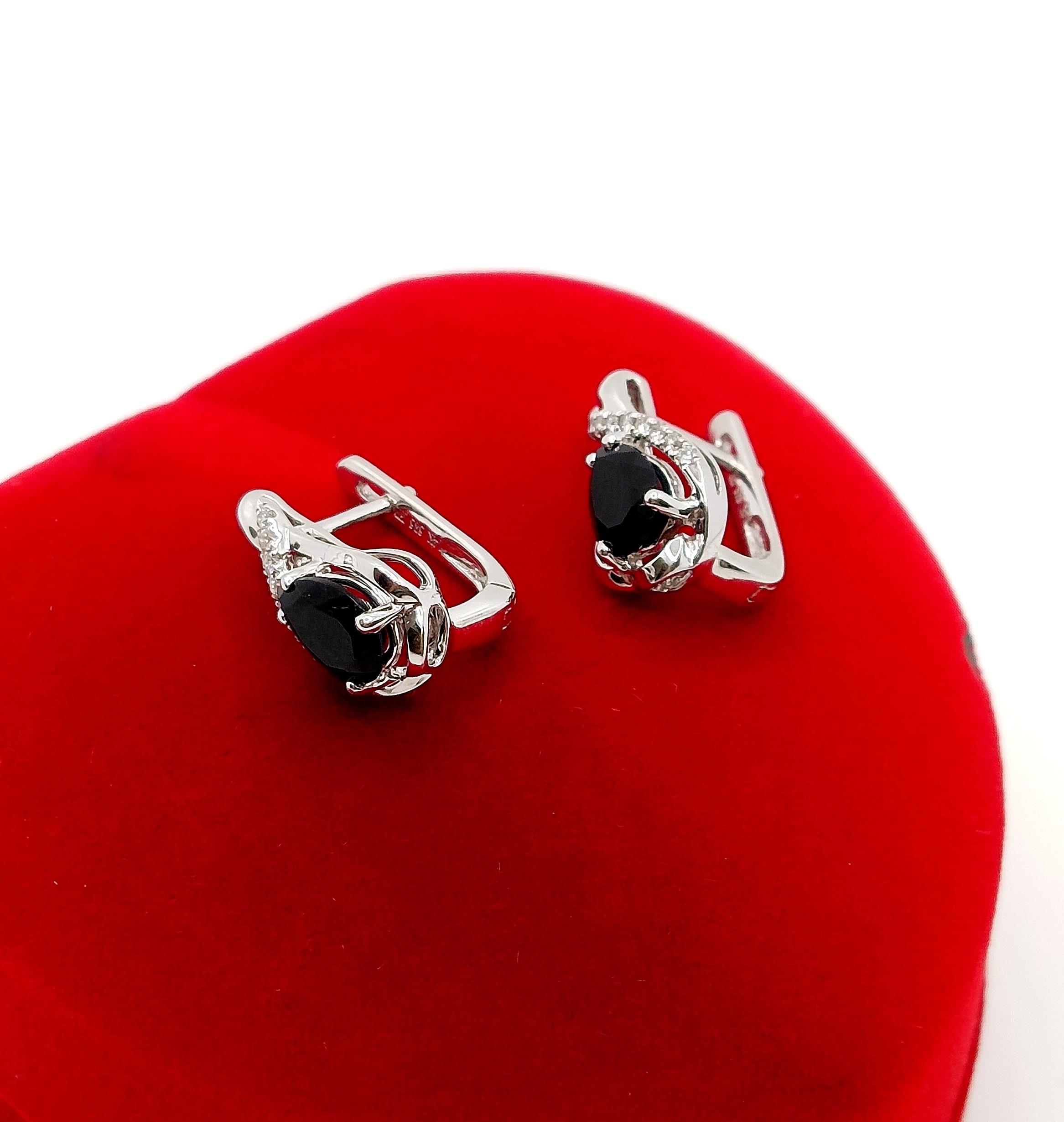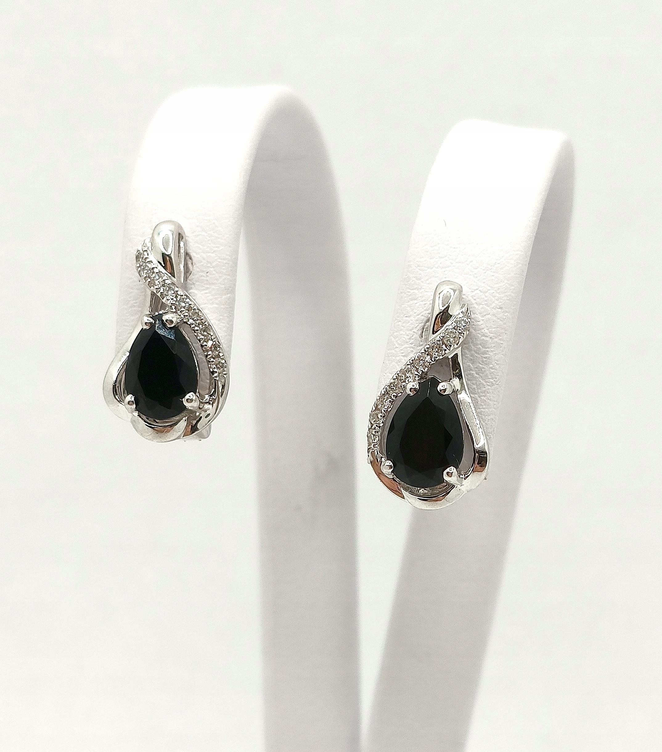 Oferujemy na sprzedaż piękne, złote kolczyki ozdobione brylantami i onyksem.