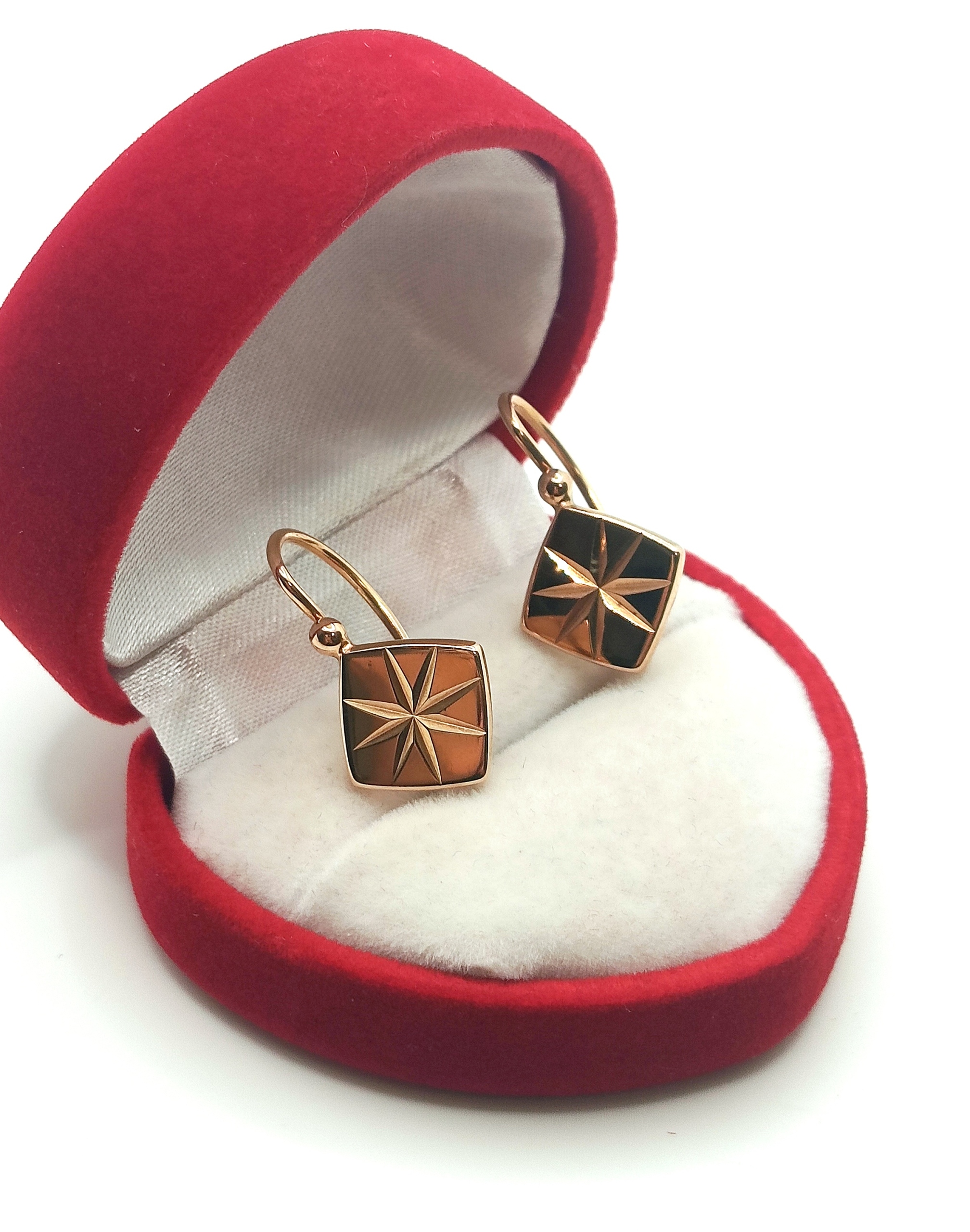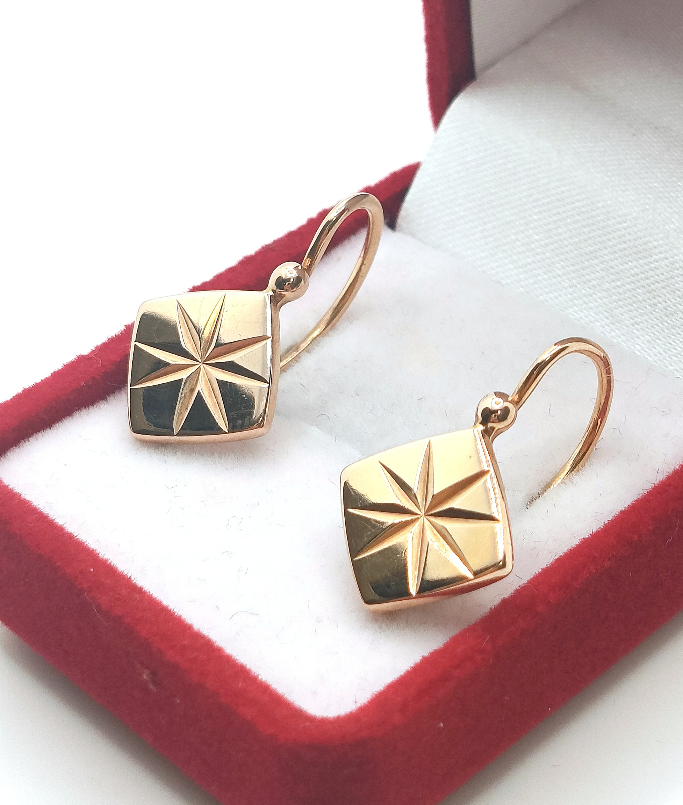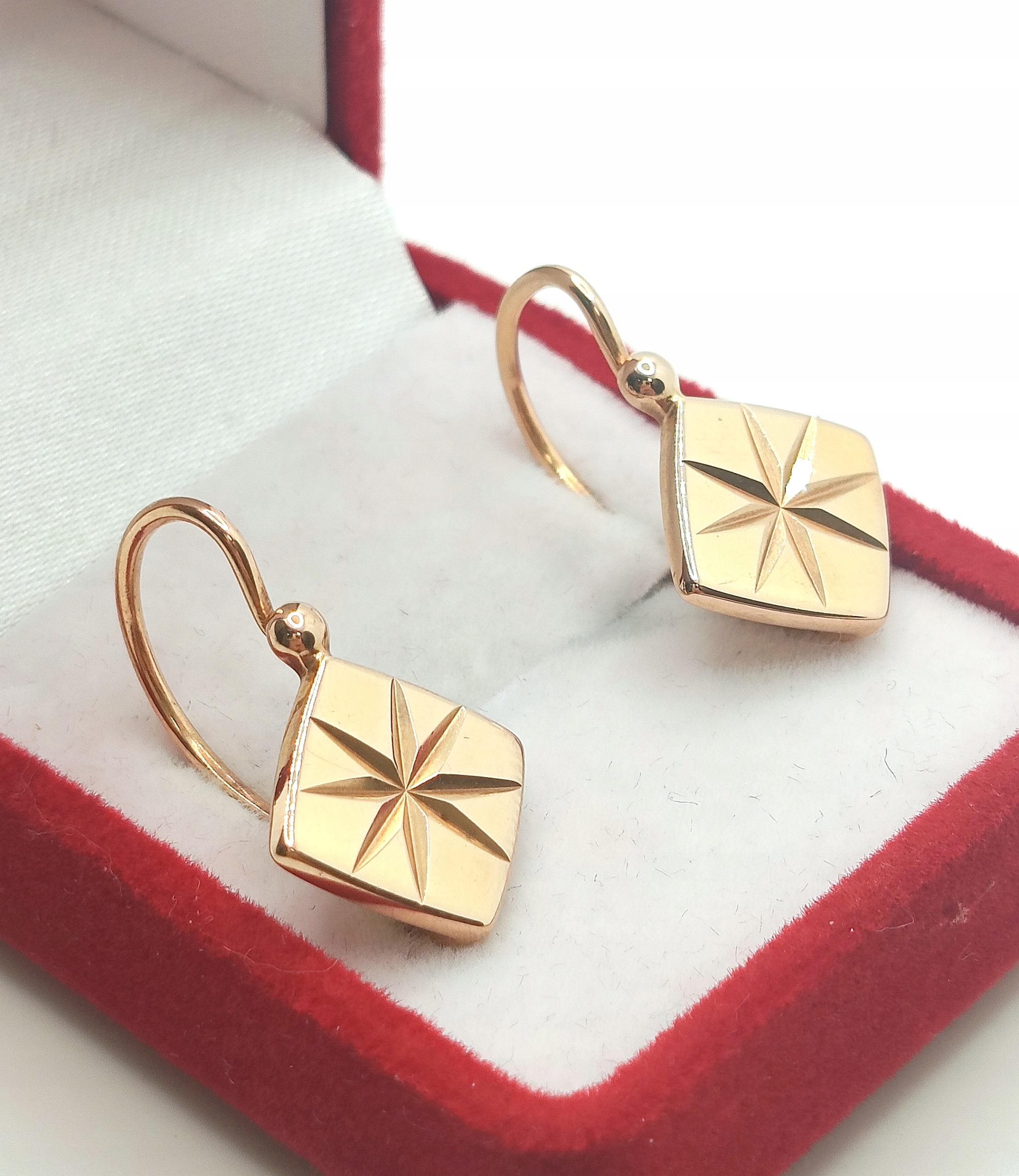 Oferujemy na sprzedaż piękne, złote kolczyki ozdobione motywem gwiazdy.