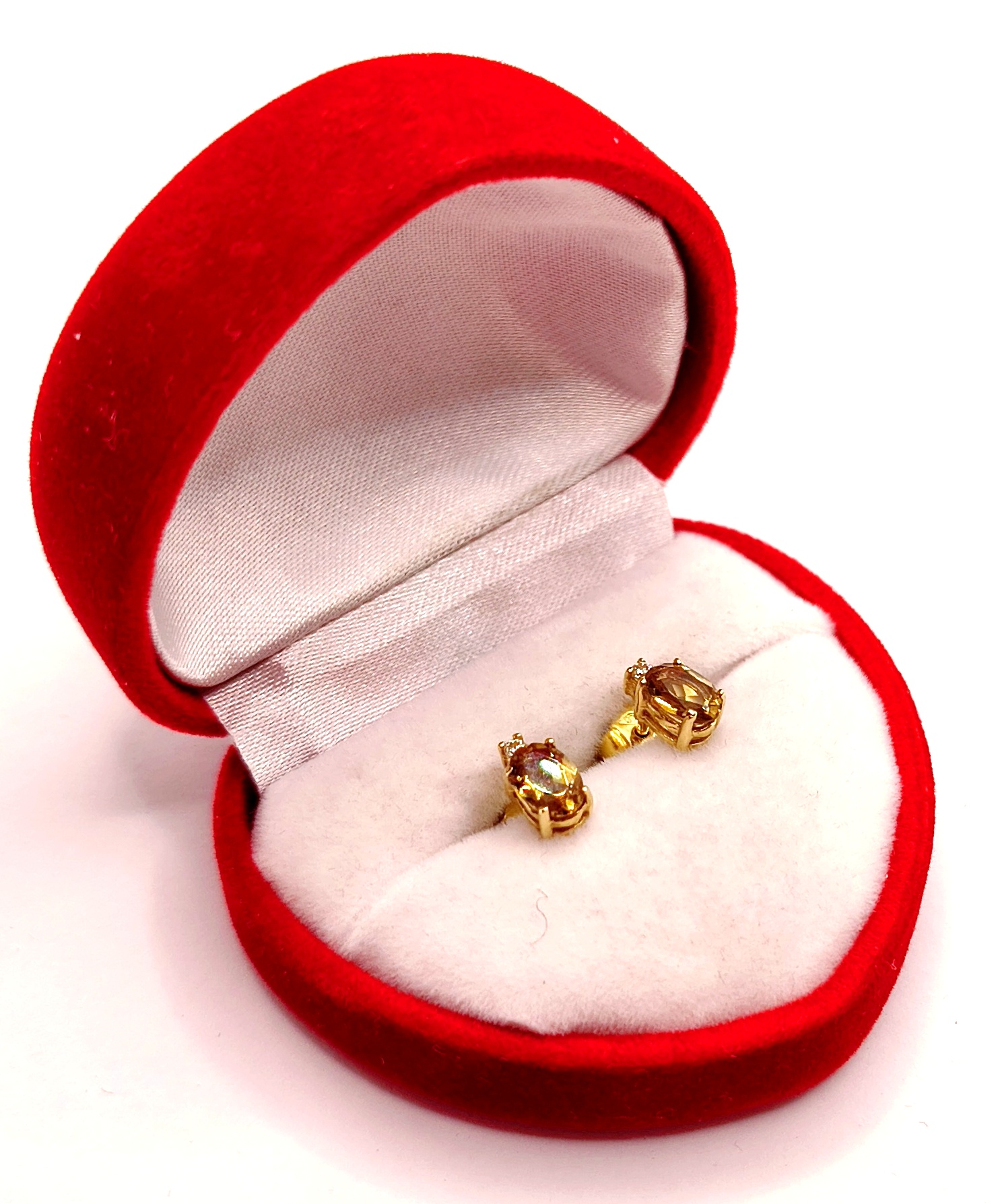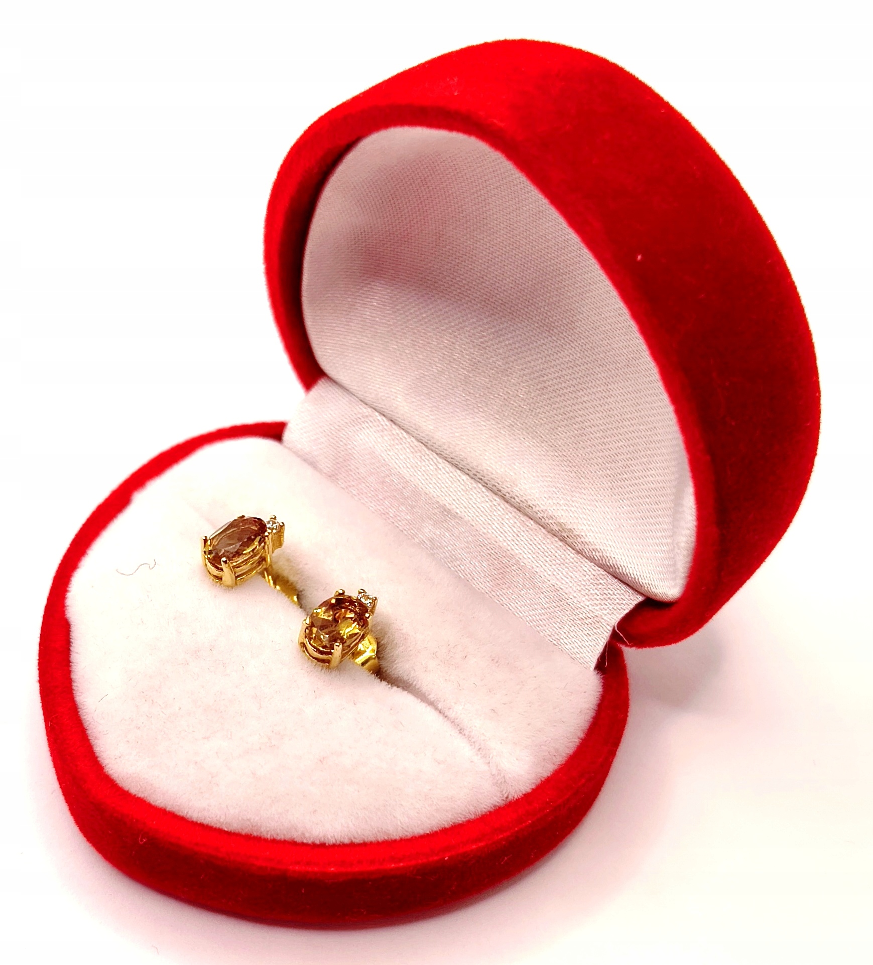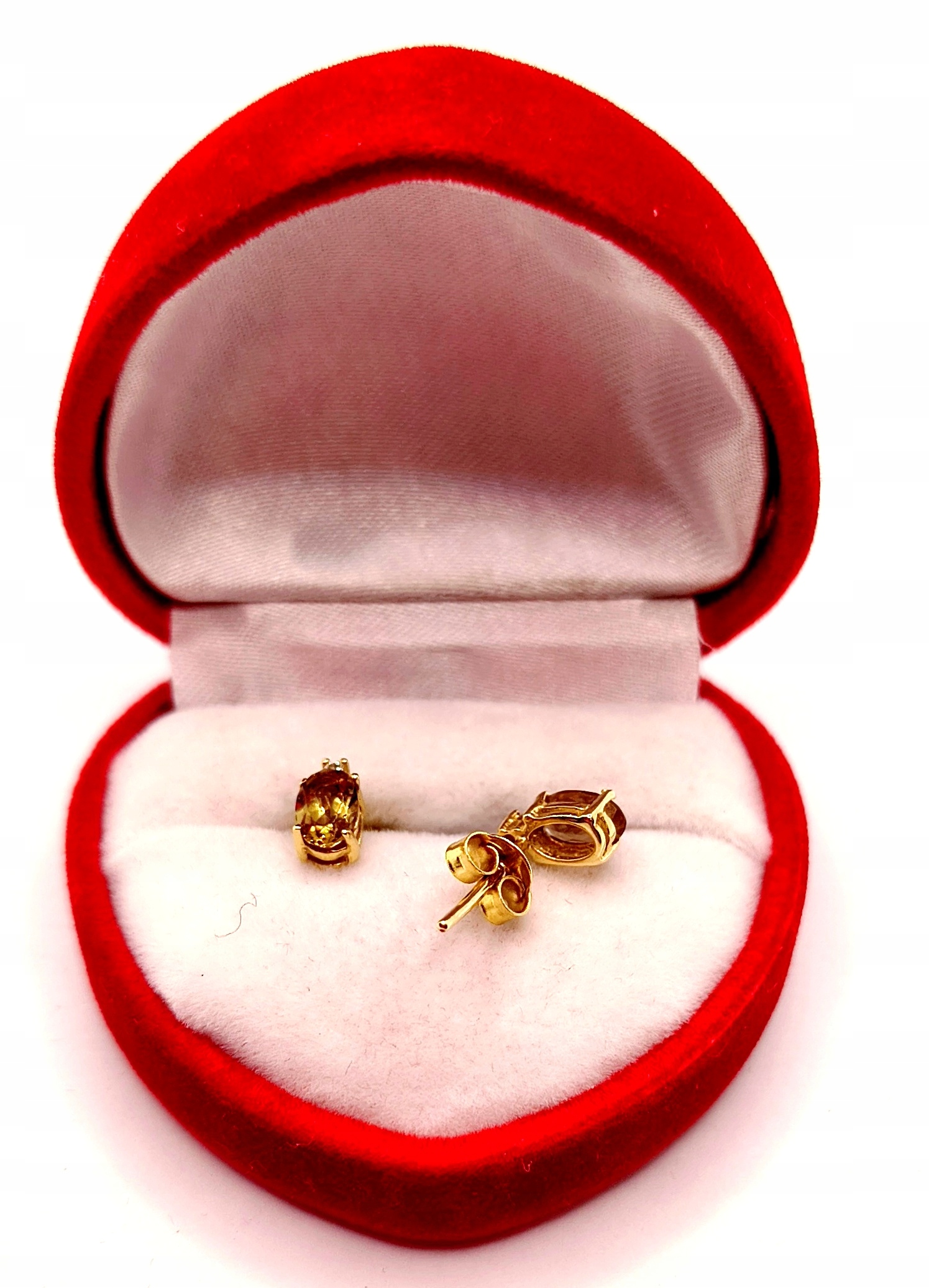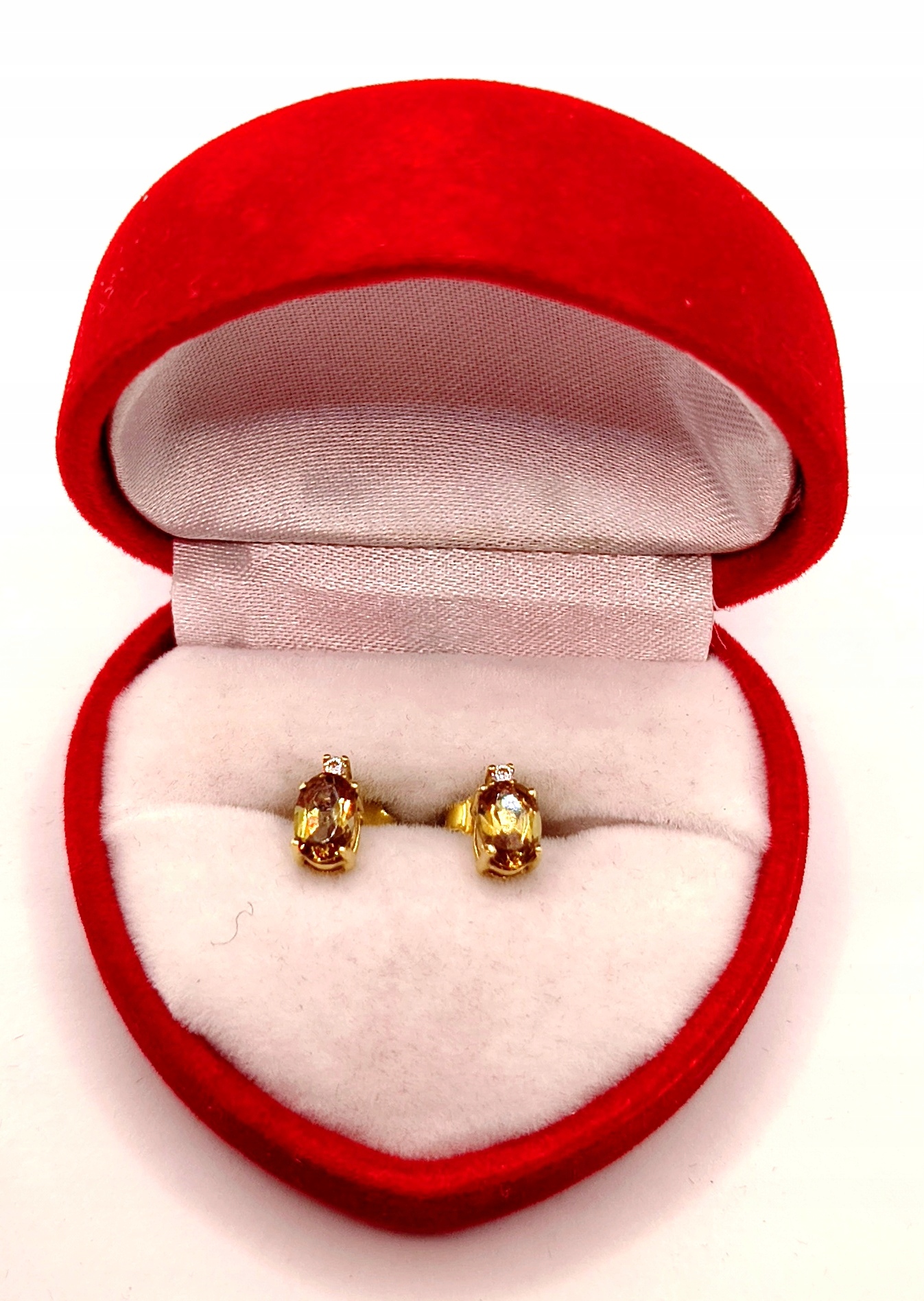 Oferujemy na sprzedaż piękne, złote kolczyki ozdobione oliwinem i cyrkoniami.