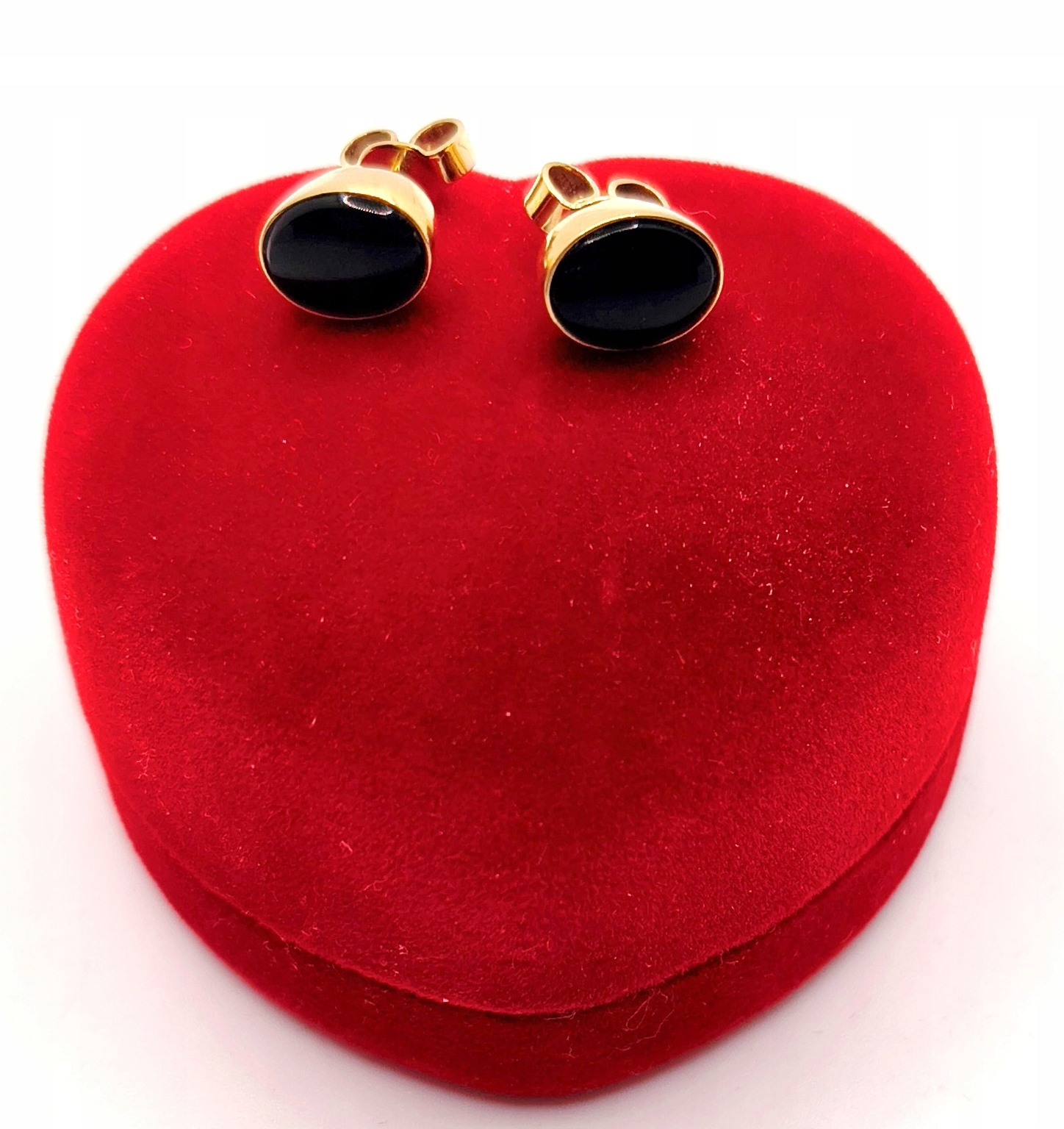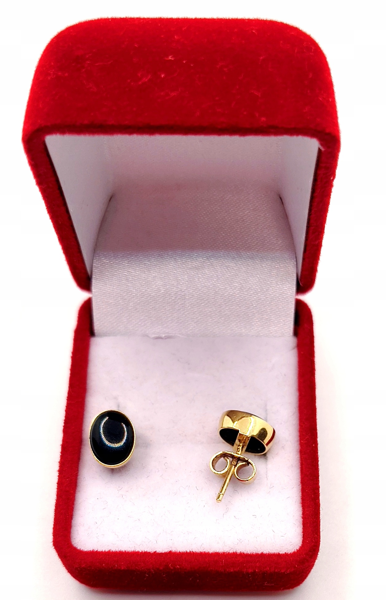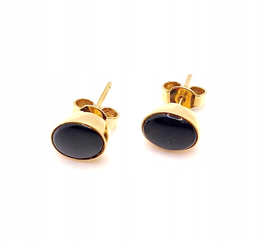 Złote kolczyki z Onyksem sztyft PR.585 W:1,59 gr