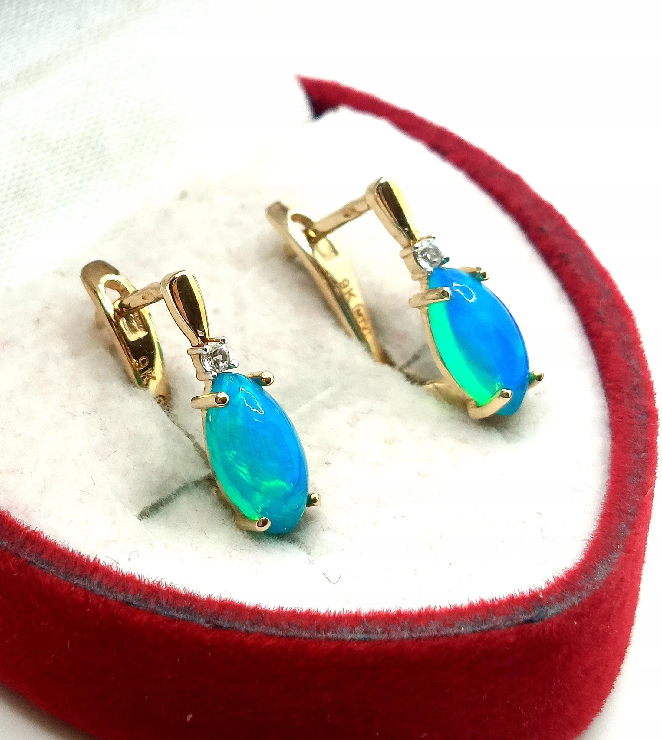 Złote kolczyki z Opalem sztyft NOWE PR.375 W:1,56 gr