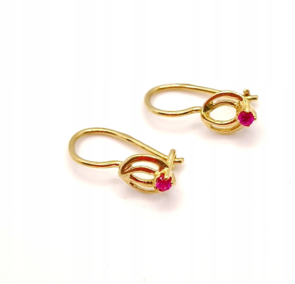 Złote kolczyki z różowym kamieniem NOWE PR.585 W:1,11 gr