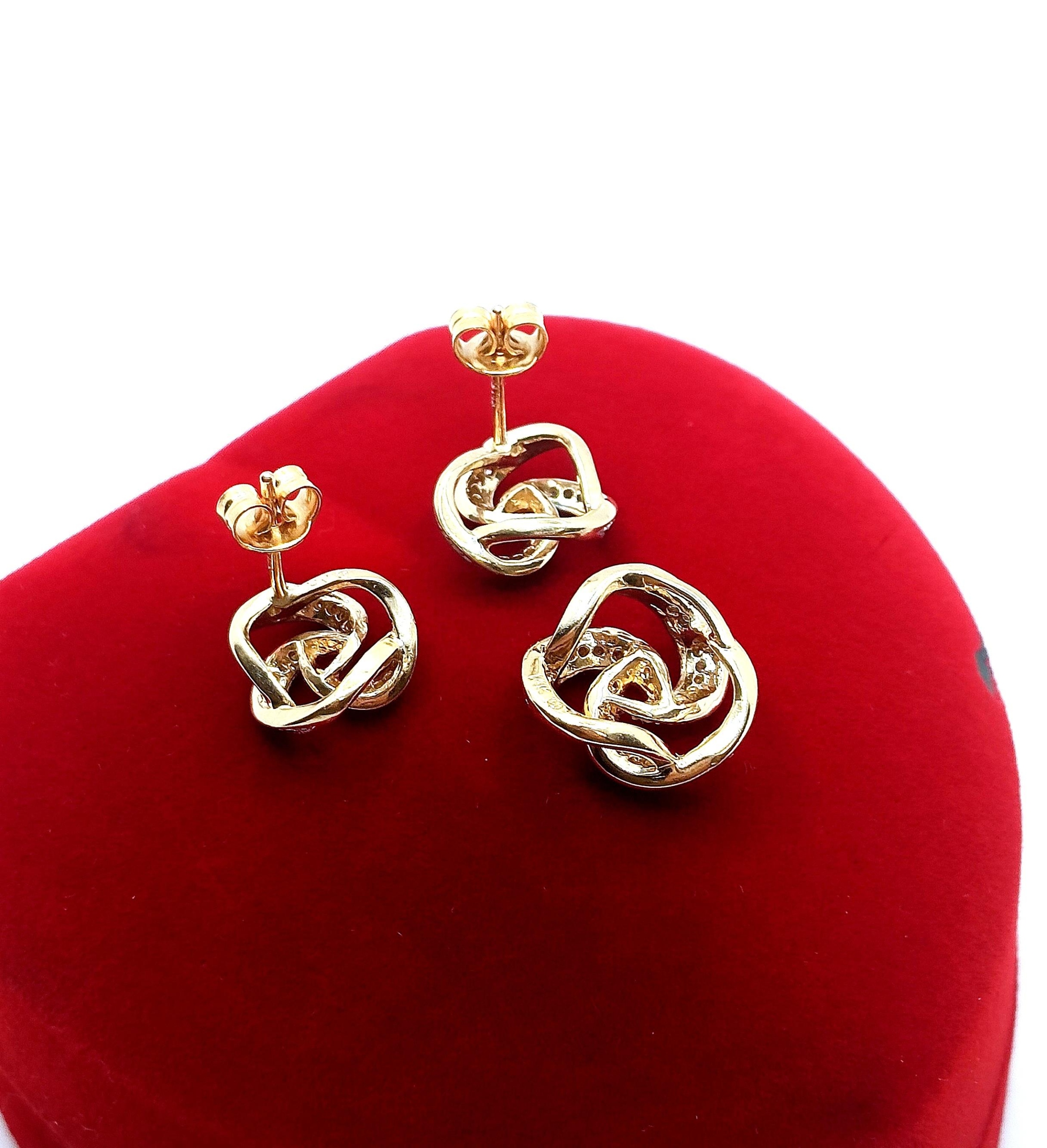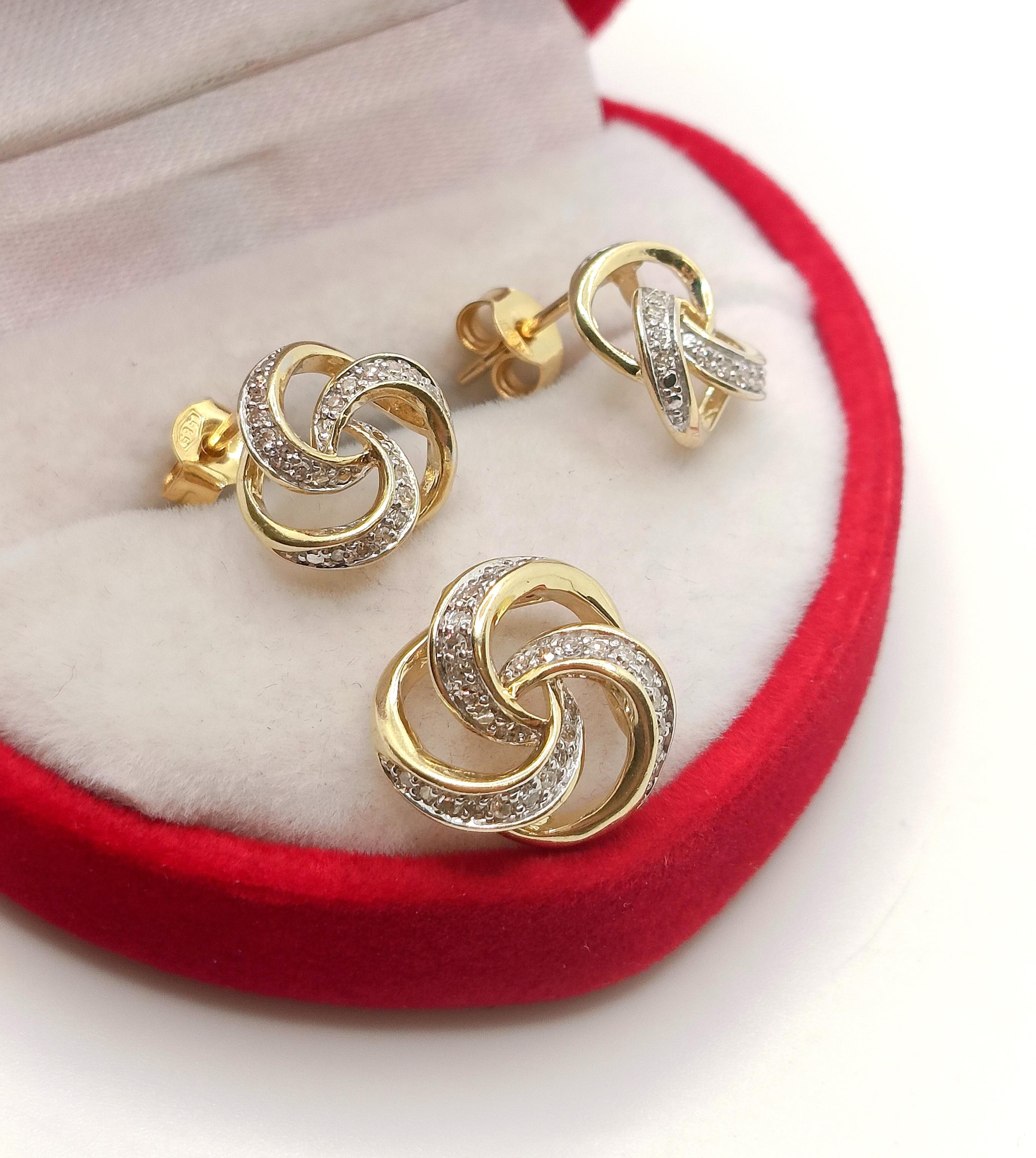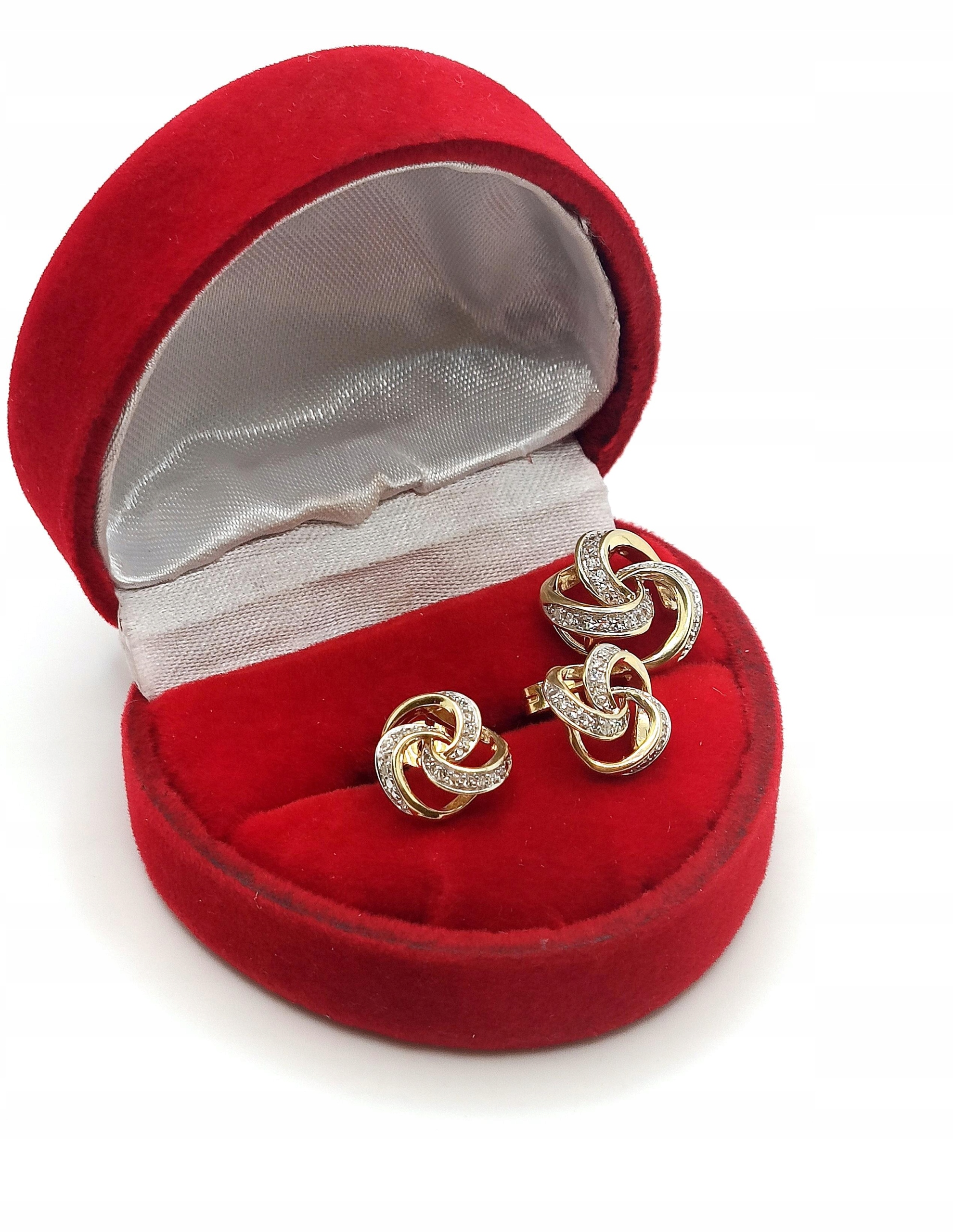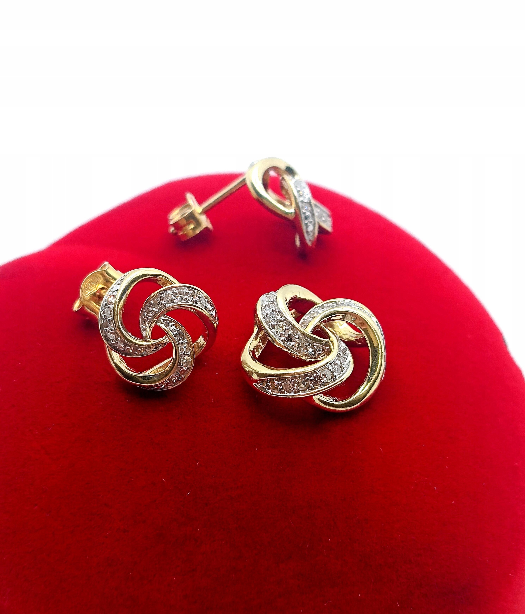W ofercie na sprzedaż mamy dla Państwa piękny, złoty komplet ozdobiony diamentami, składający się z zawieszki i koczyków.