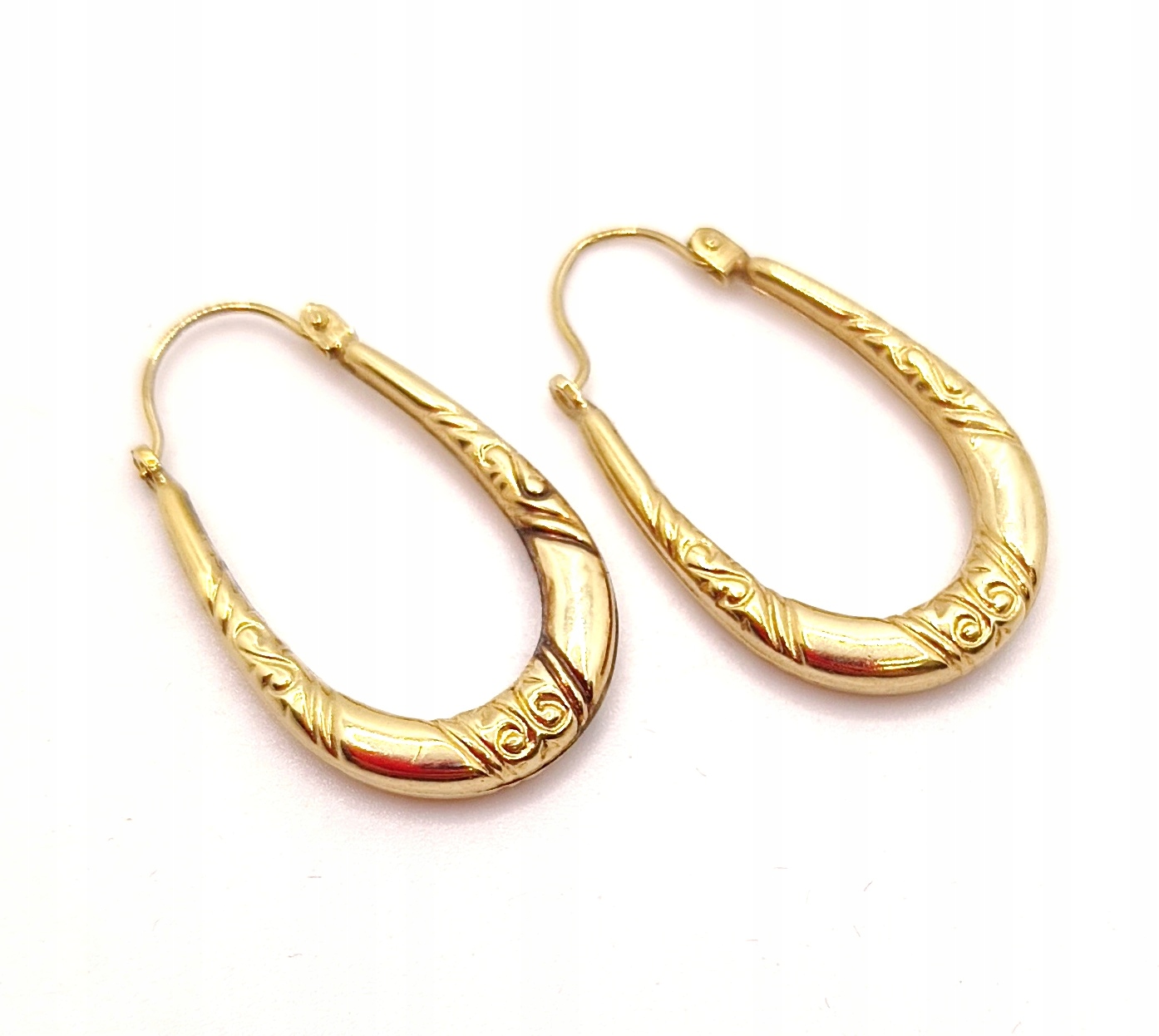 Złote kolczyki zdobione wiszące PR.375 W:1,12 gr