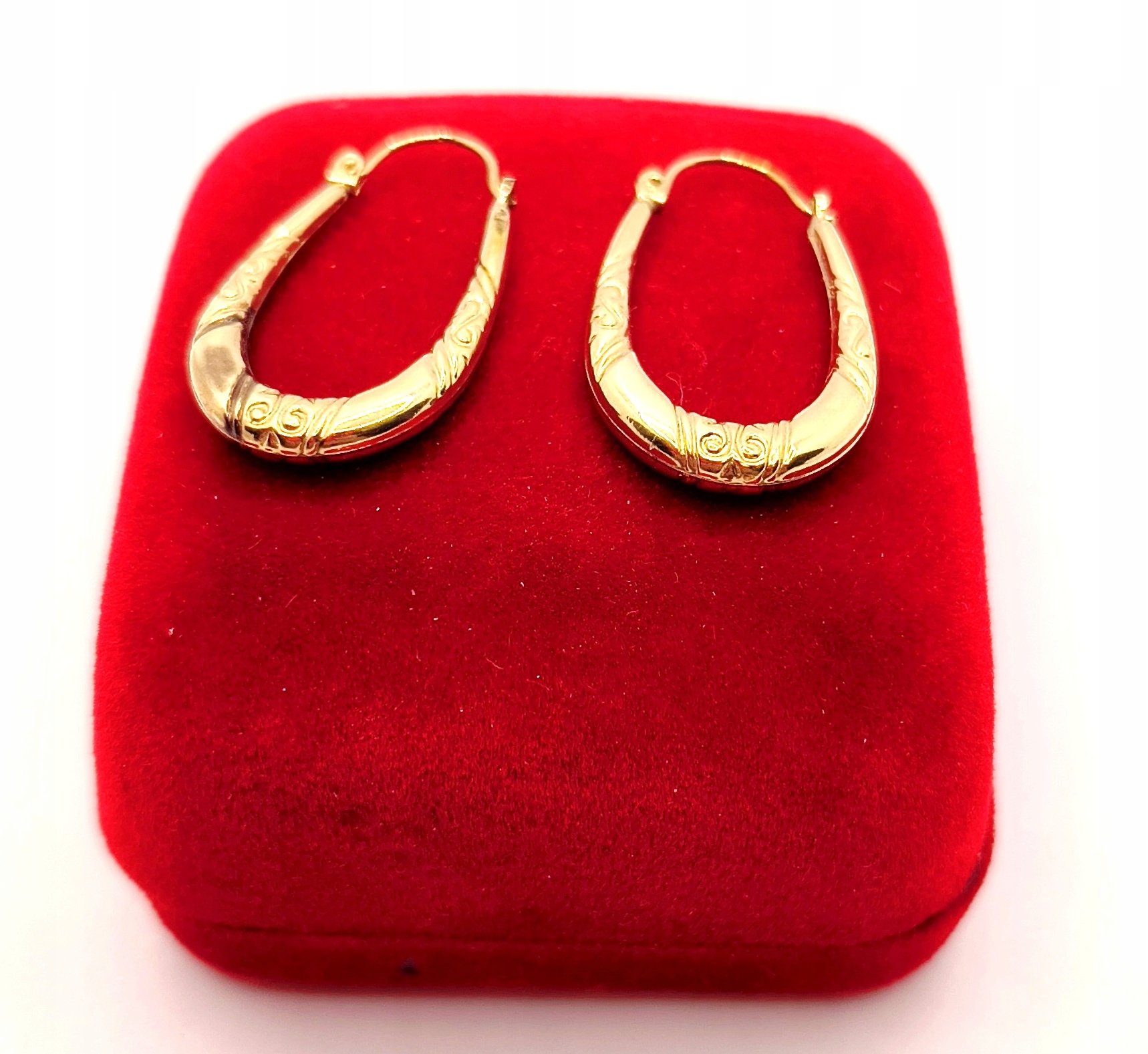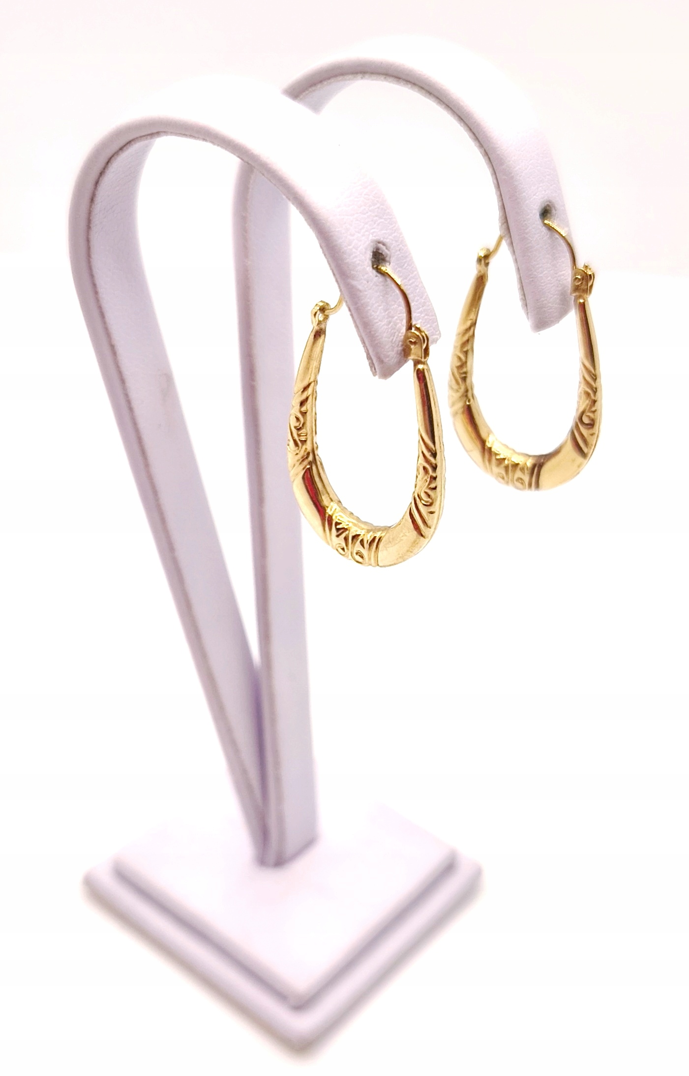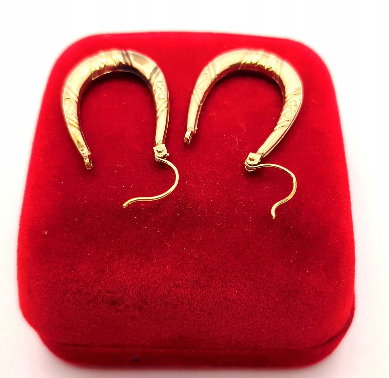 W ofercie na sprzedaż mamy dla Państwa złote, wiszące kolczyki ze zdobieniami.