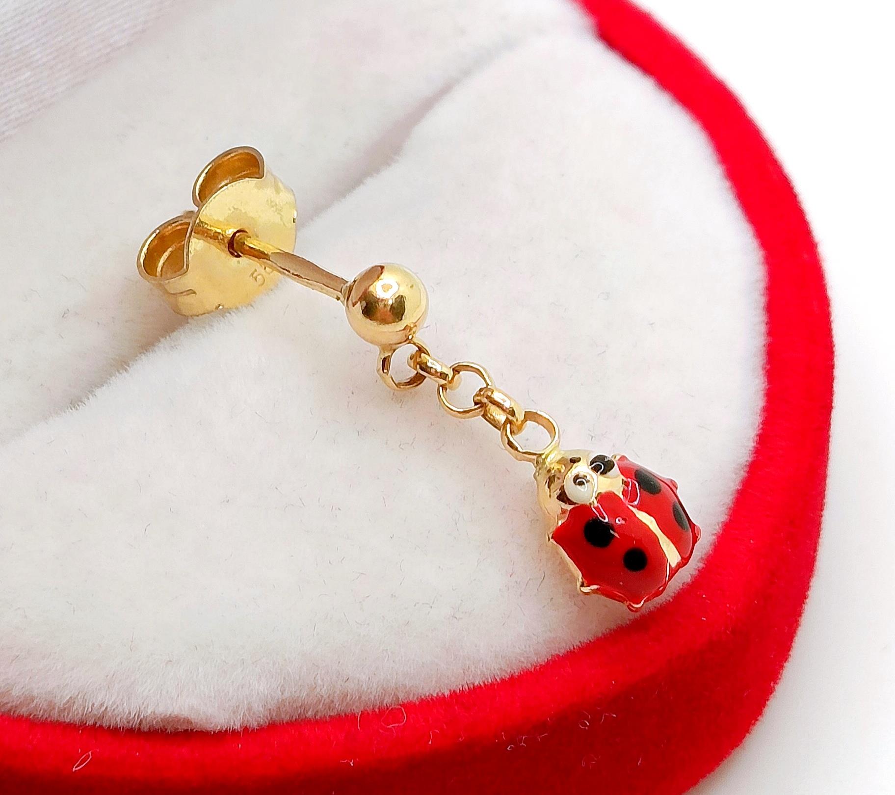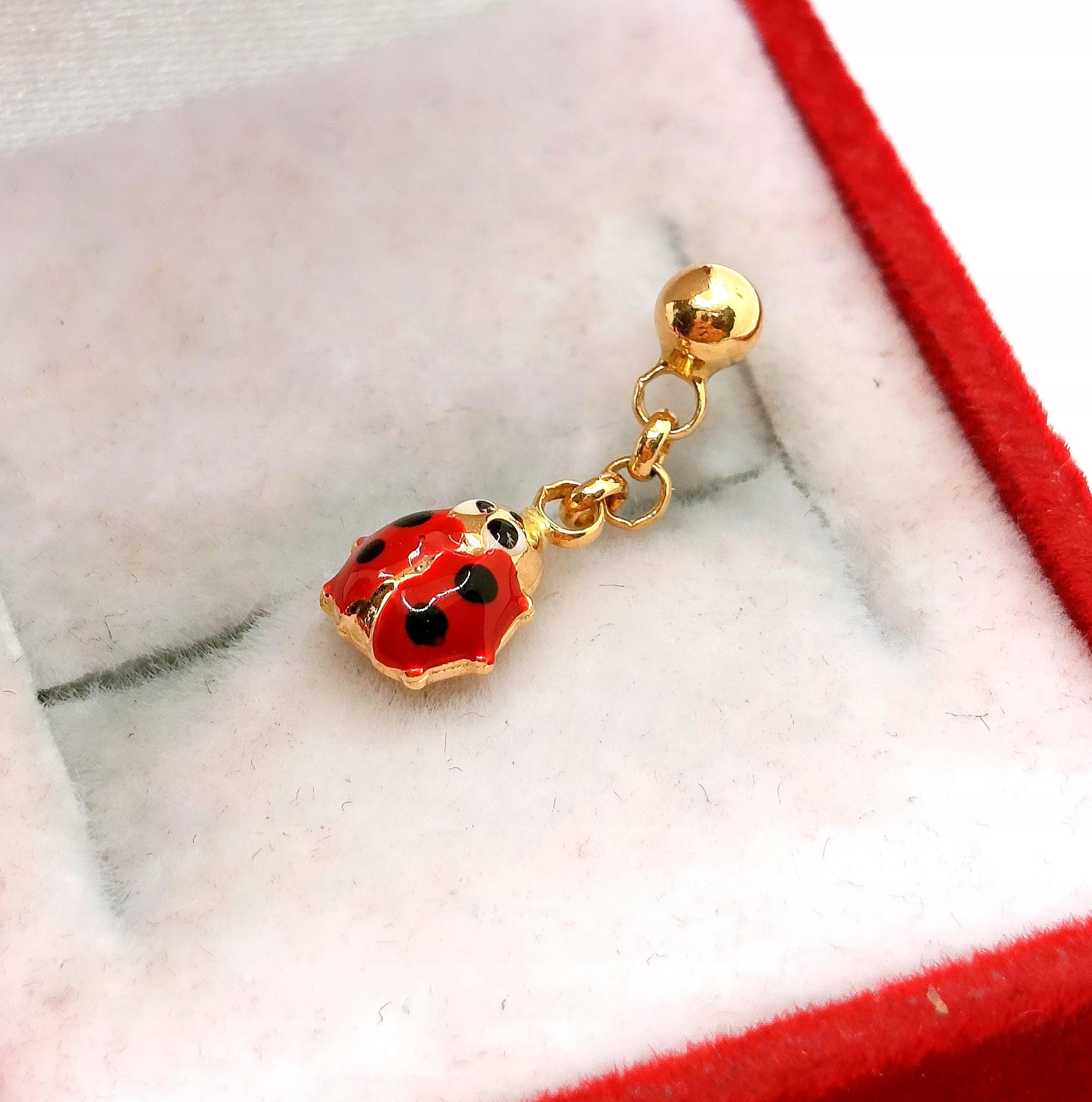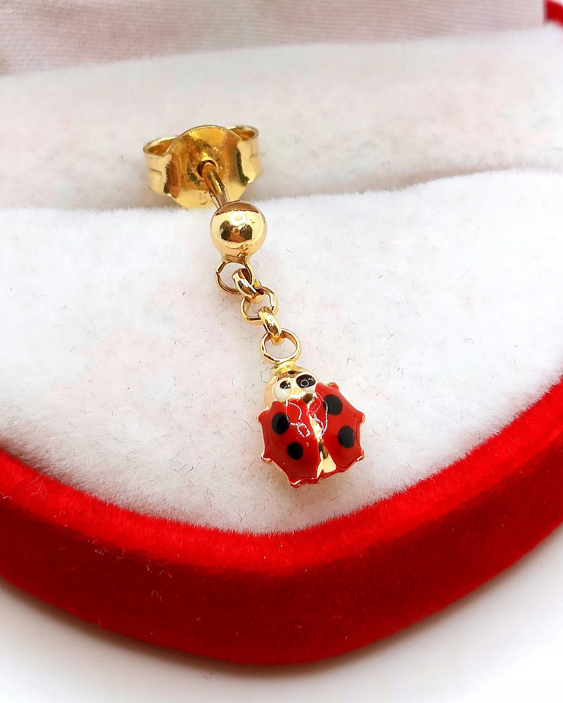 Złoty kolczyk z biedronką Pr.585 W:0,66gr