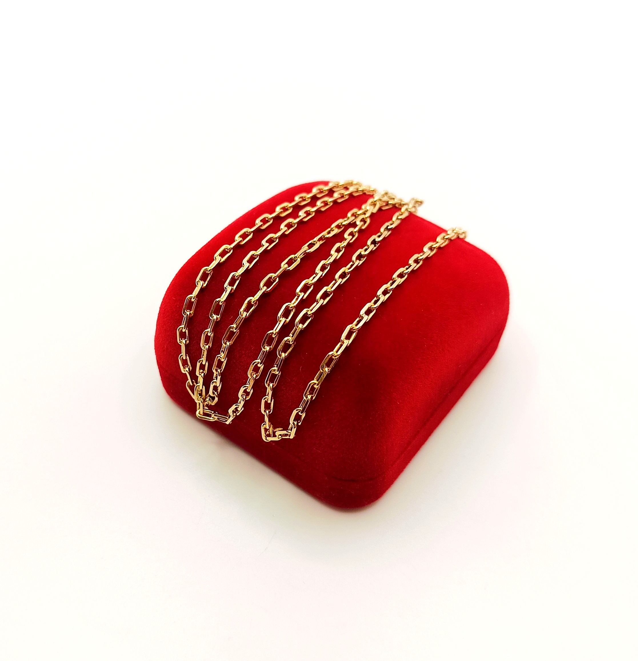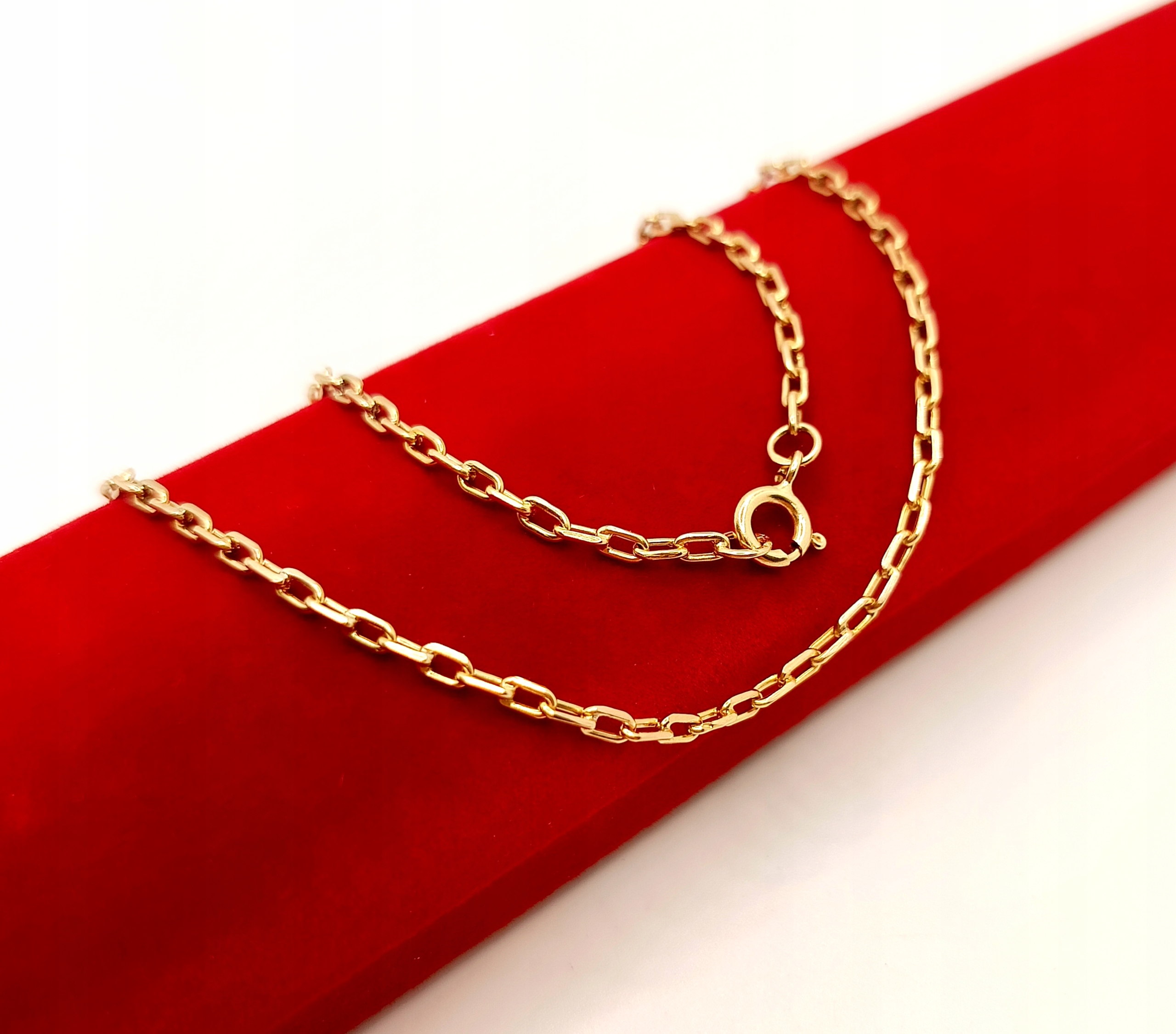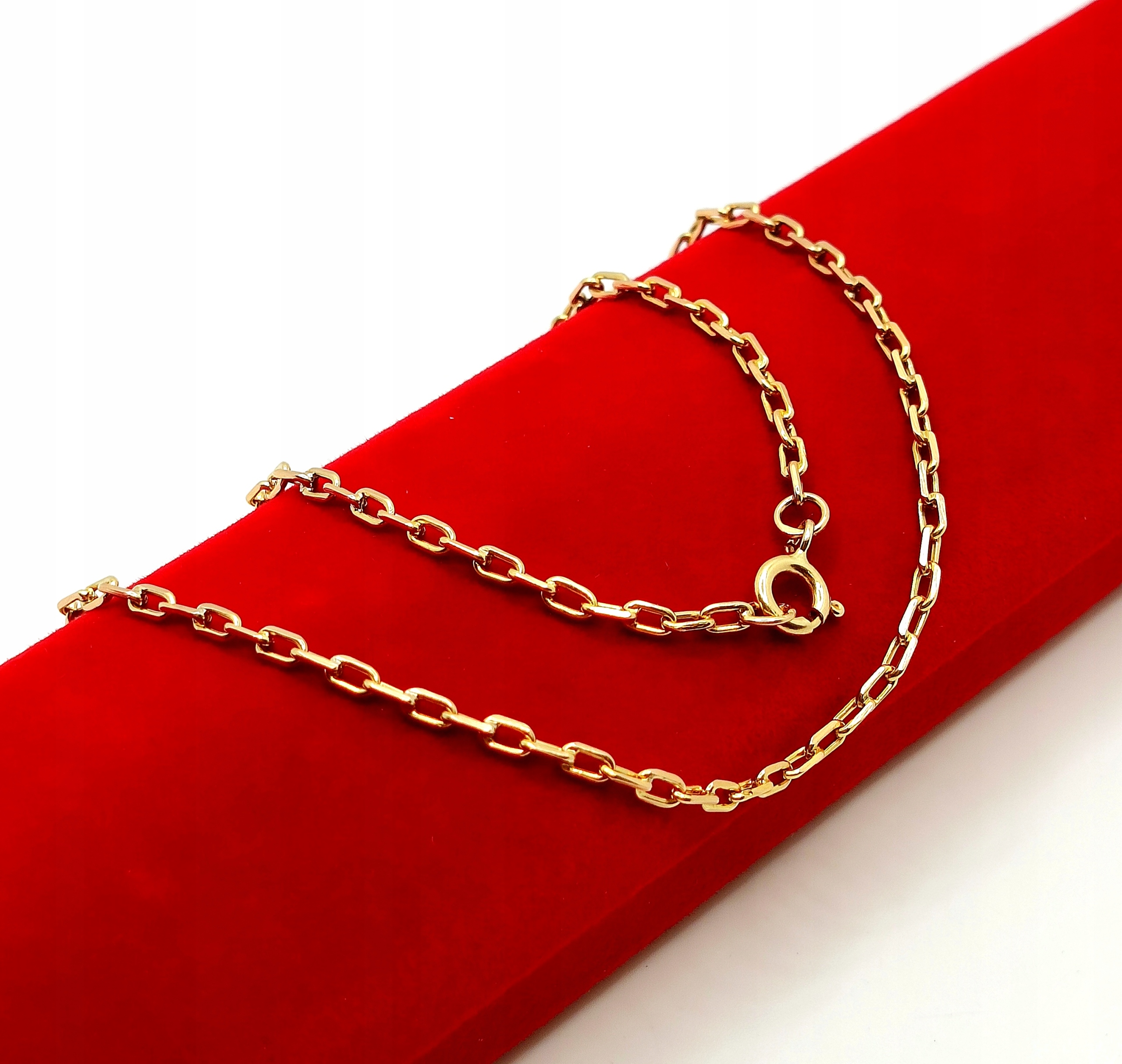 Oferujemy na sprzedaż piękny, złoty łańcuszek, o splocie ankier. Ogniwa pełne. Co drugie ogniwo jest przylutowane do kolejnego. Do lutowania ogniw używano srebra z miedzią w związku z czym mogą znajdować się śladowe ilości tego kruszcu.