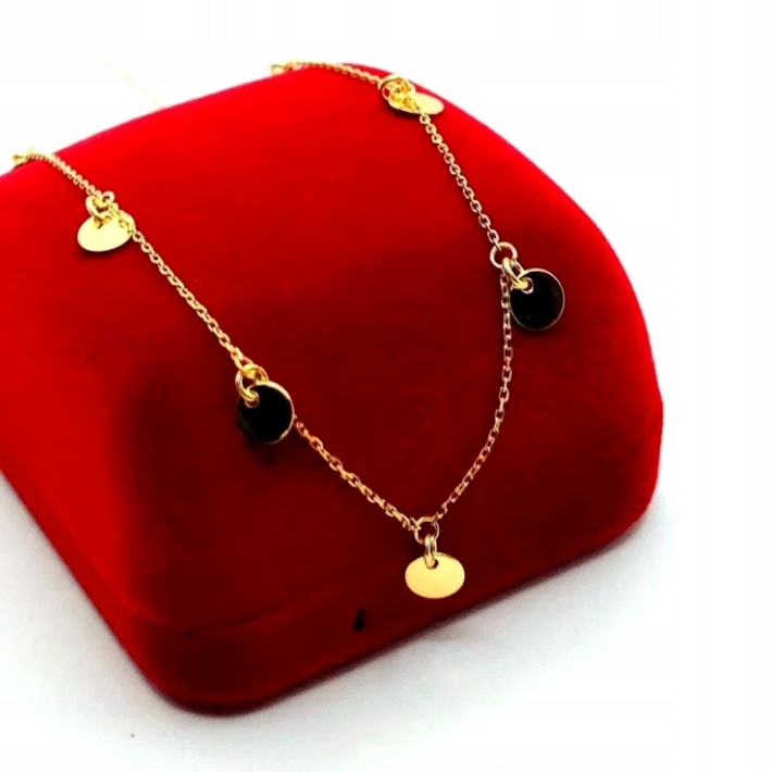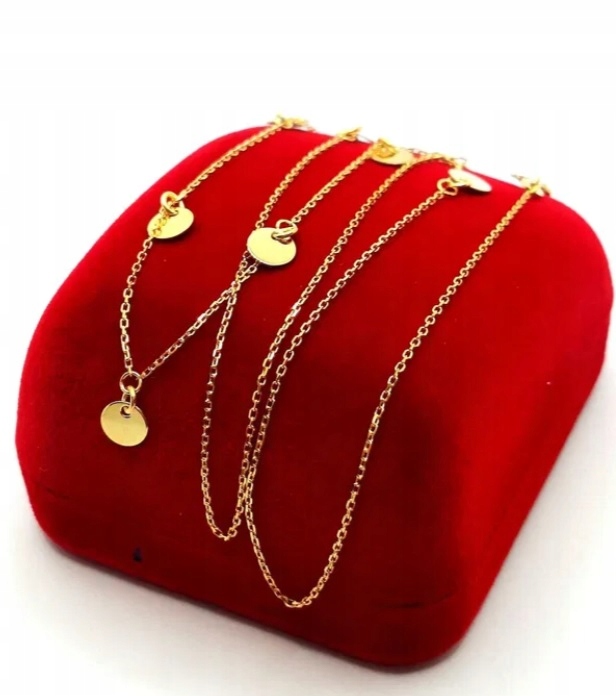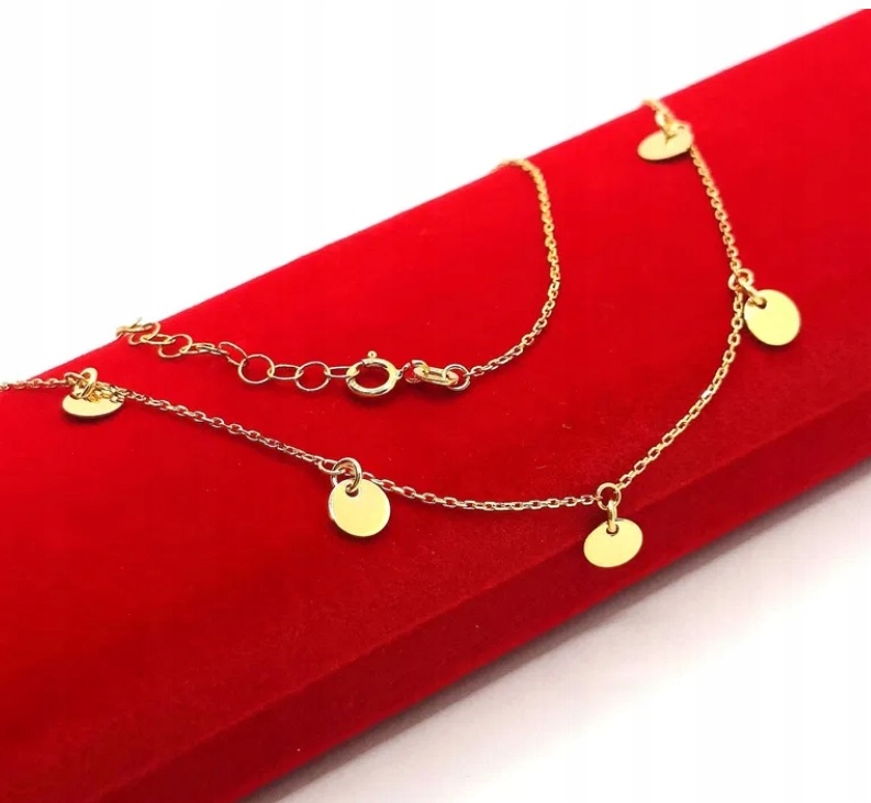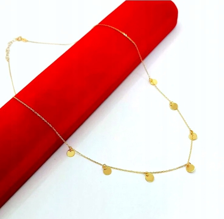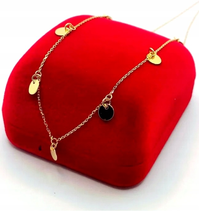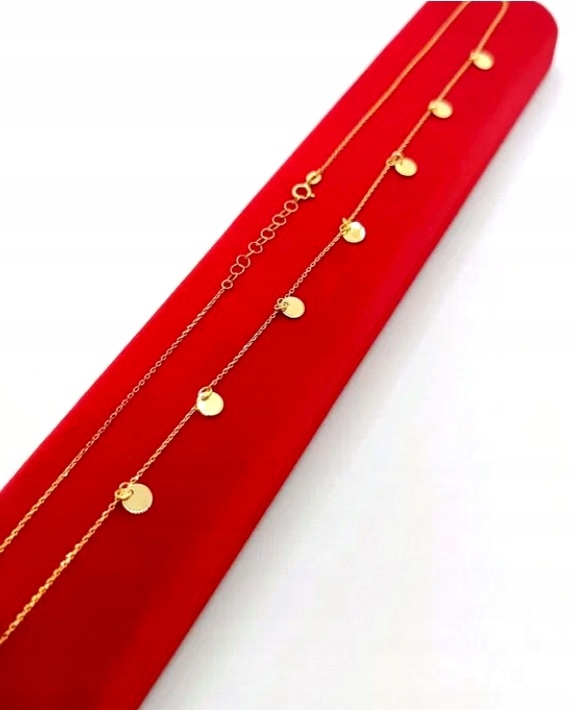 W ofercie na sprzedaż mamy dla Państwa piękny, złoty łańcuszek celebrytkę ozdobiony blaszkami w odstępach co 2,5cm.