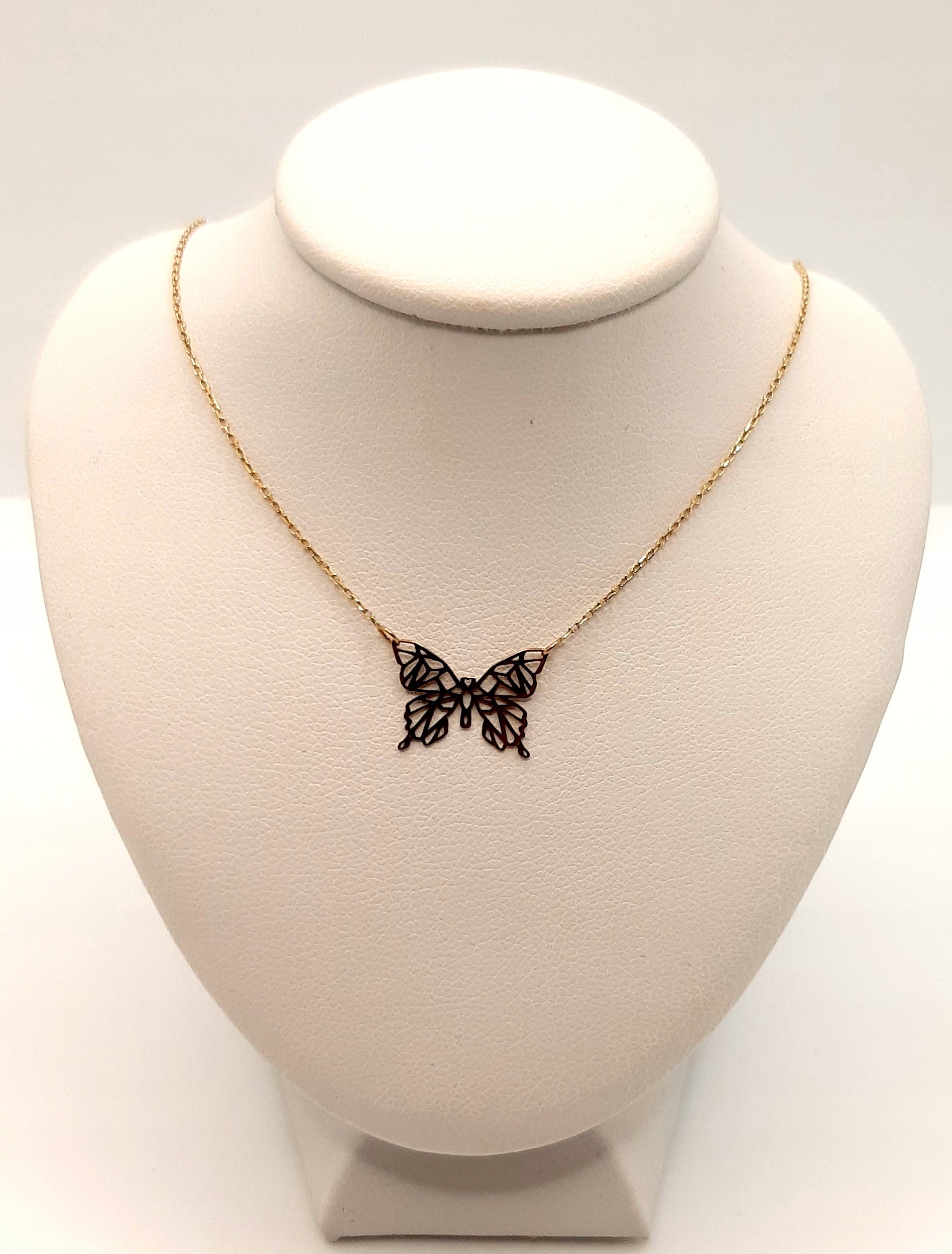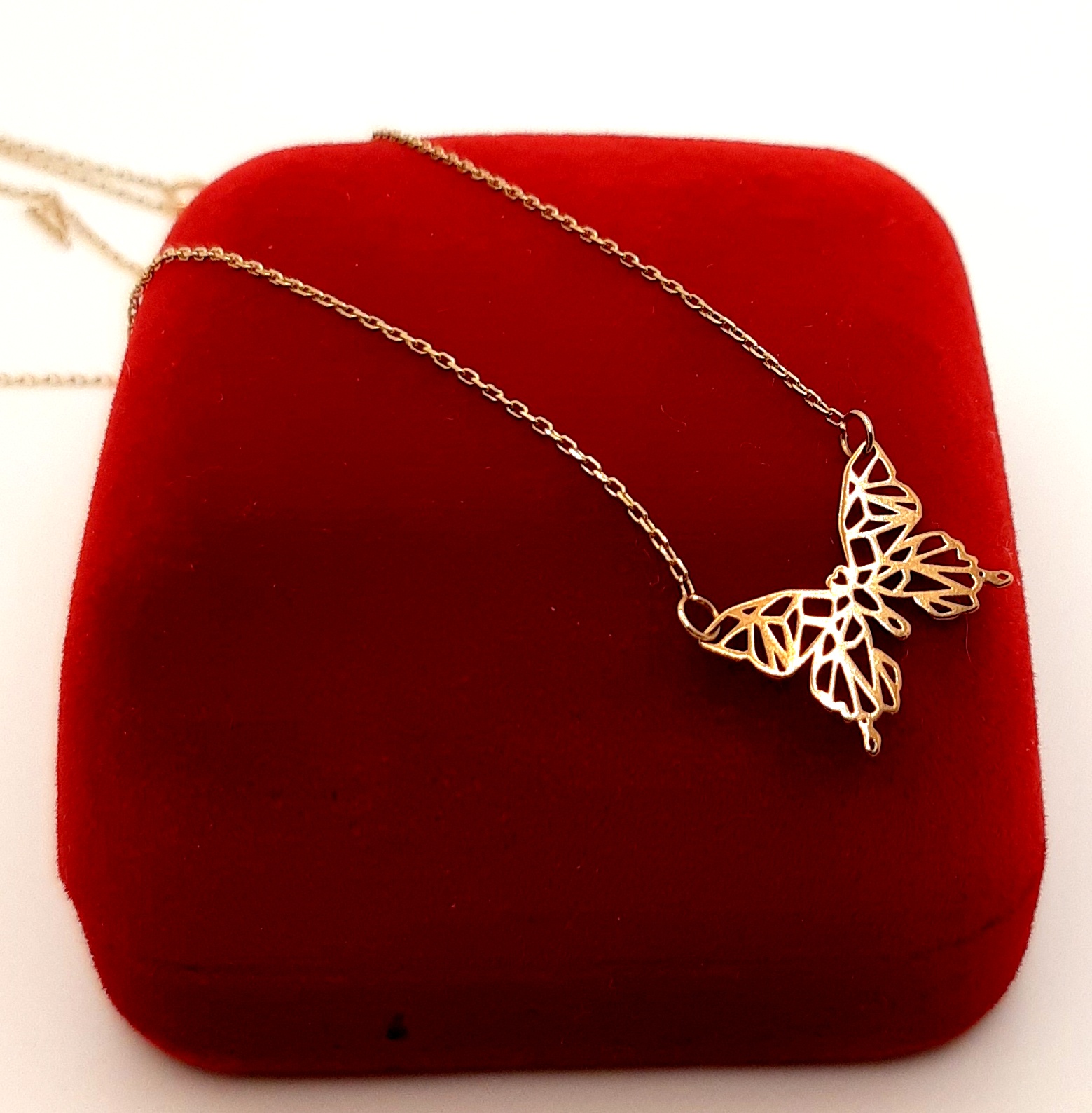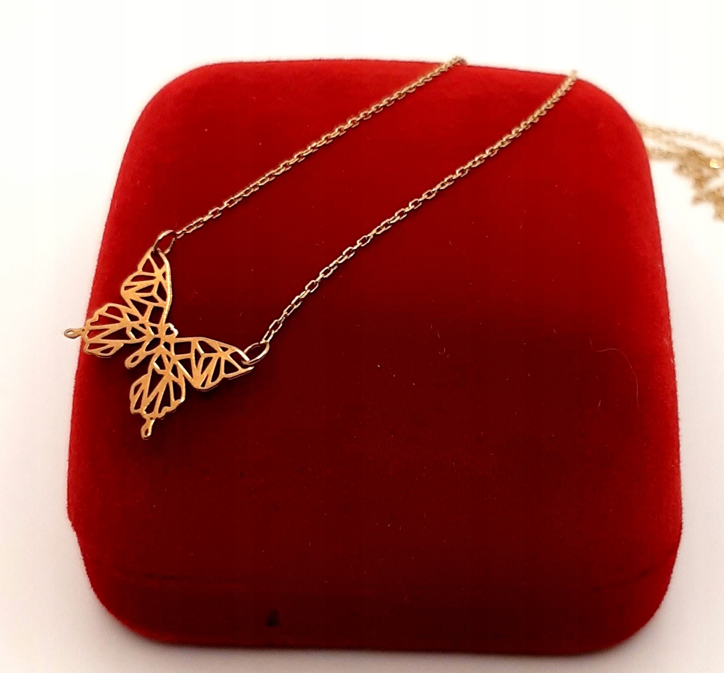 W ofercie na sprzedaż mamy dla Państwa piękny, złoty łańcuszek celebrytkę, ozdobiony zawieszką w kształcie motyla.