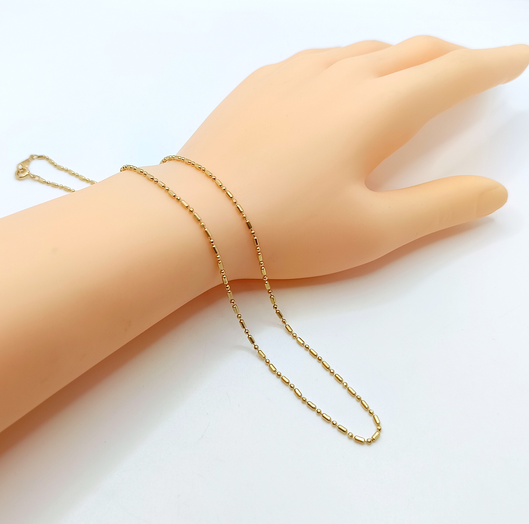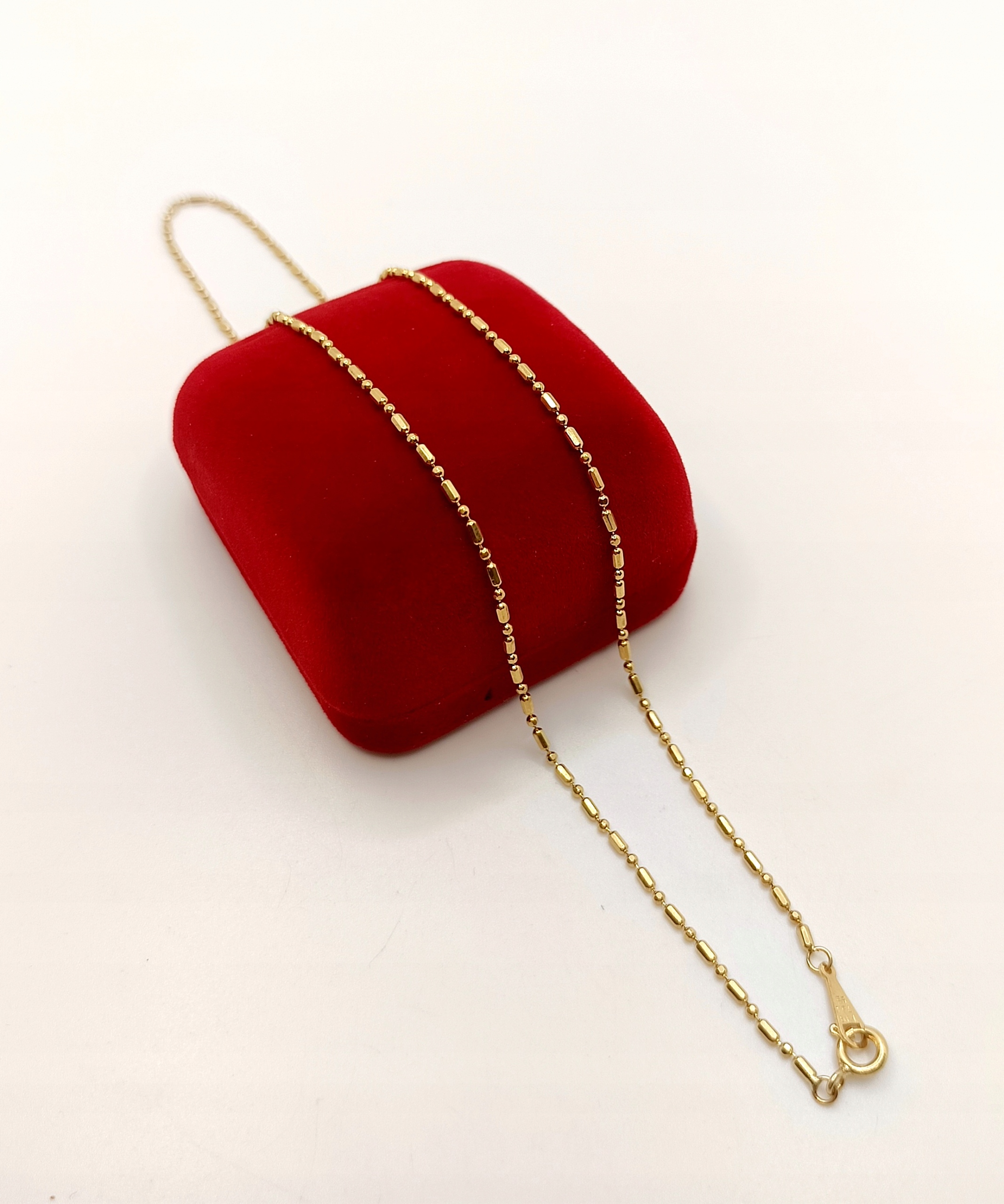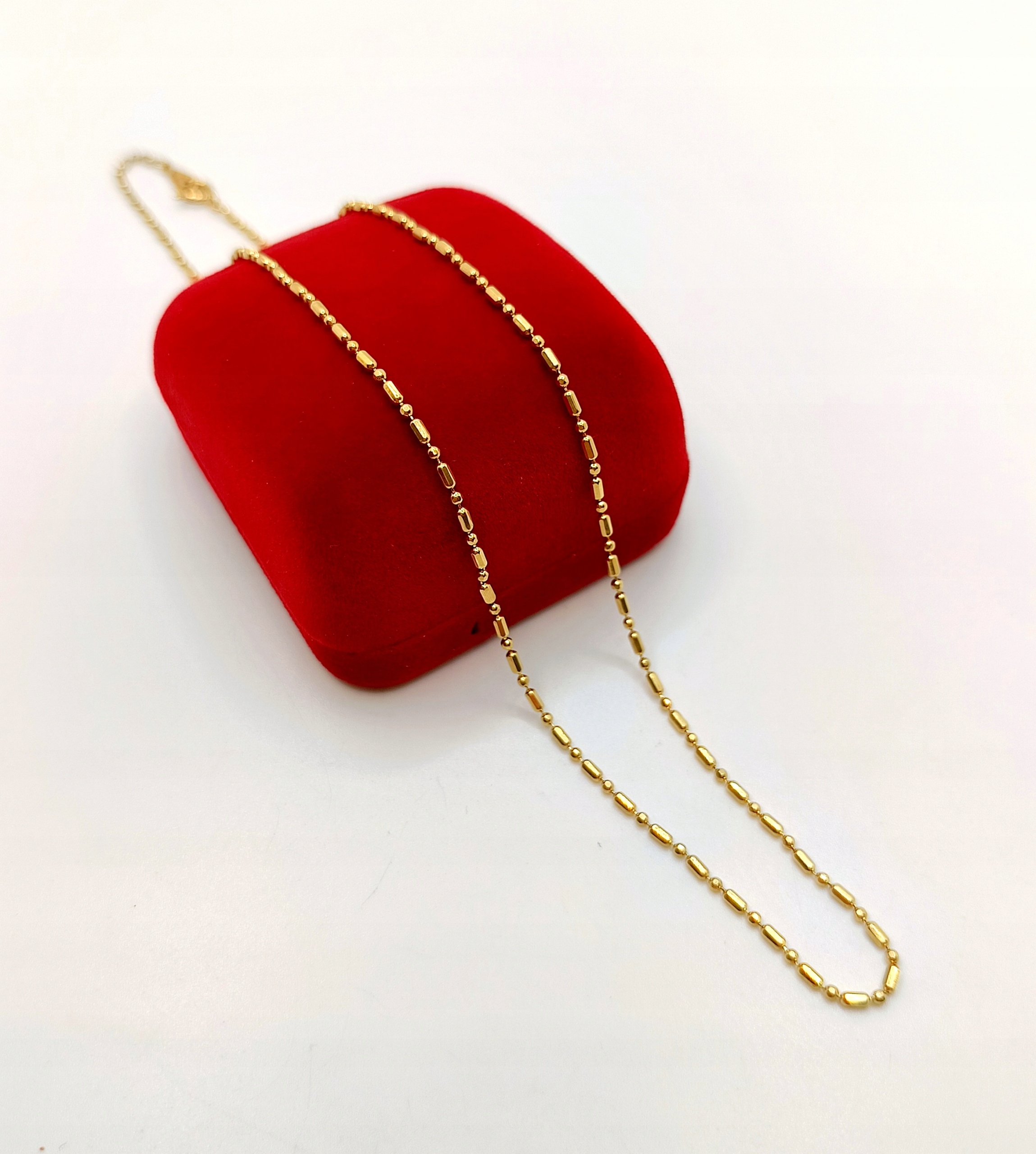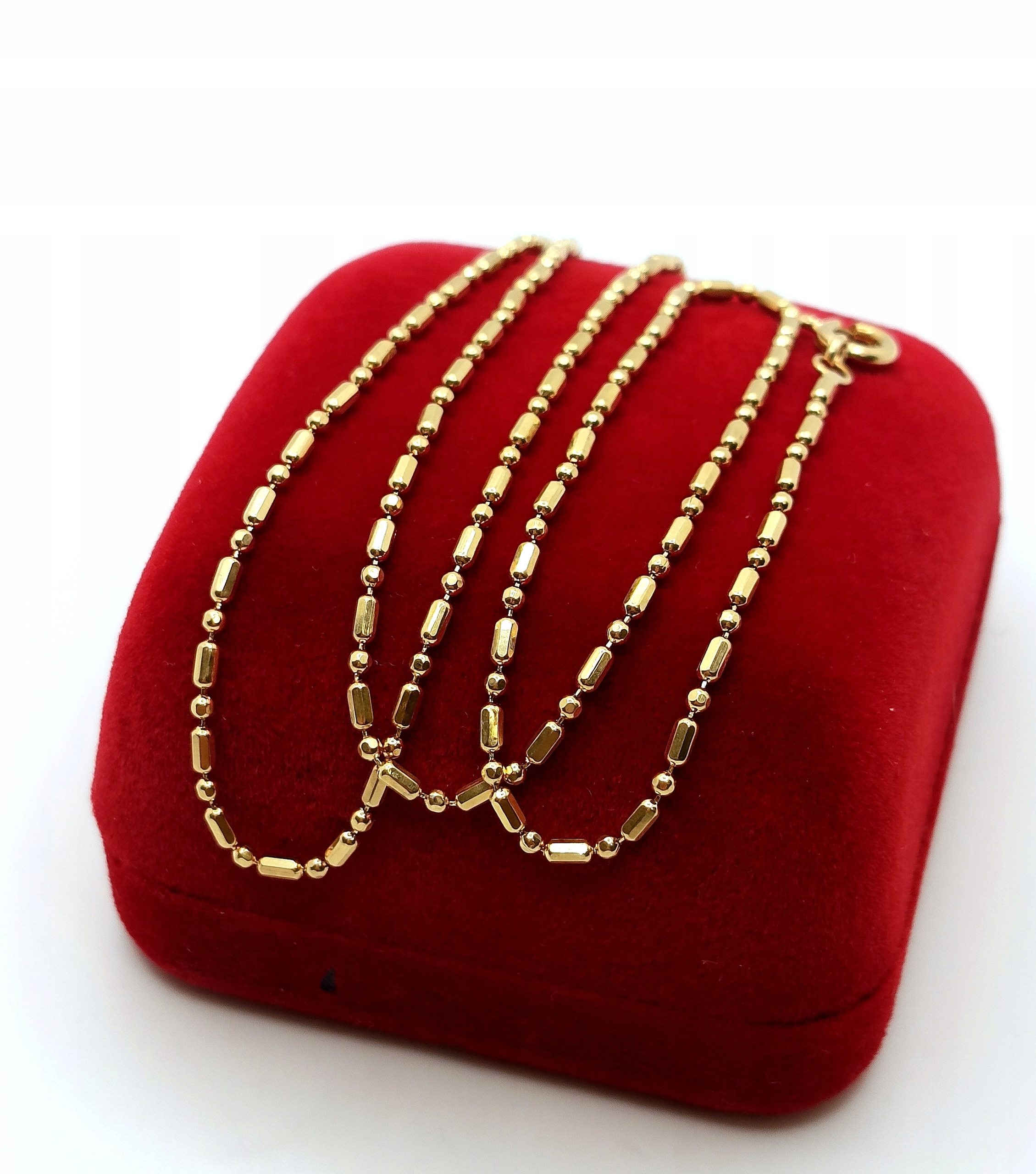 W ofercie na sprzedaż mamy dla Państwa złoty łańcuszek kulkowy z ogniwami na przemian kulki i podłużne.