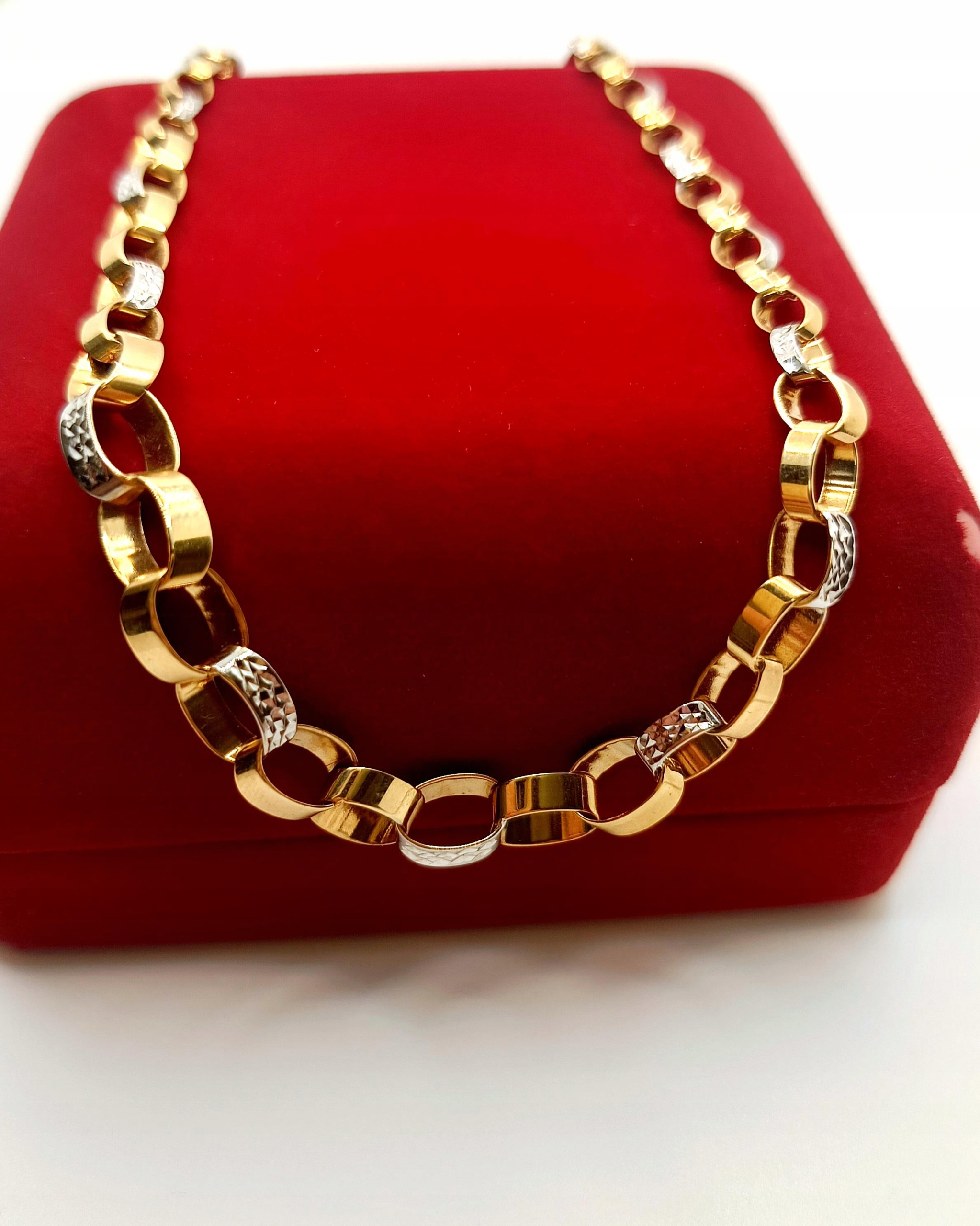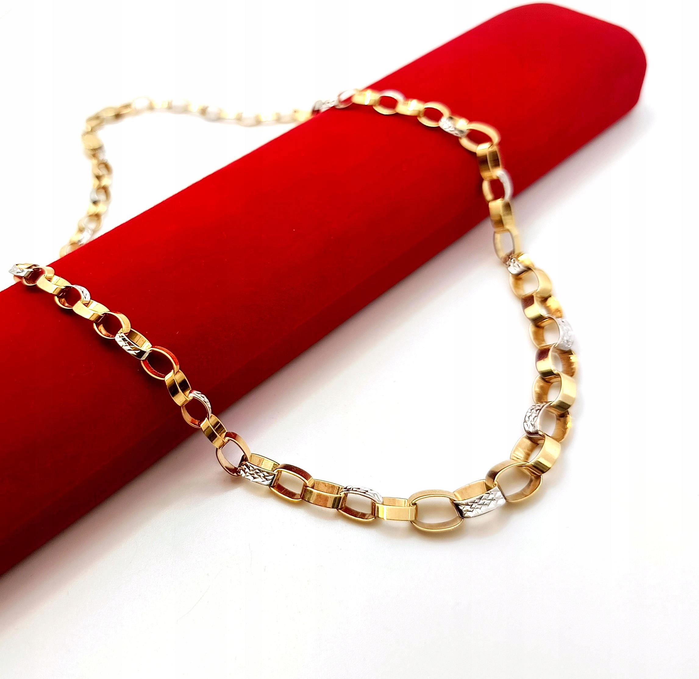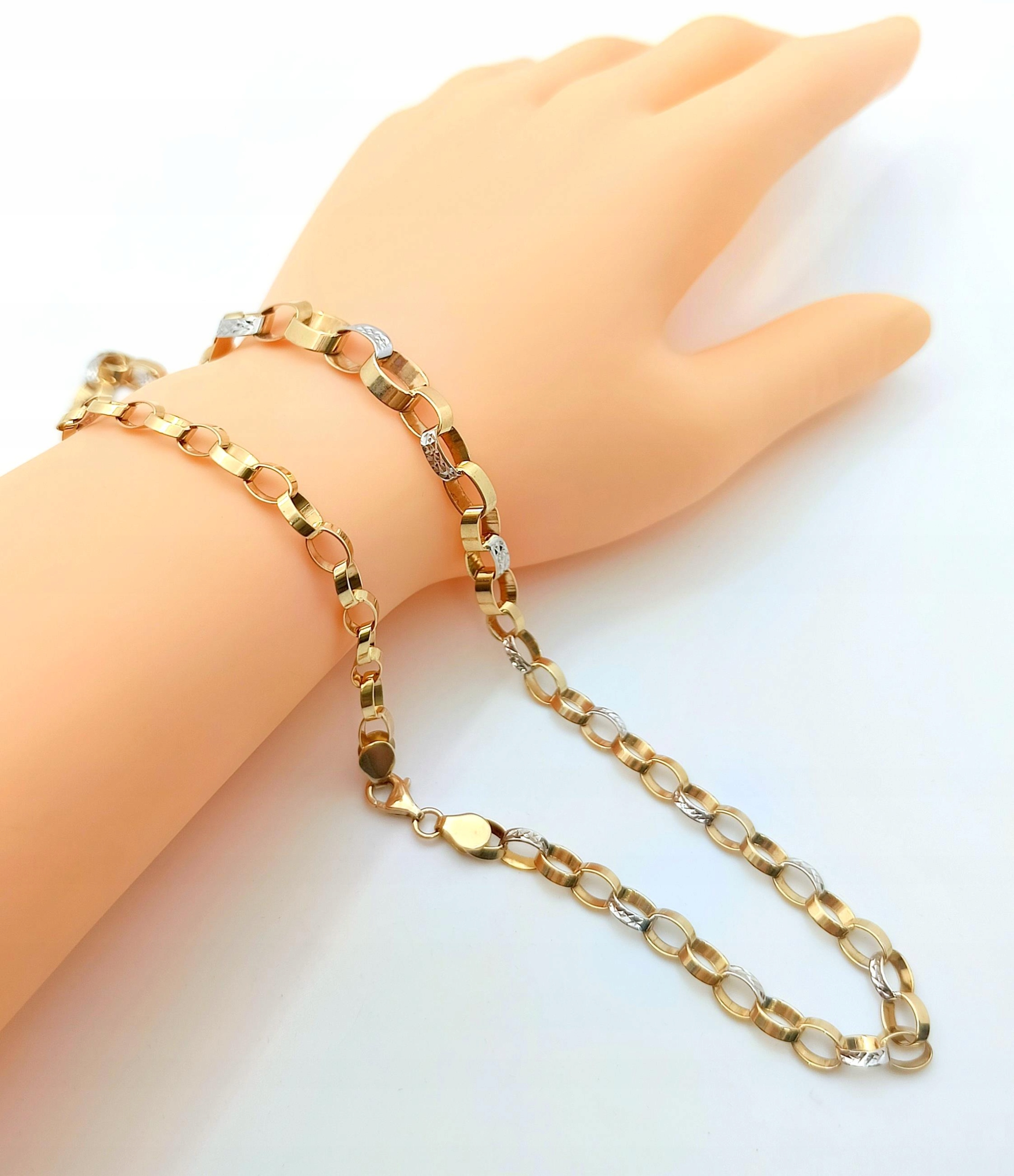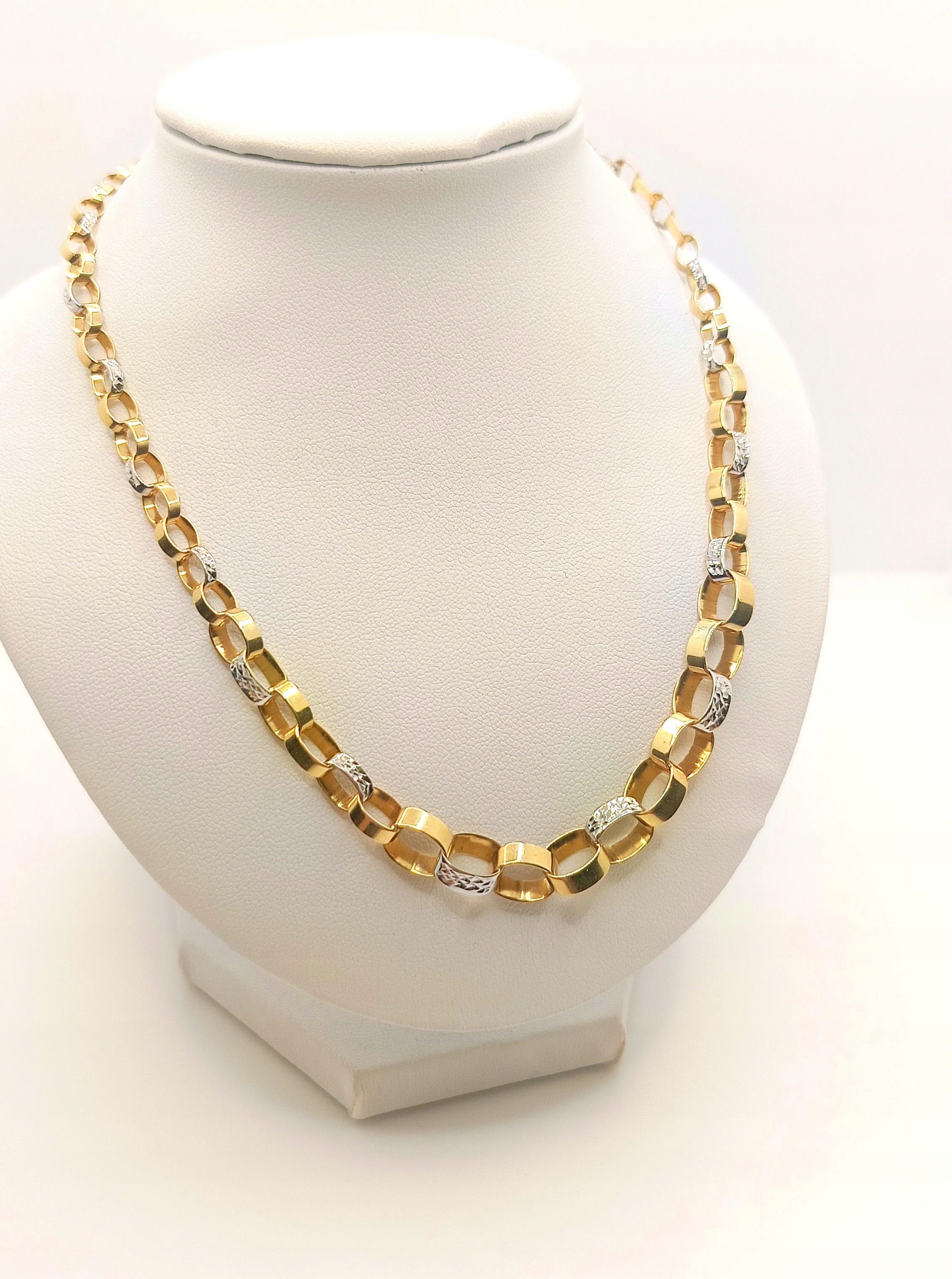 Łańcuszek w całości wykonany z żółtego oraz białego złota próby 585.