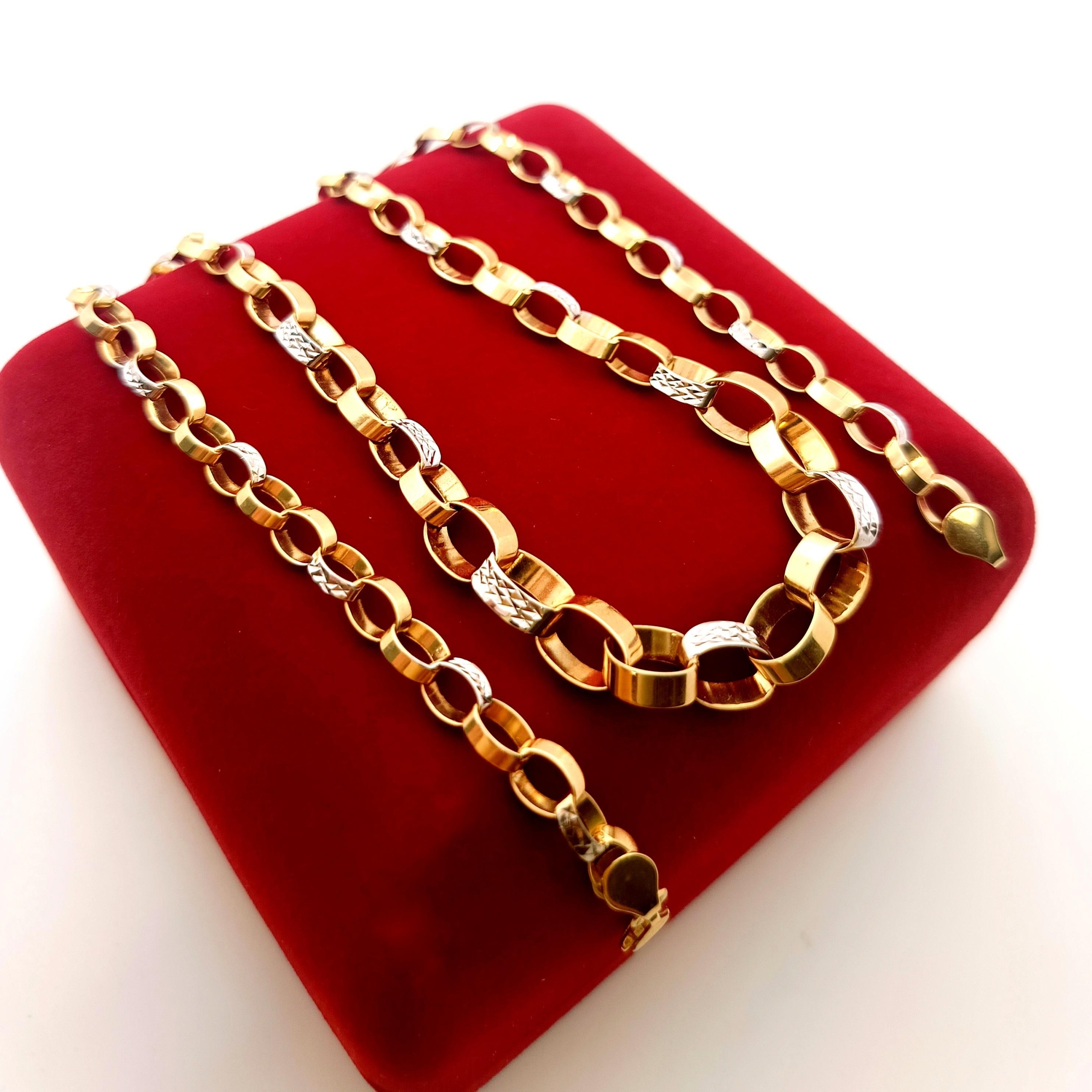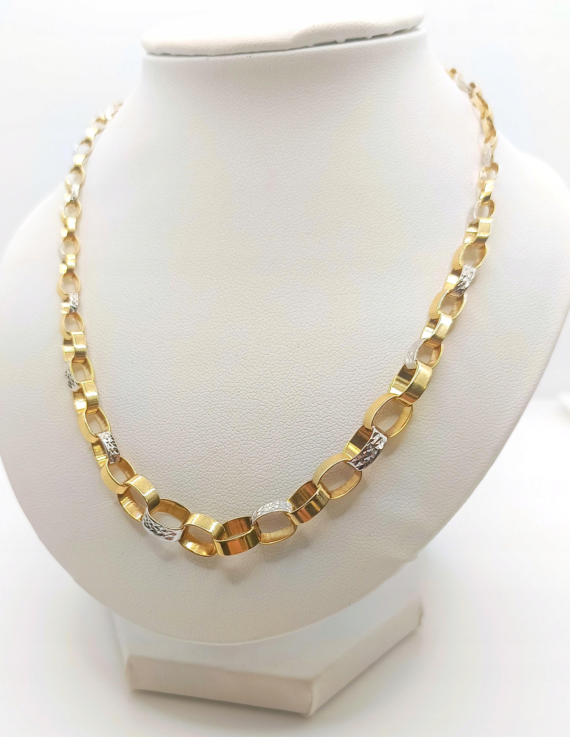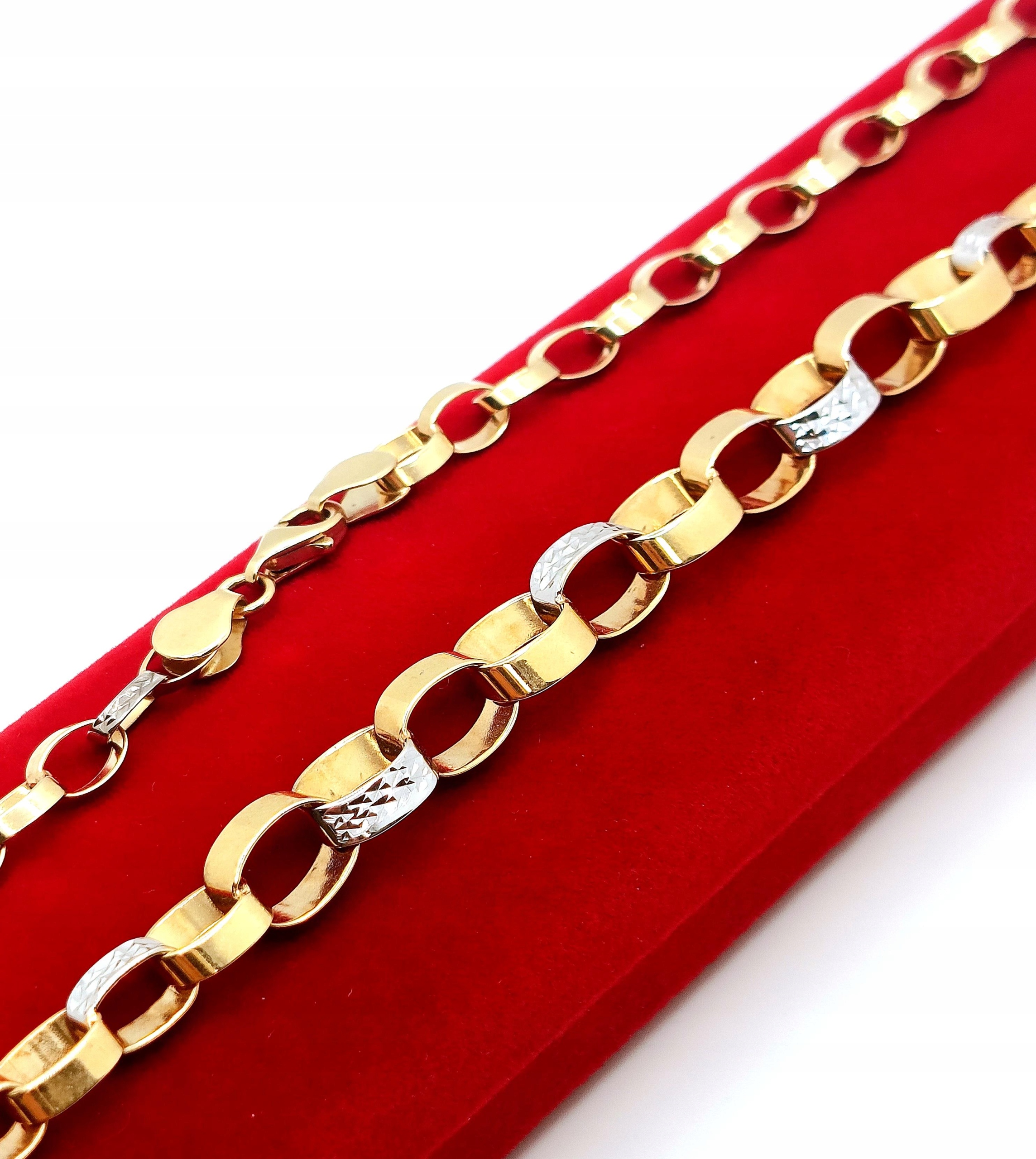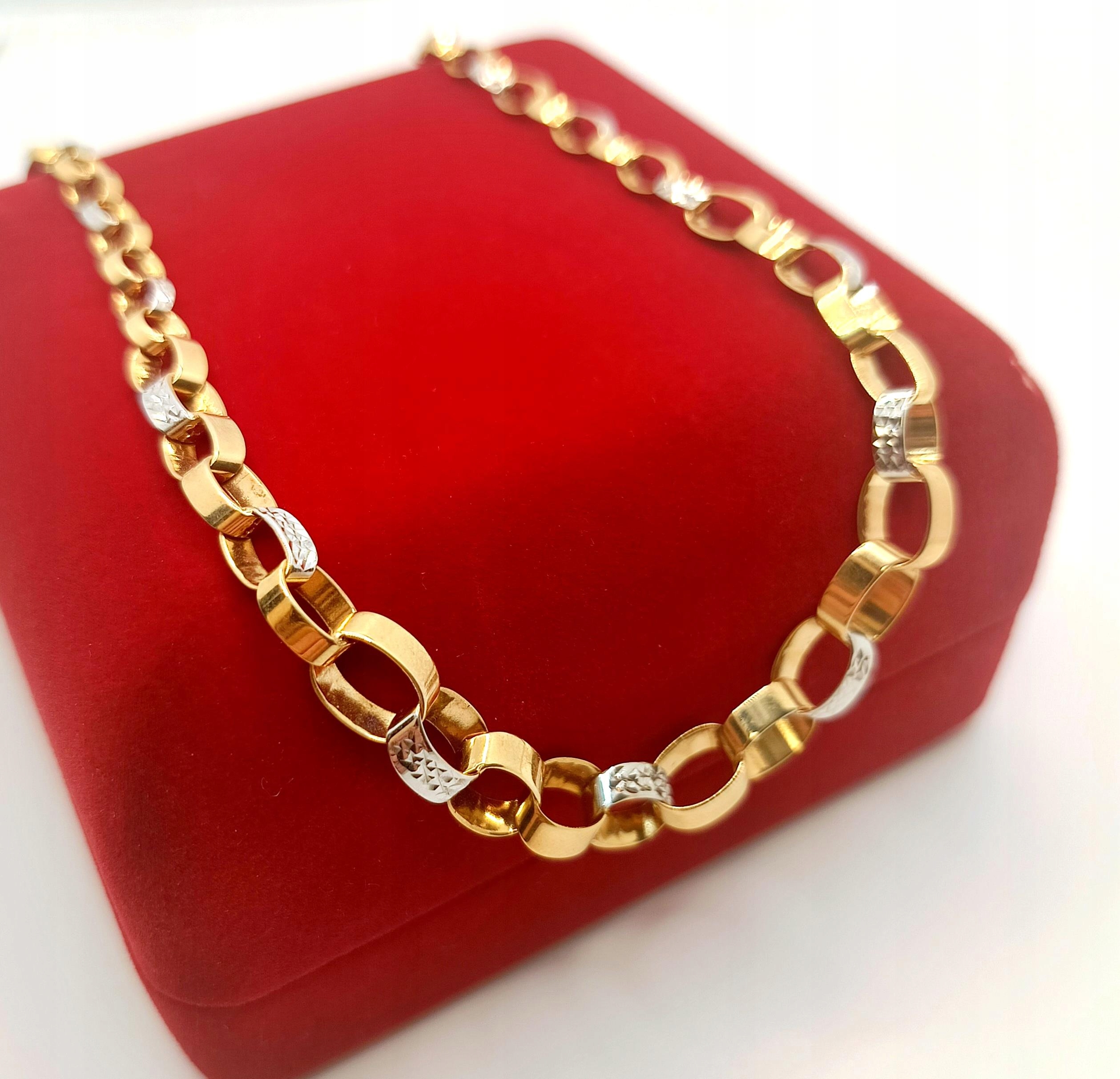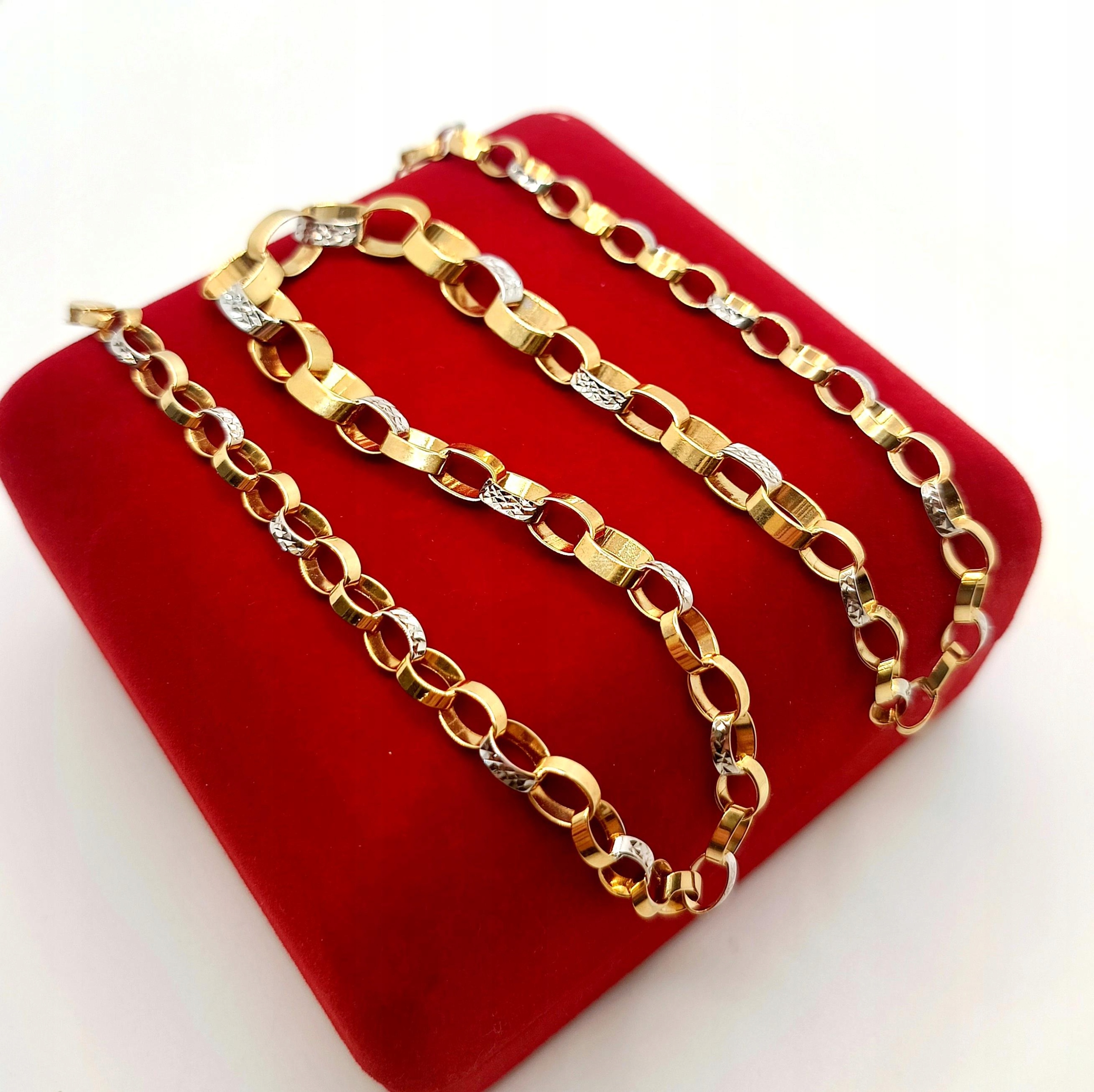 Łańcuszek w całości wykonany z żółtego oraz białego złota próby 585.
