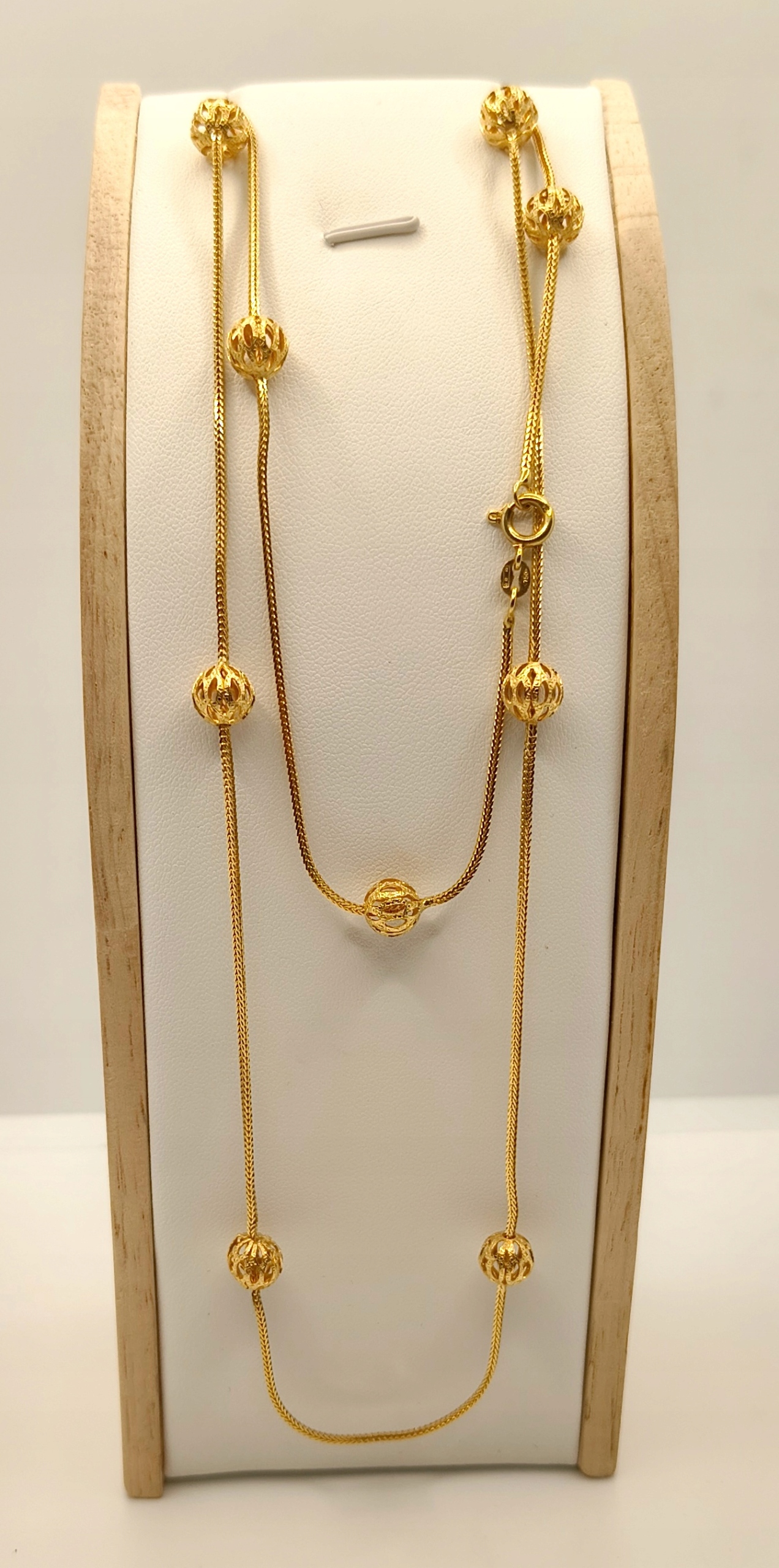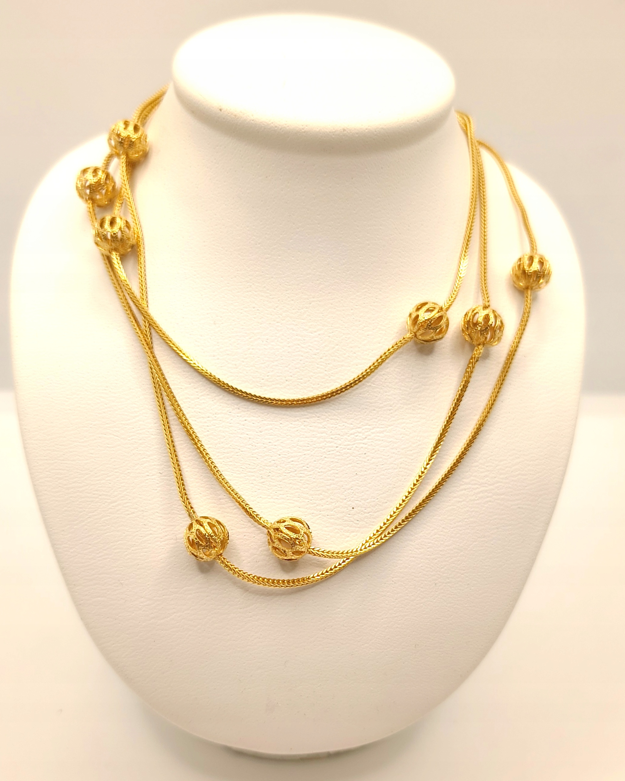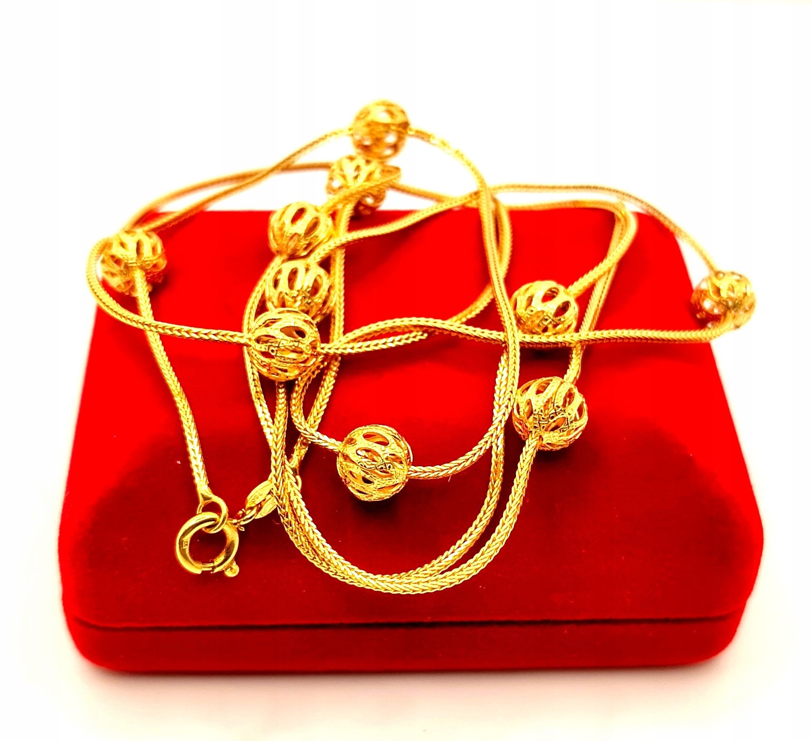 Oferujemy na sprzedaż piękny, złoty łańcuszek, ozdobiony ażurowymi kulkami .