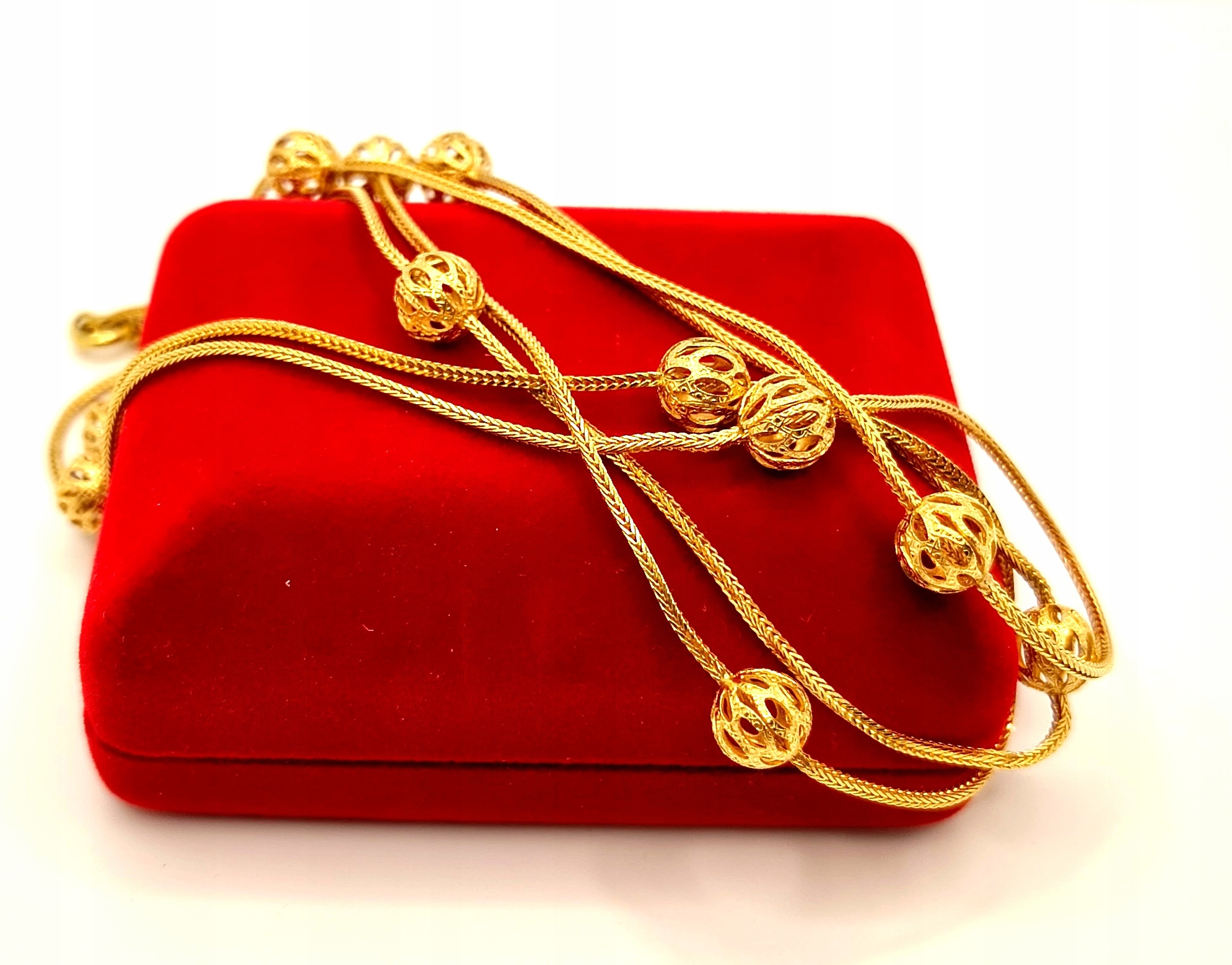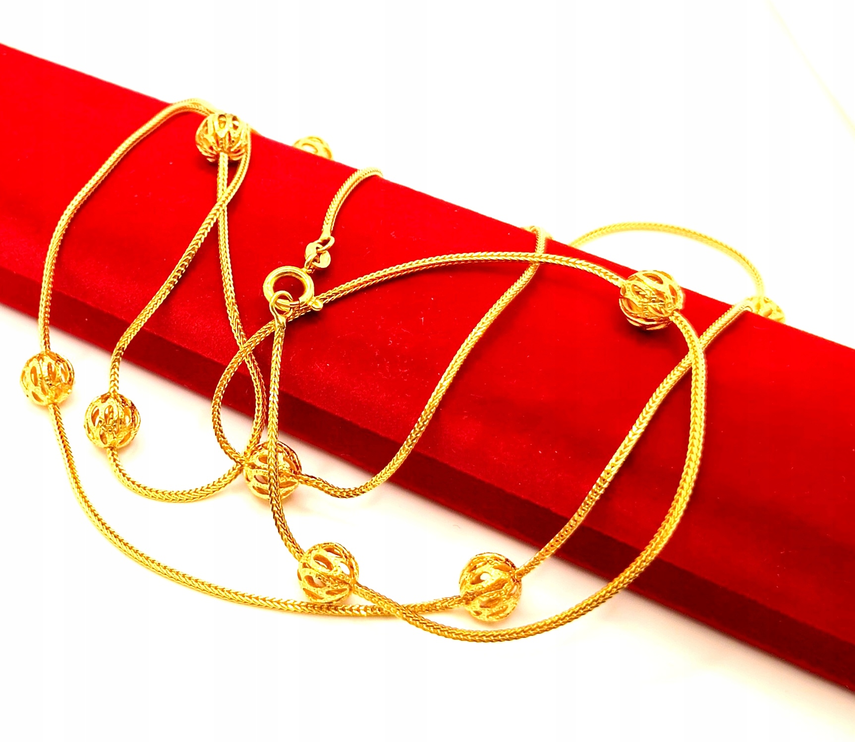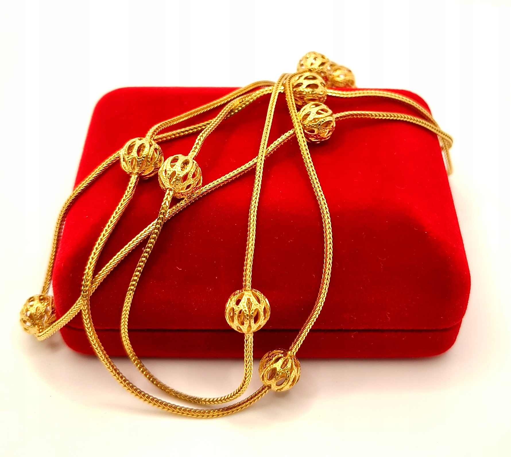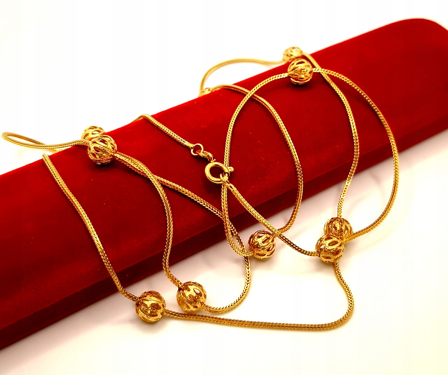 Oferujemy na sprzedaż piękny, złoty łańcuszek, ozdobiony ażurowymi kulkami .