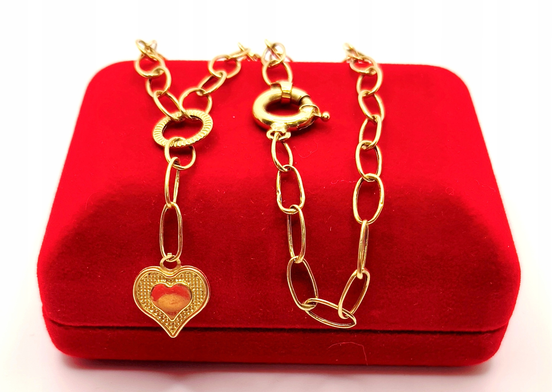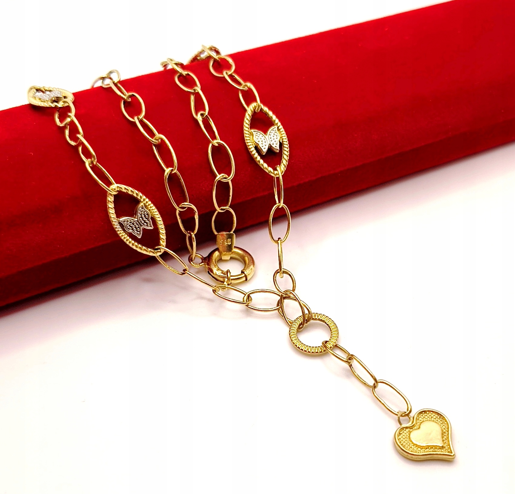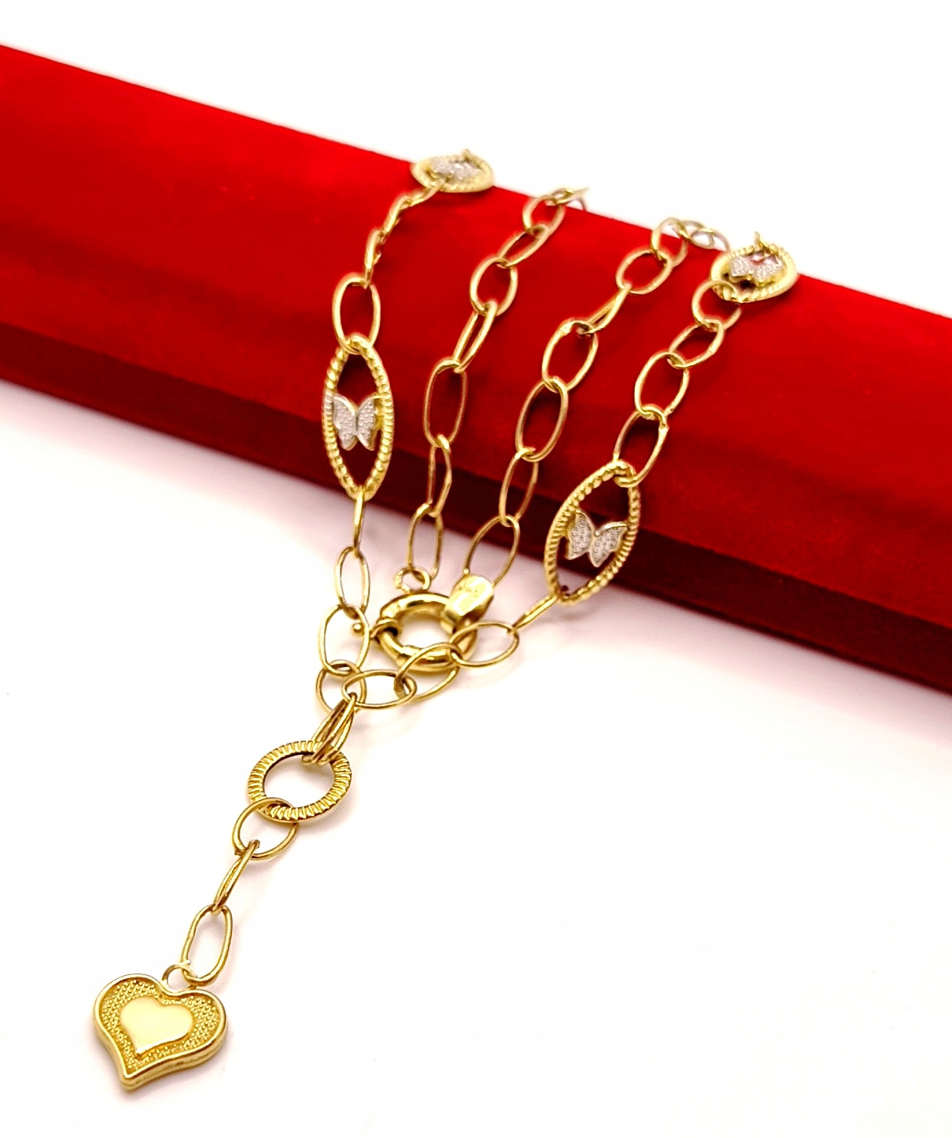 W ofercie na sprzedaż mamy dla Państwa piękny, złoty łańcuszek, o splocie ankier, ozdobiony sercem i motylkami.