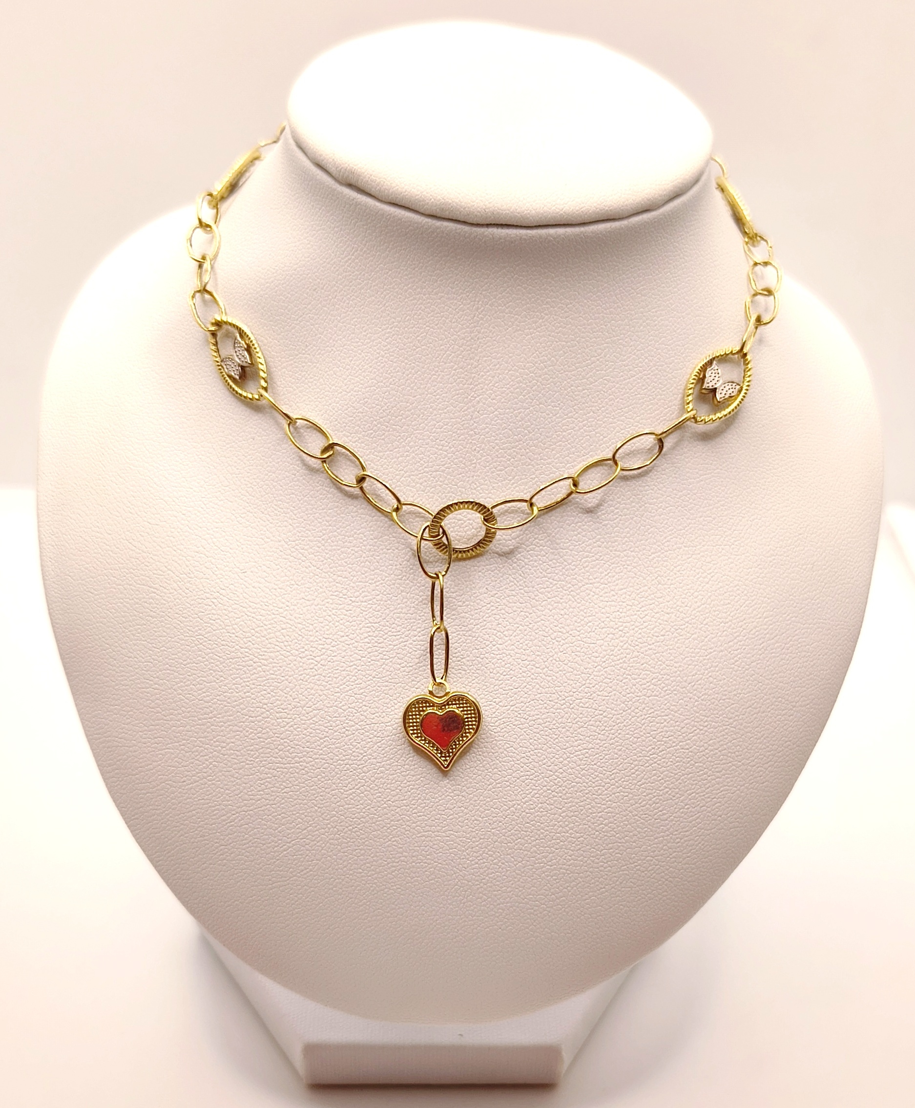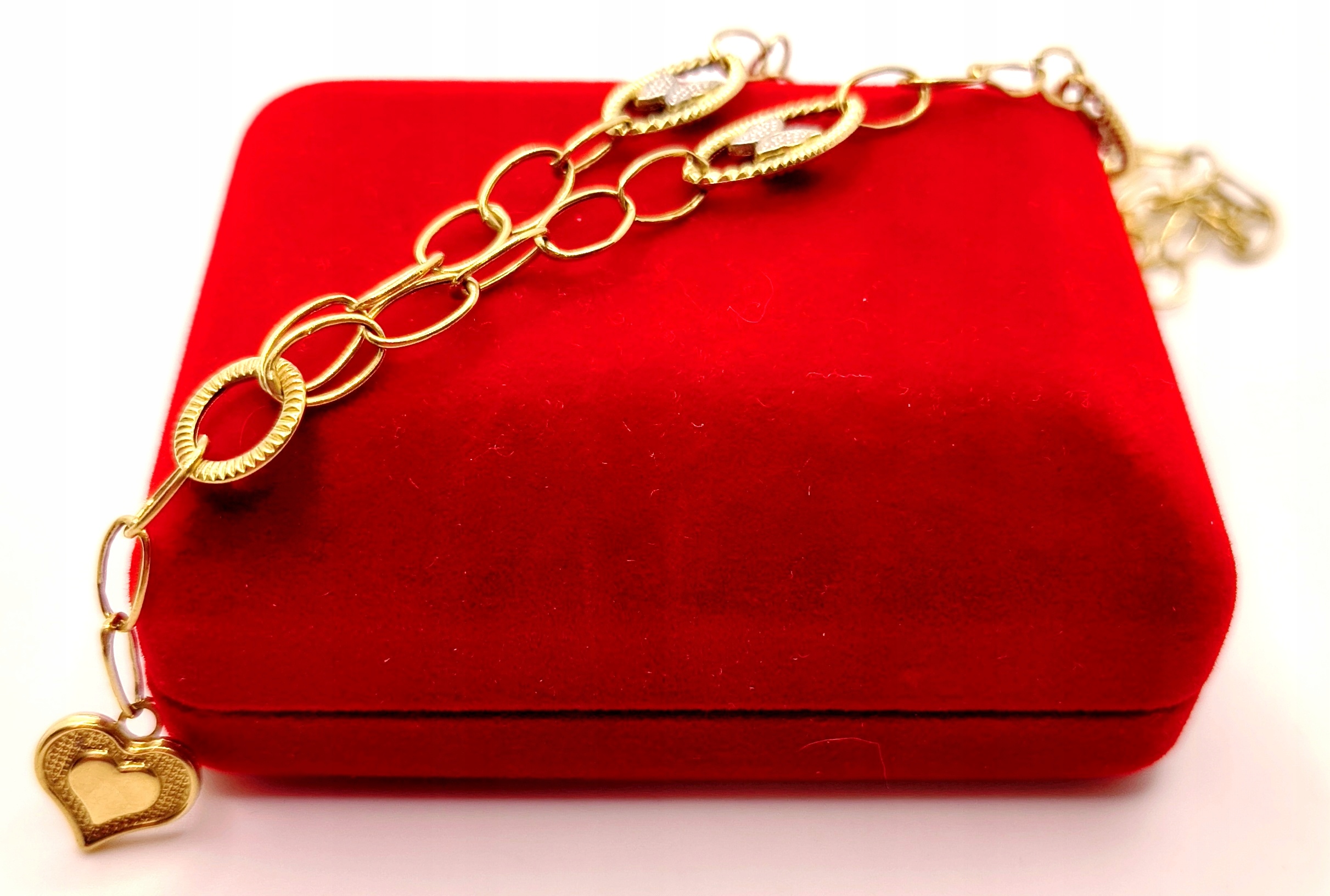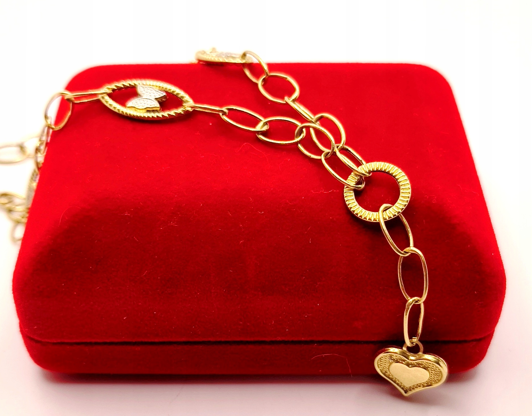 W ofercie na sprzedaż mamy dla Państwa piękny, złoty łańcuszek, o splocie ankier, ozdobiony sercem i motylkami.