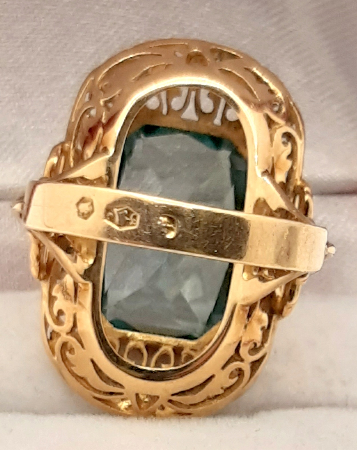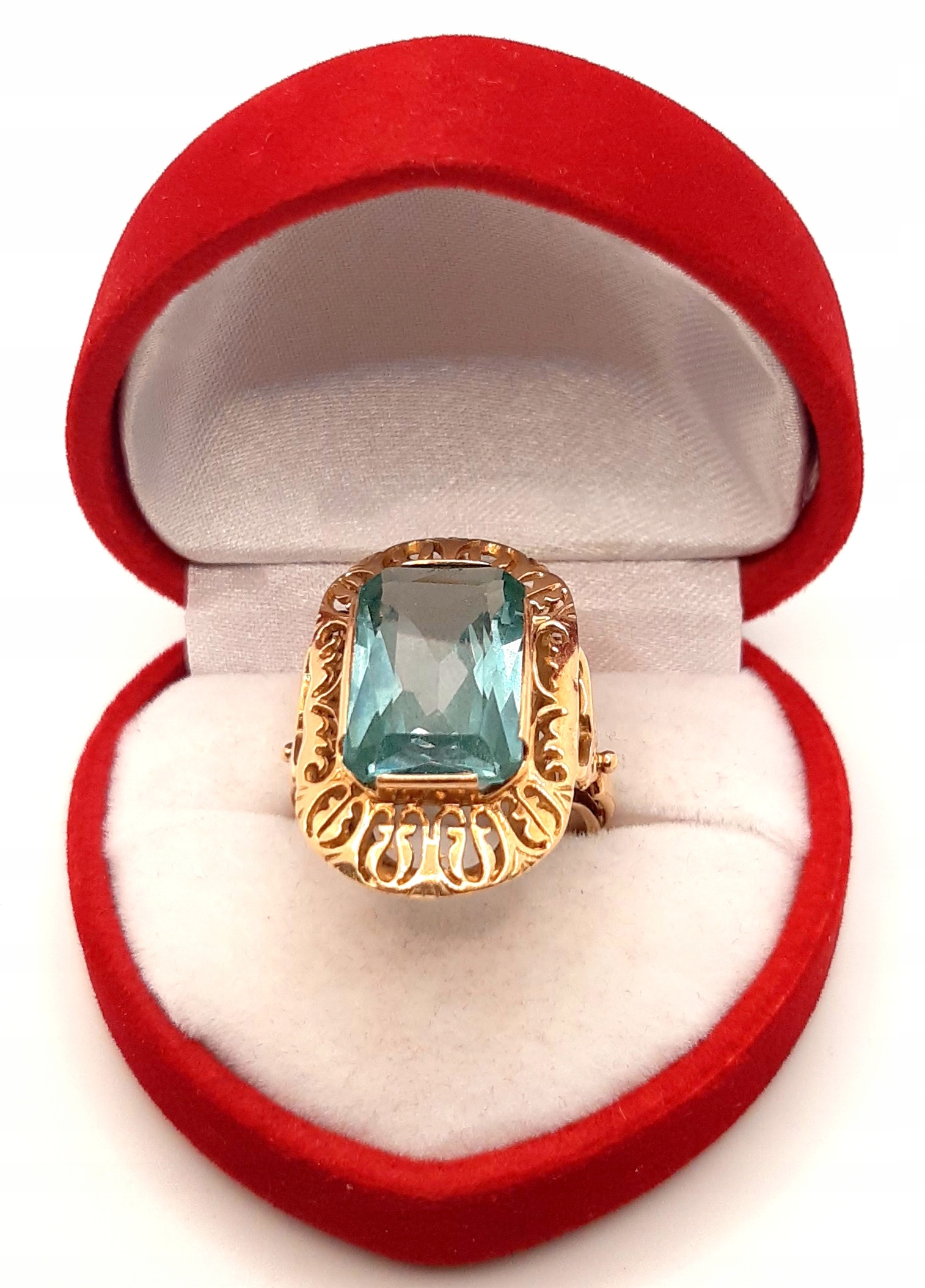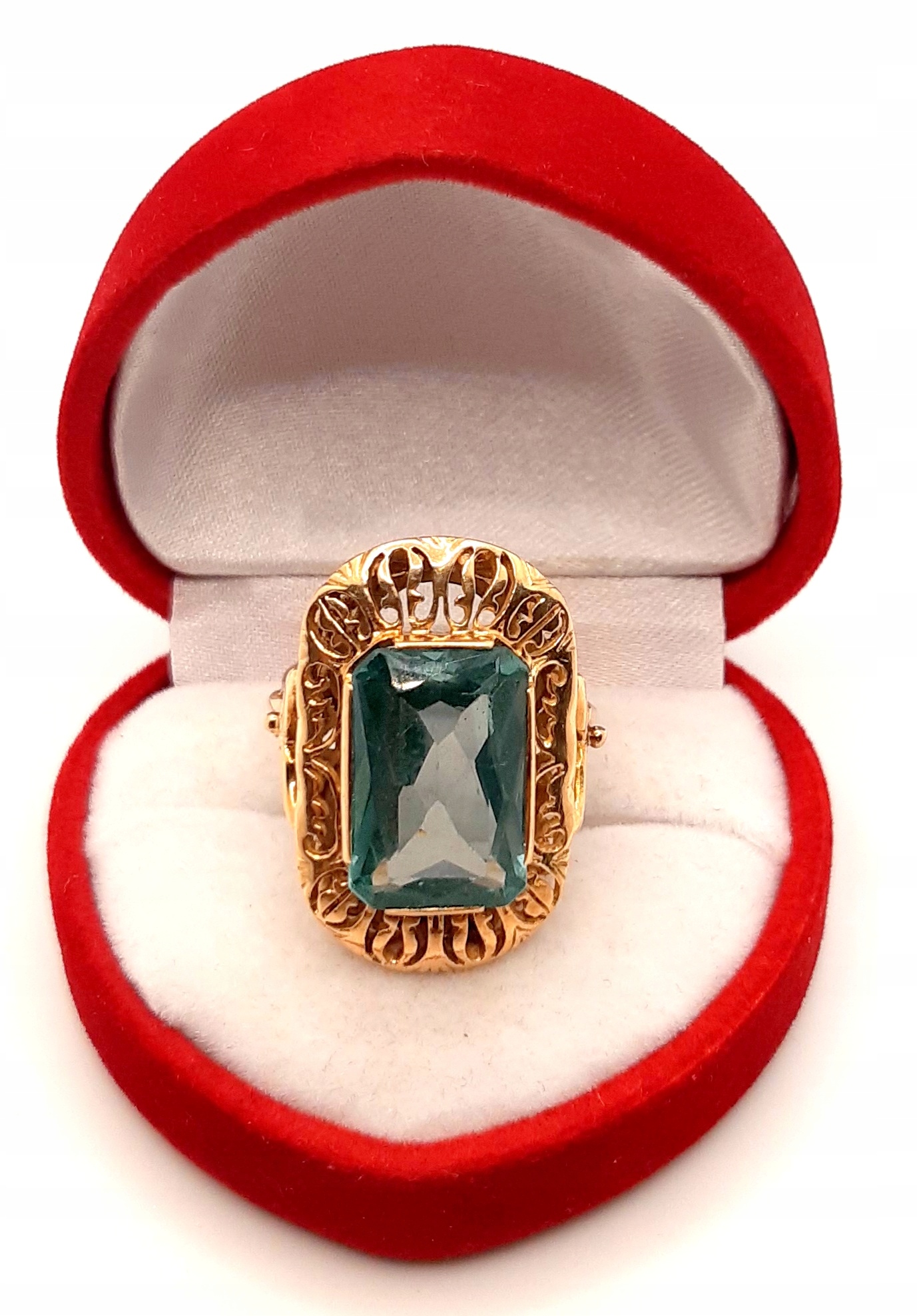 Oferujemy na sprzedaż piękny, złoty pierścionek , znanej polskiej marki Warmet, ozdobiony kamieniem w kolorze jasnej mięty.