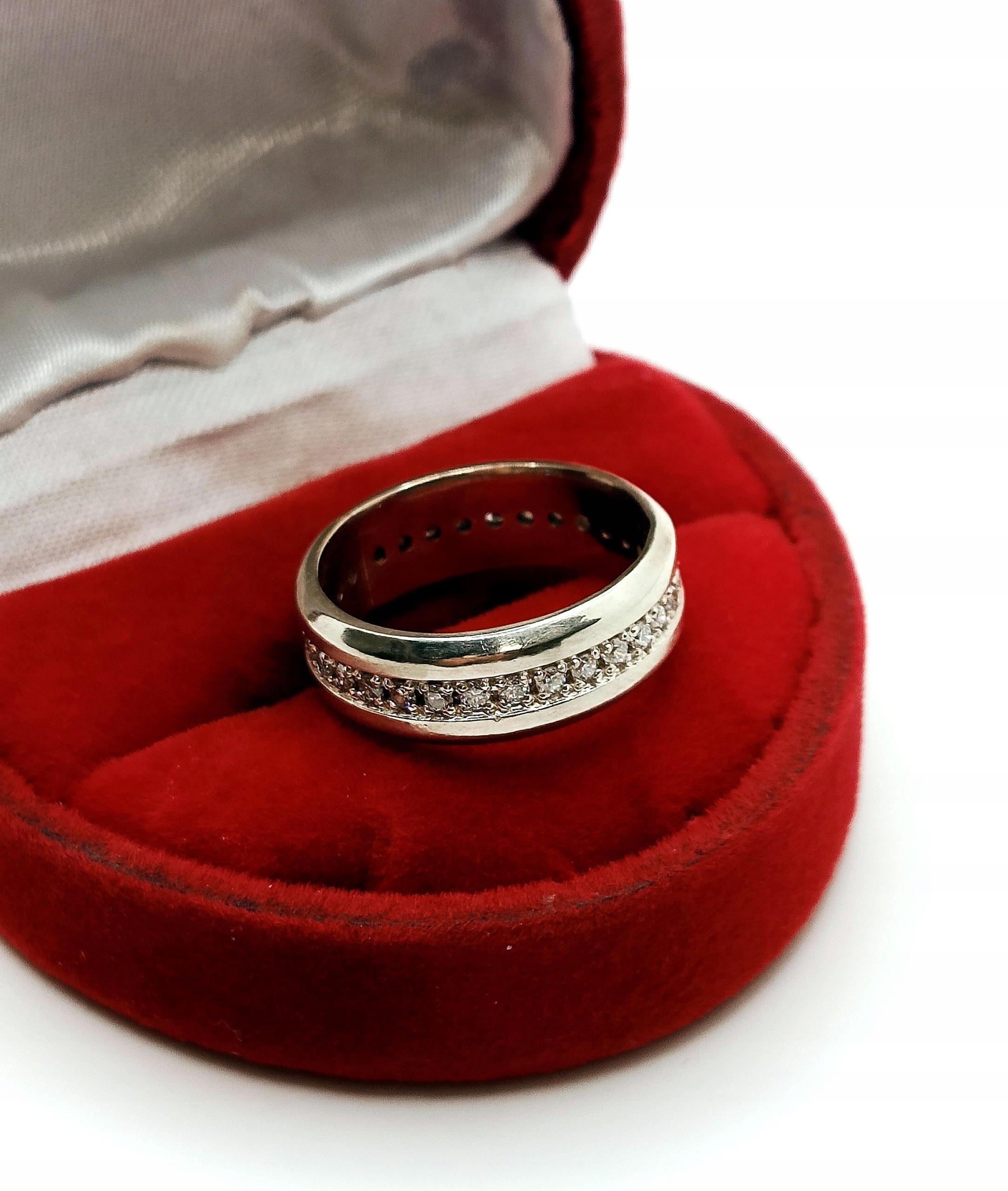 W całości wykonany z białego złota próby 585.