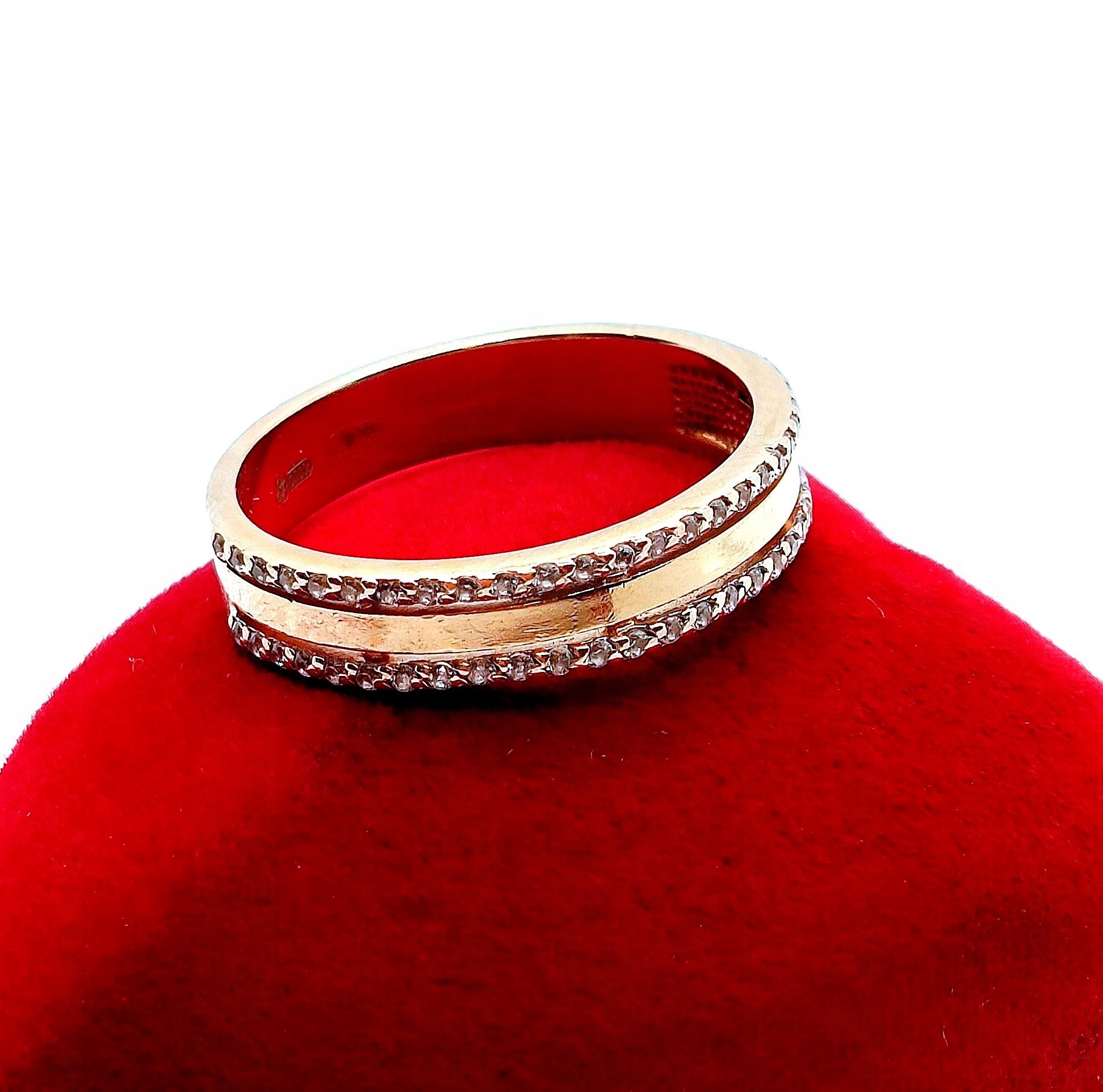 Złoty pierścionek obrączka z cyrkoniami PR.585 W:2,73gr R.11