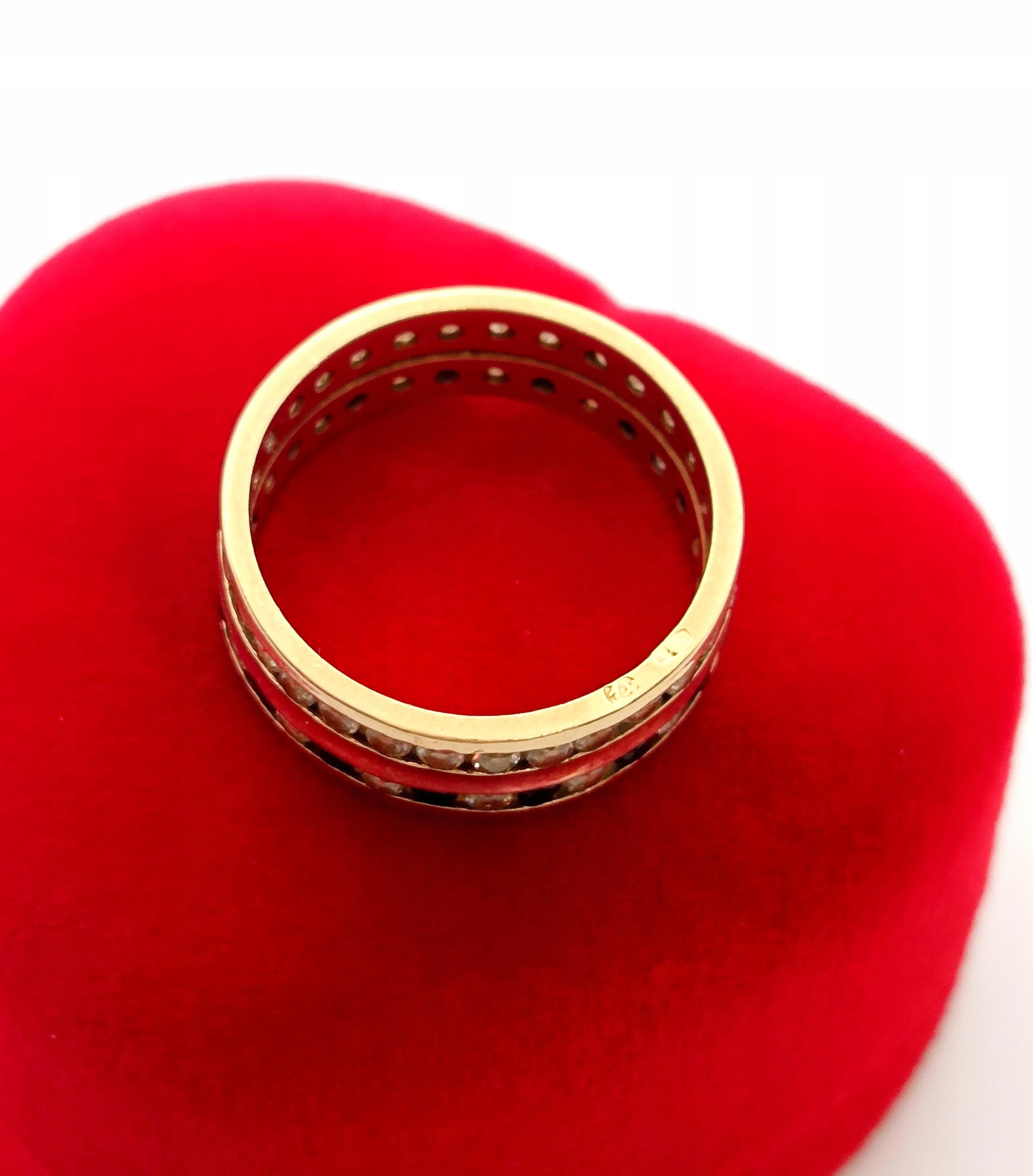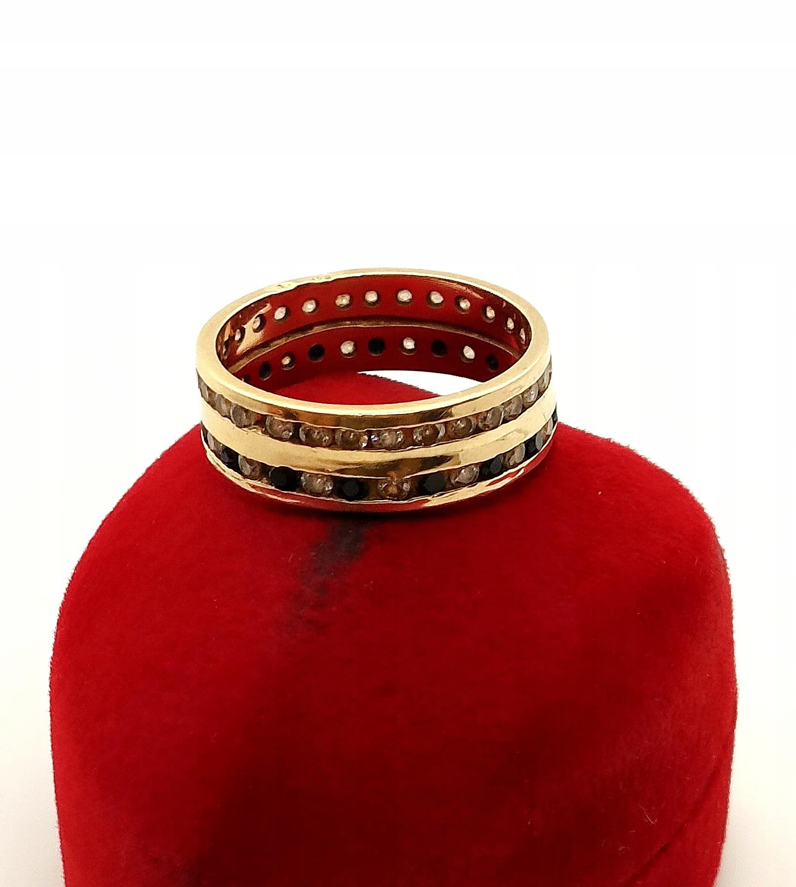 Złoty pierścionek, obrączka z cyrkoniami Pr.585 W:4,23gr R.14