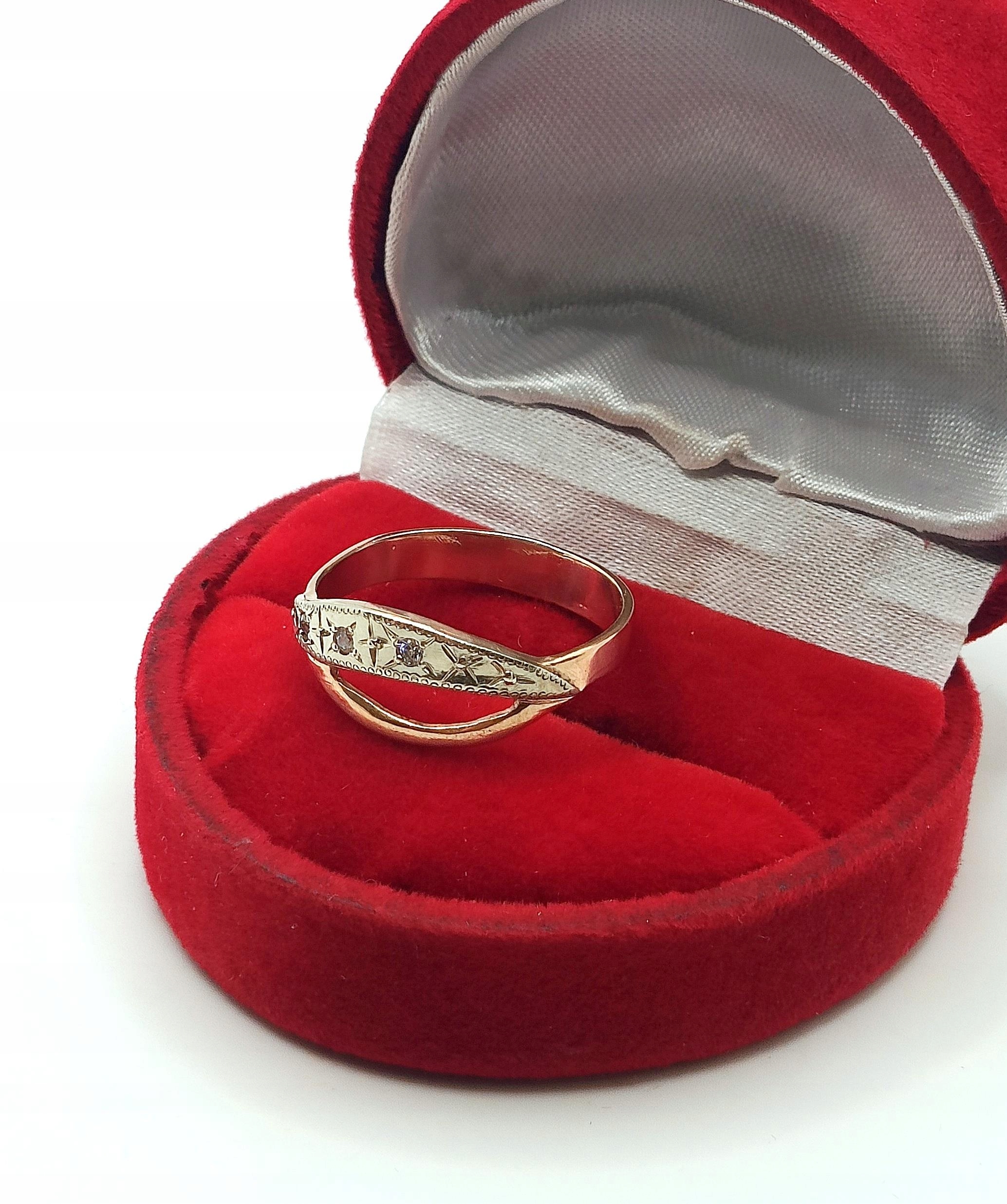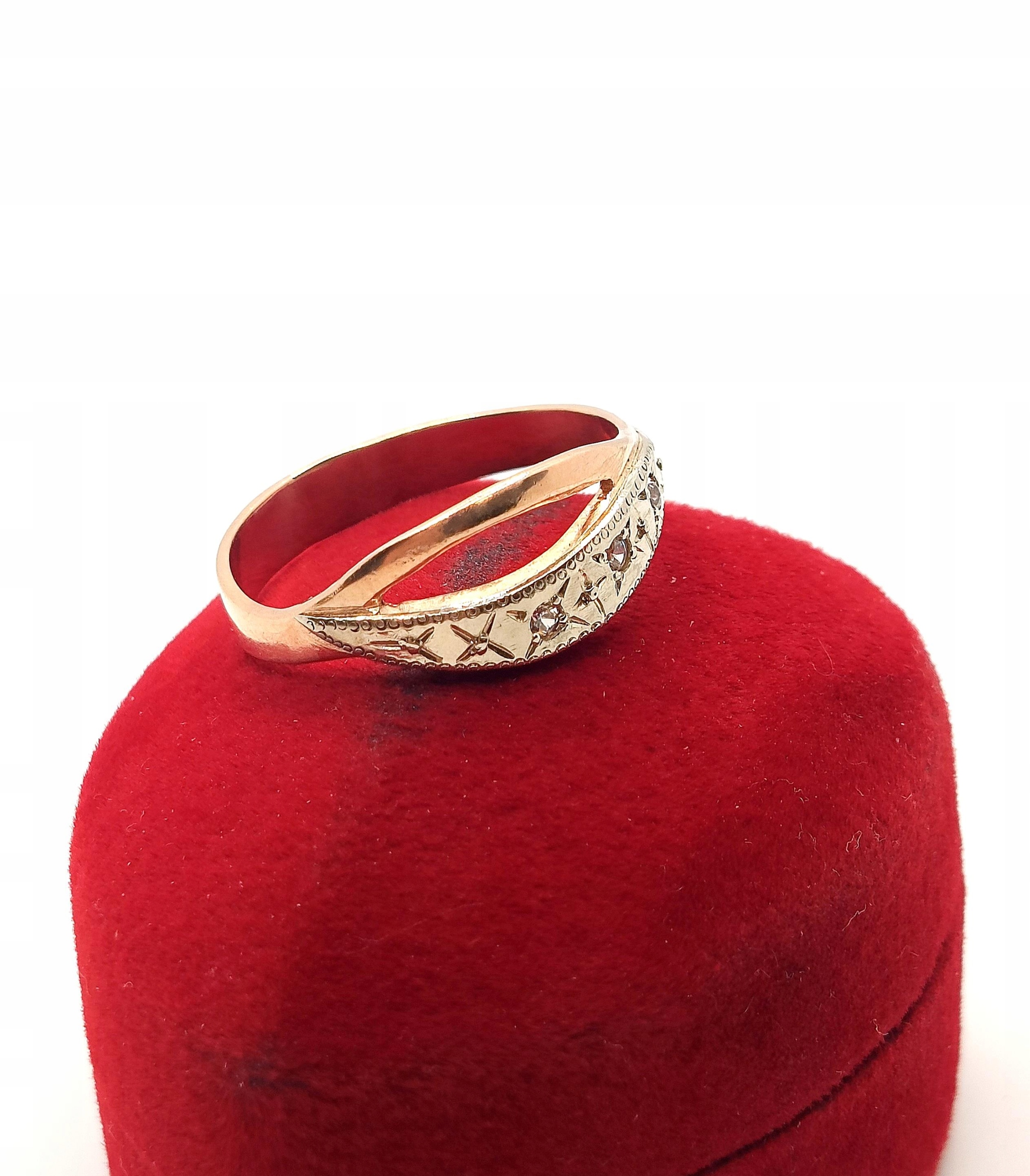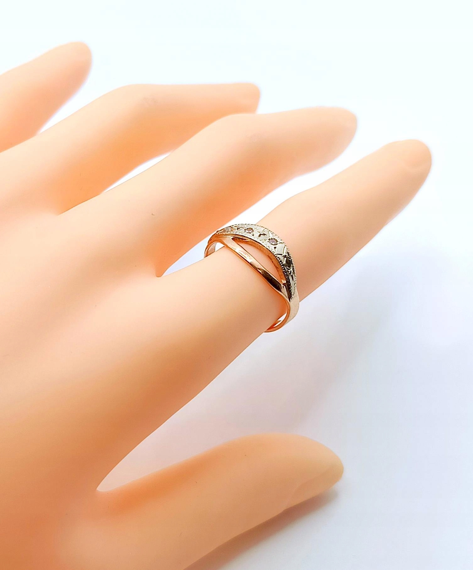 Pierścionek w całości wykonany z różowego oraz białego złota próby 583.