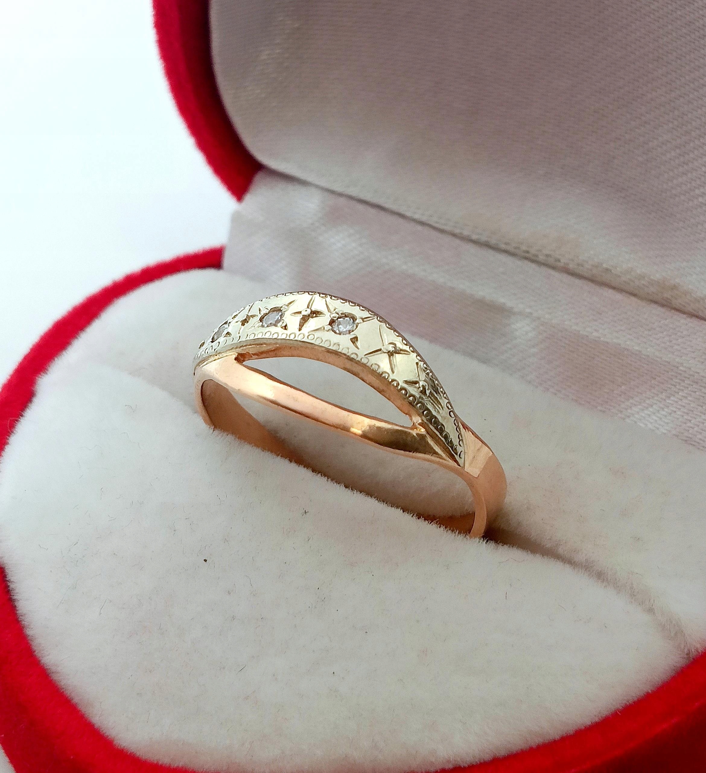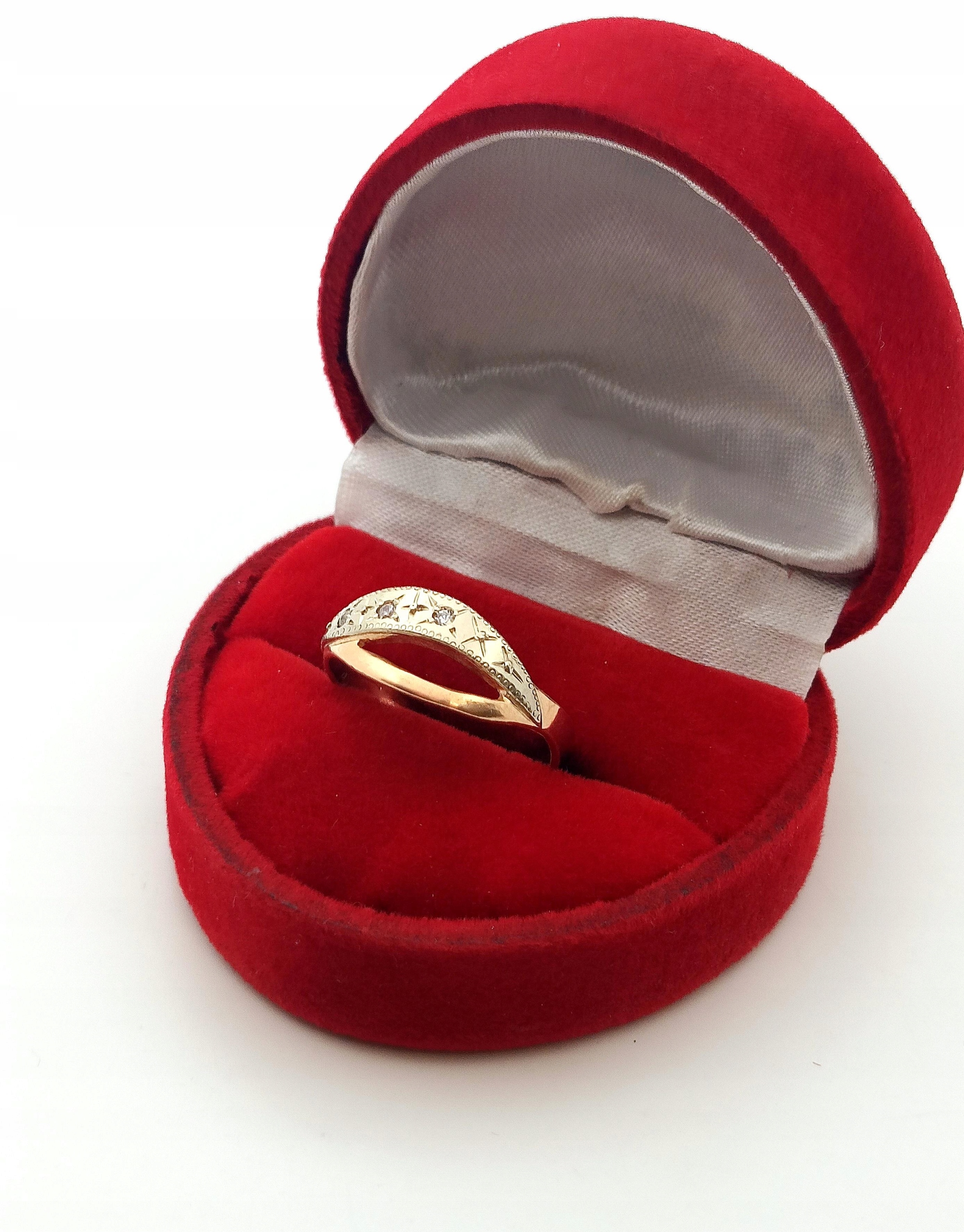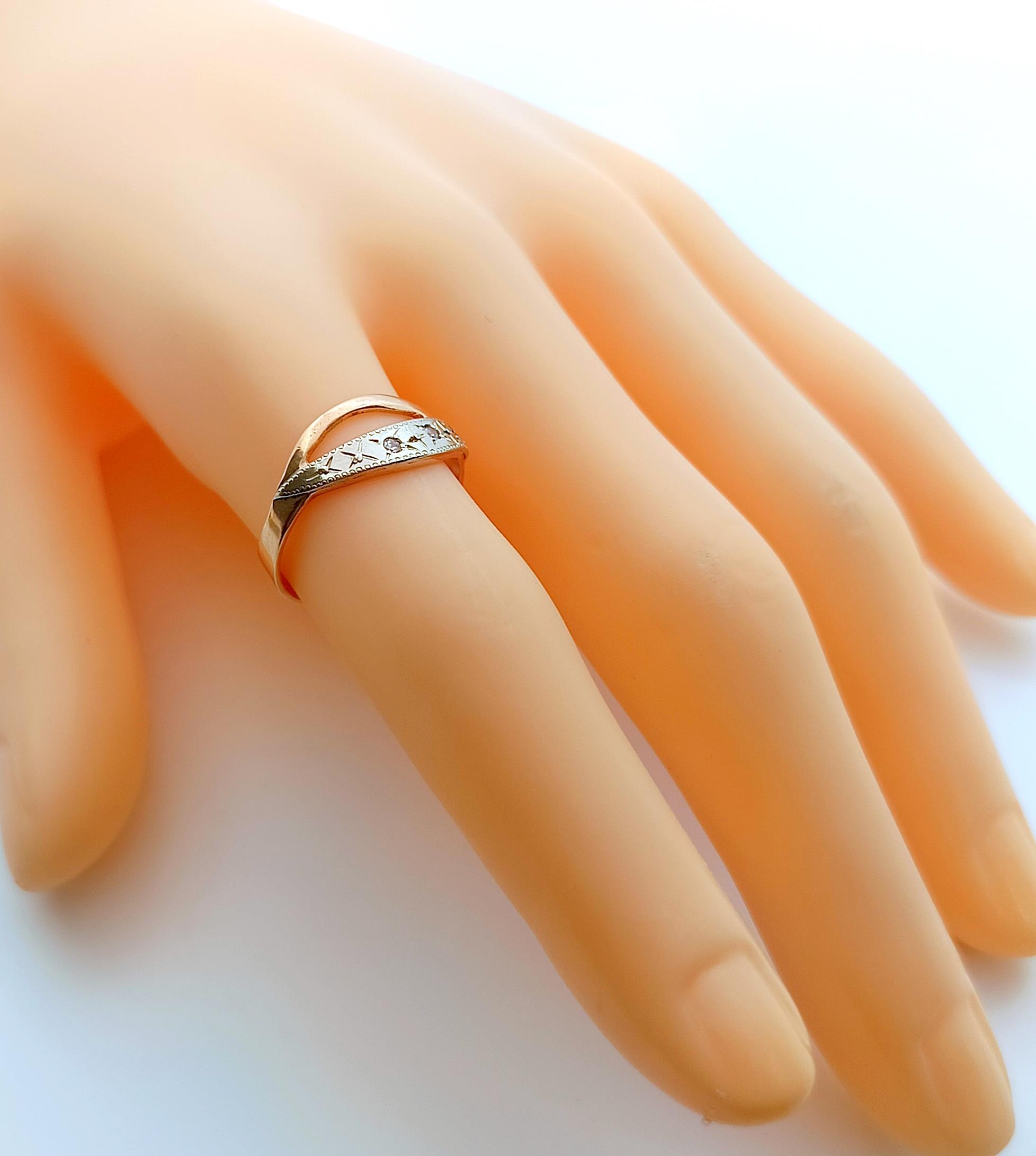 Pierścionek w całości wykonany z różowego oraz białego złota próby 583.