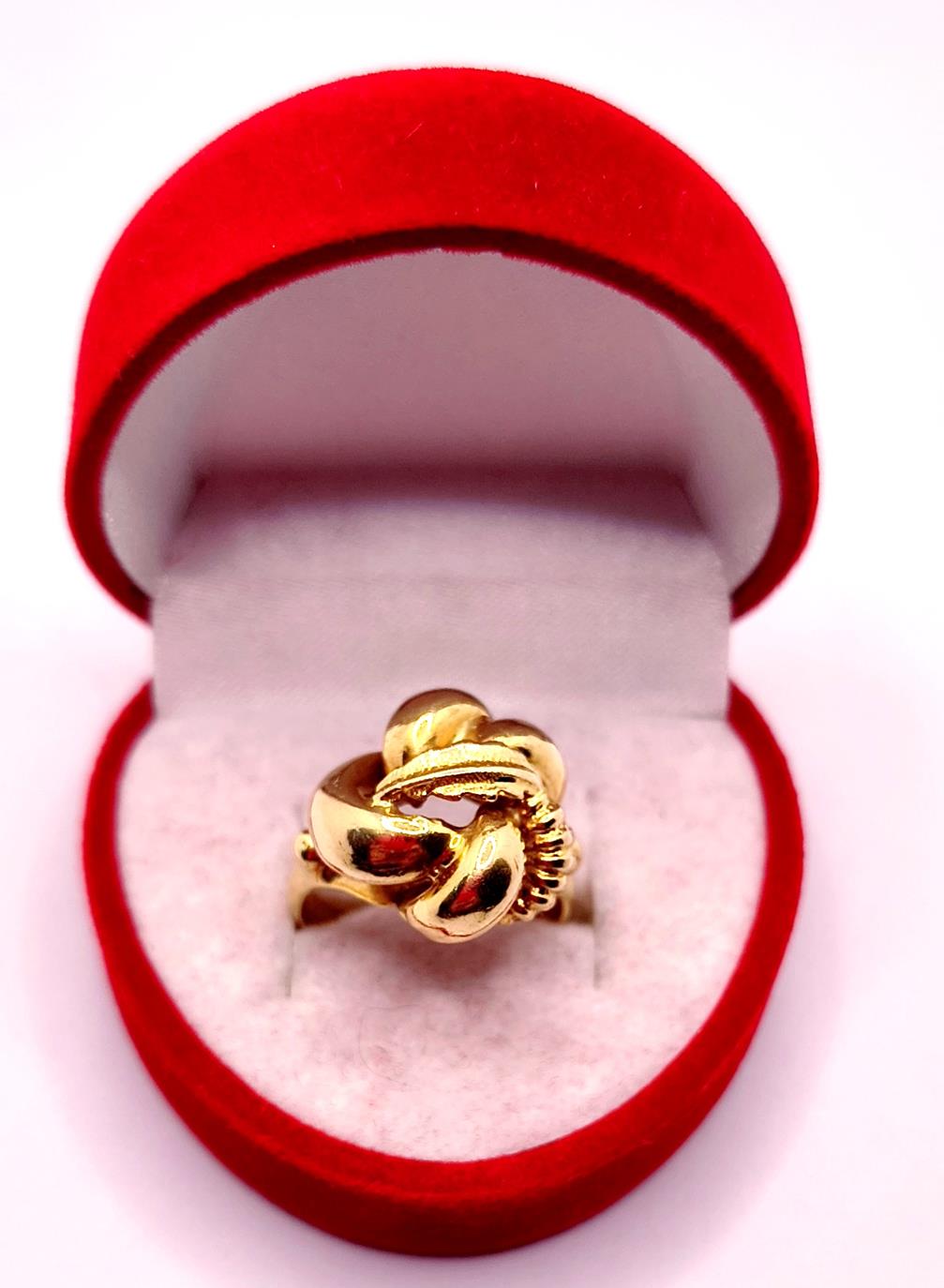 W ofercie sprzedaży posiadamy piękny, złoty, pleciony pierścionek.