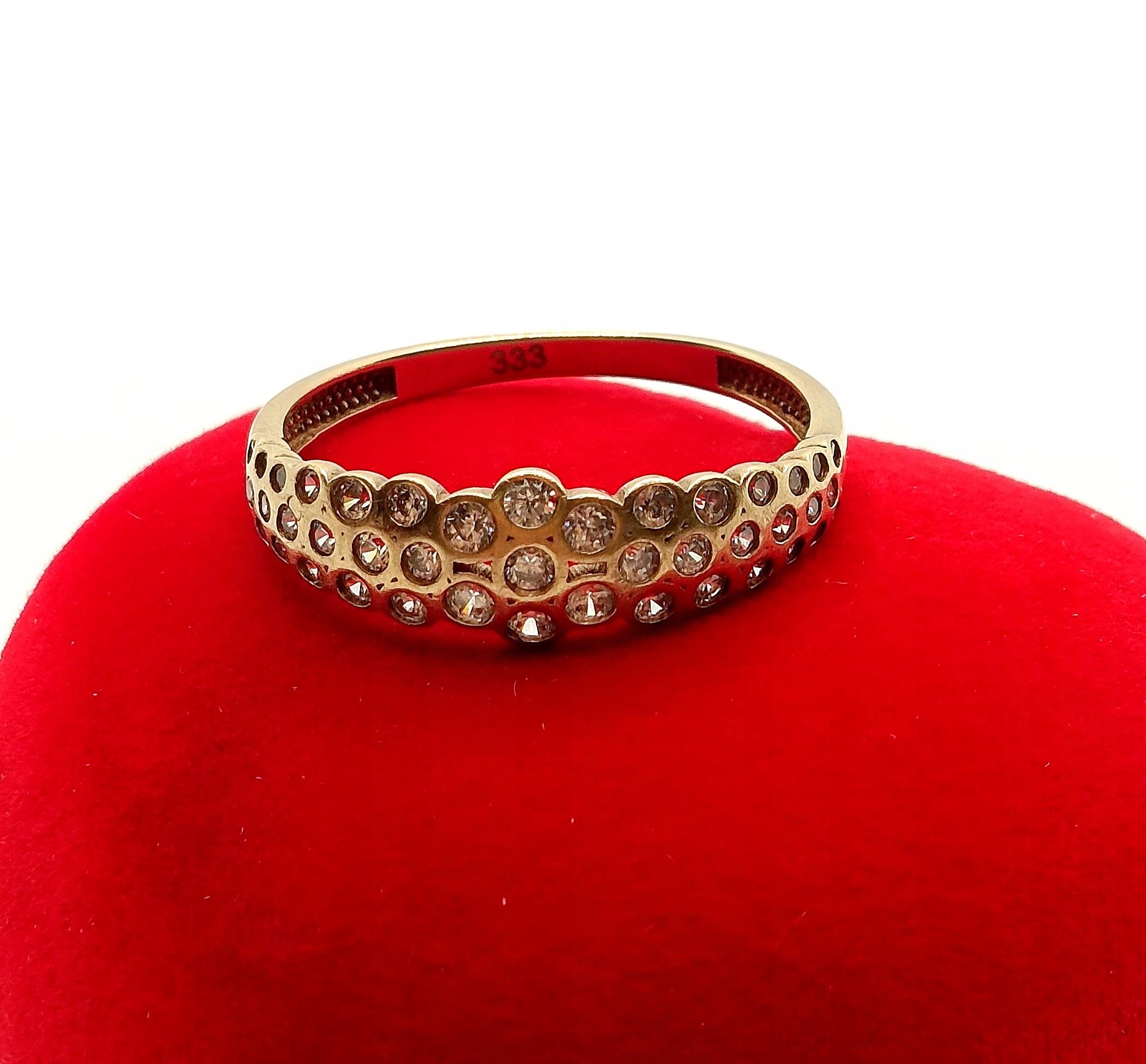 Złoty pierścionek cyrkoniami Pr.333 W:1,57gr r.17