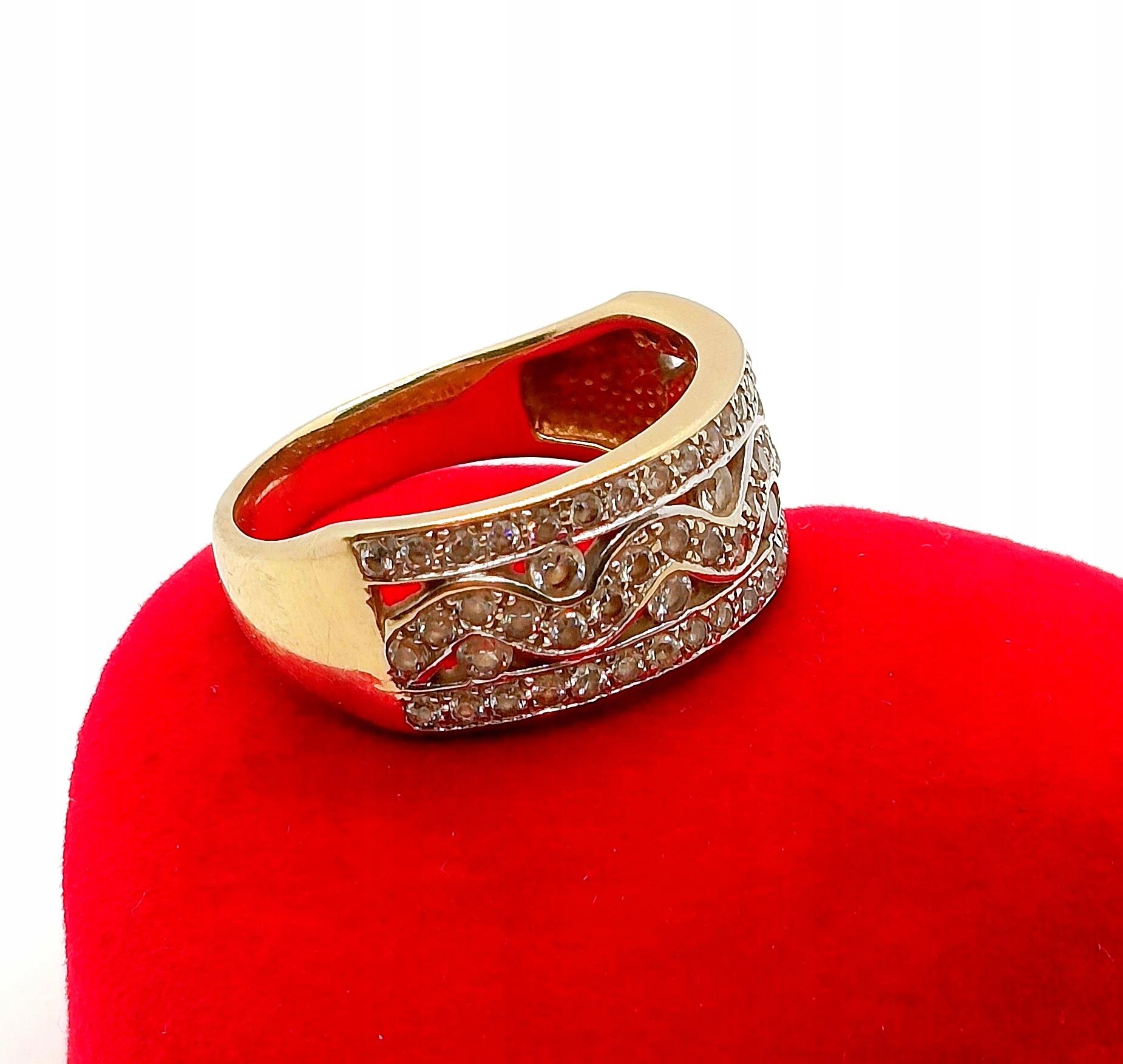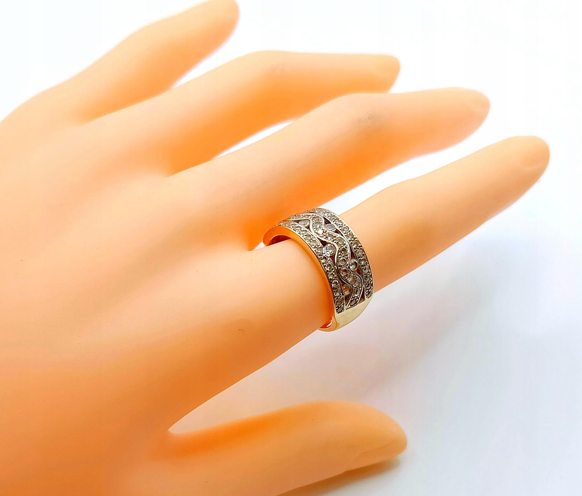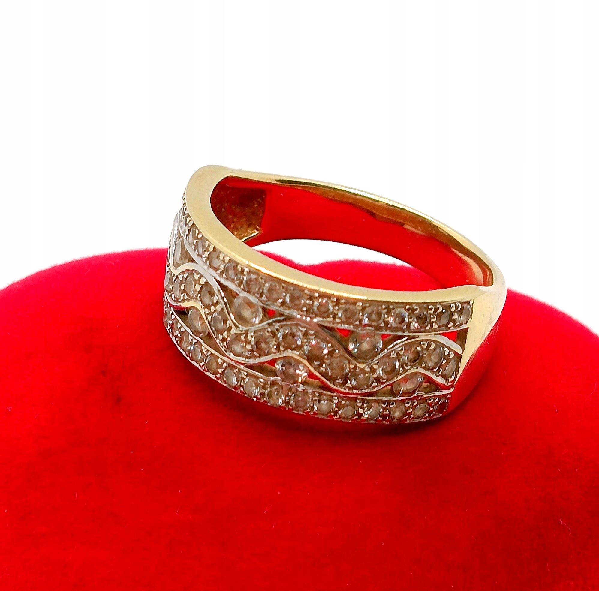 Złoty pierścionek szeroki z cyrkoniami Pr.585 W:5,44gr R.16