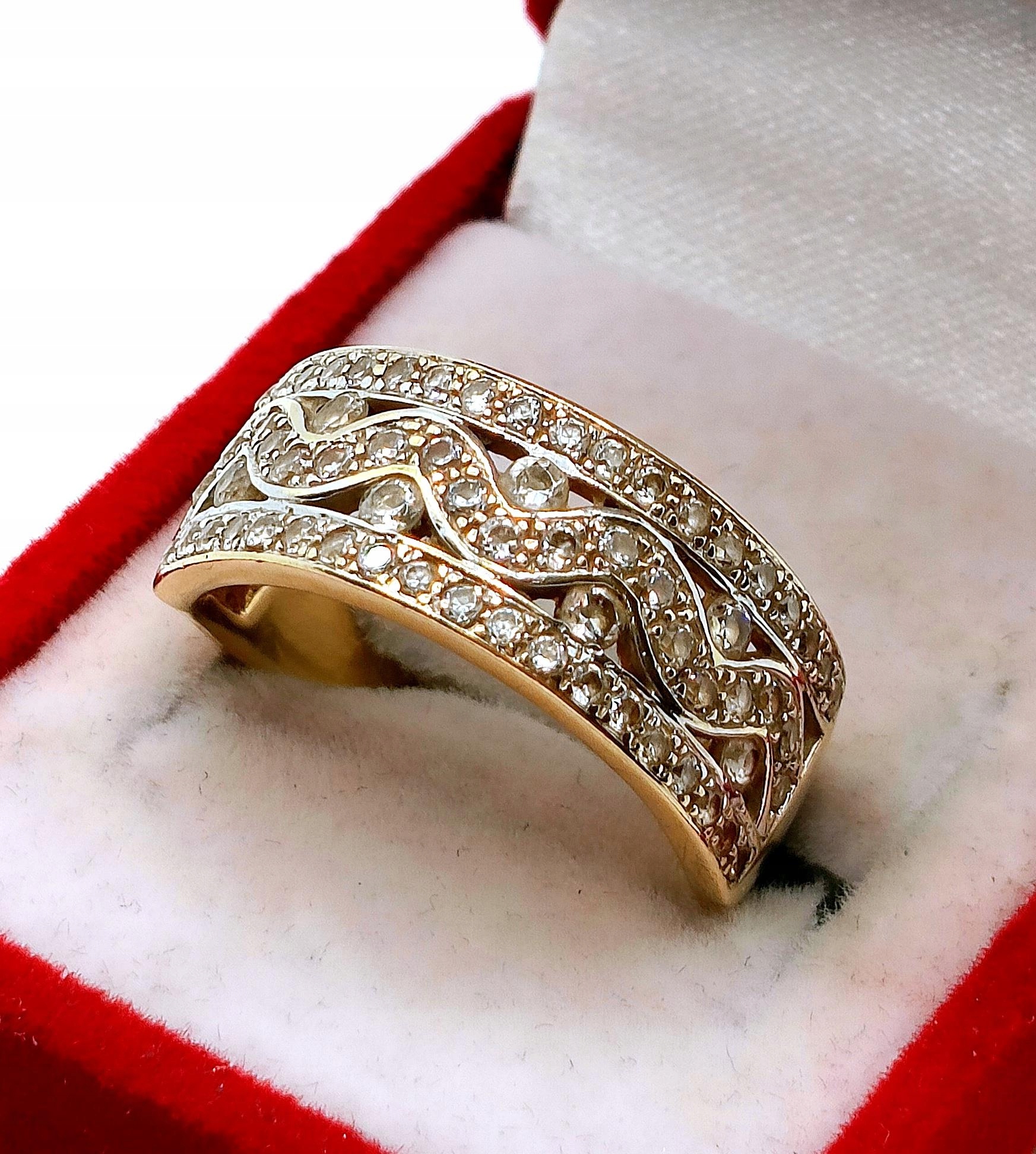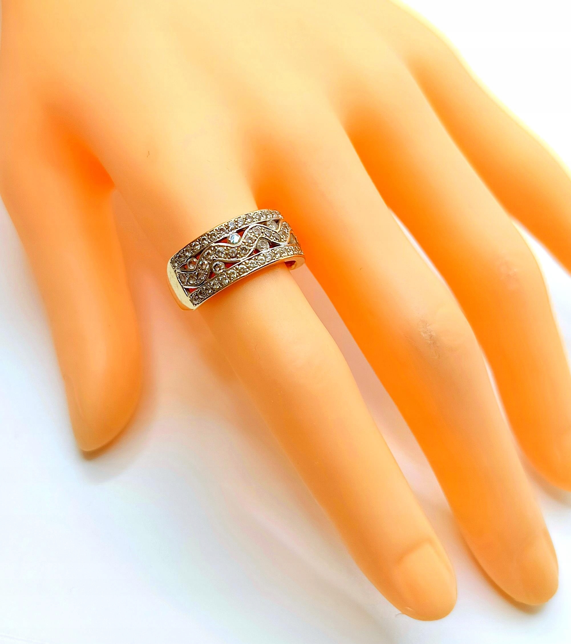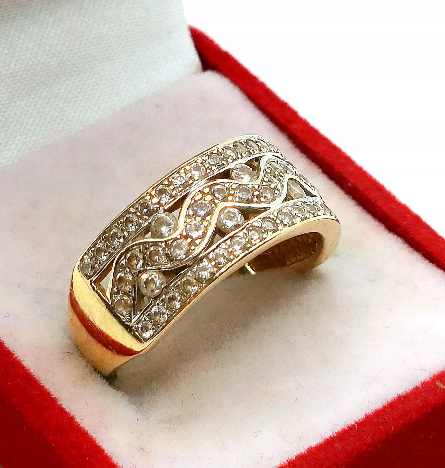 Złoty pierścionek szeroki z cyrkoniami Pr.585 W:5,44gr R.16