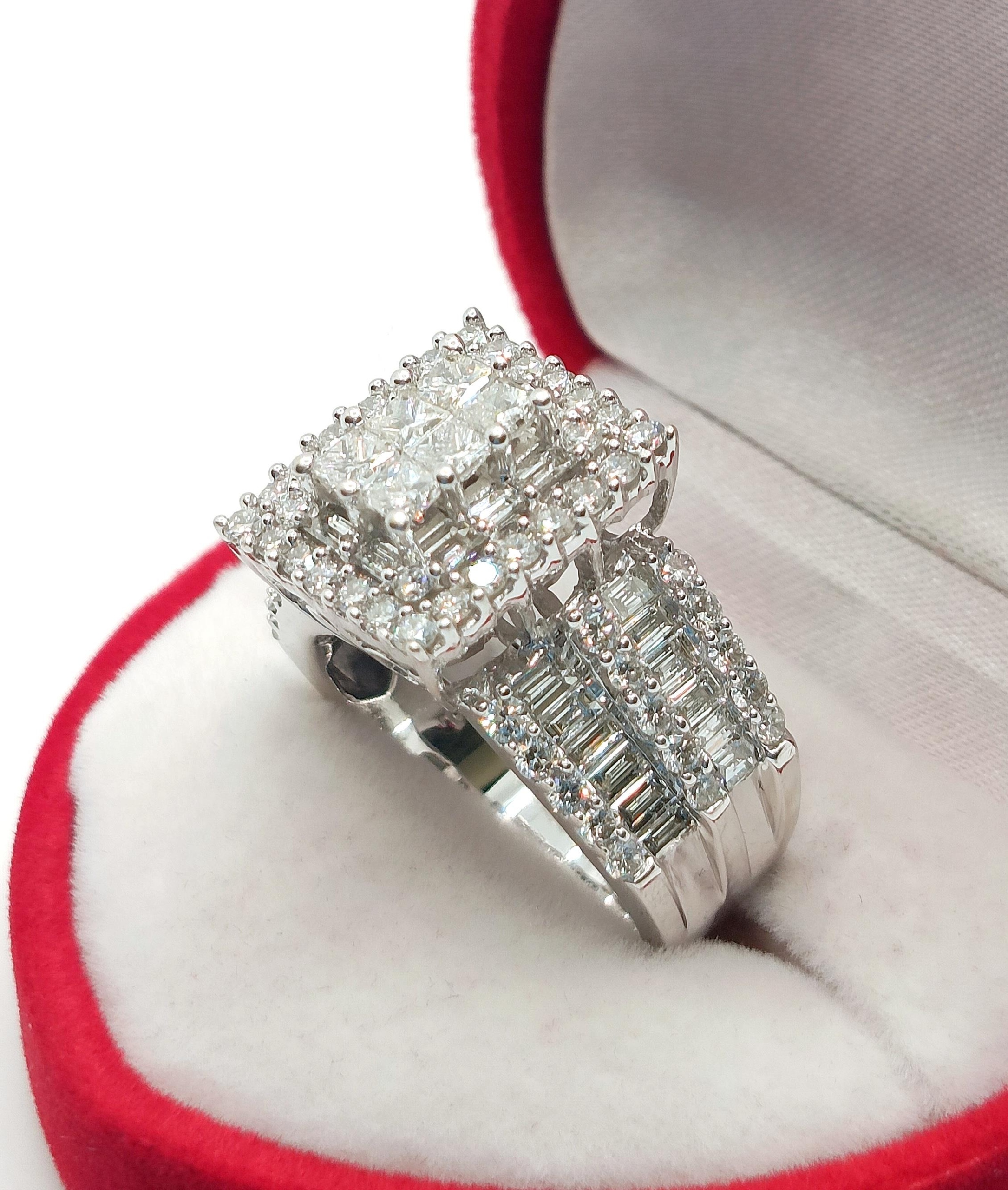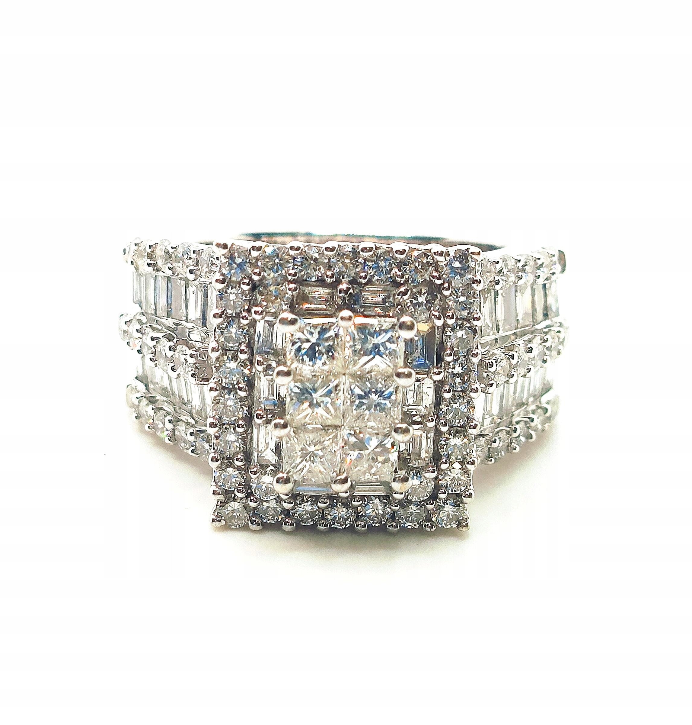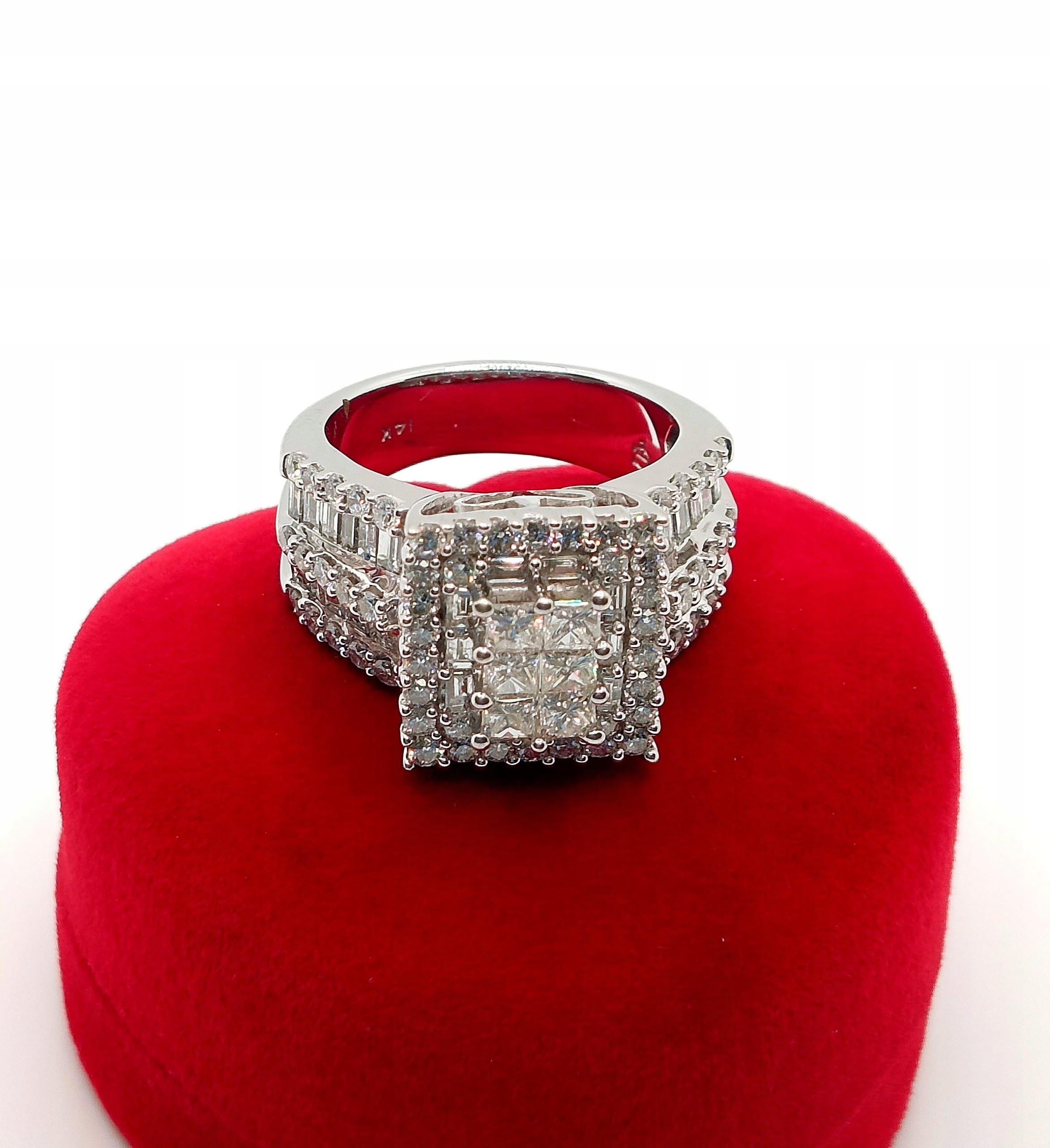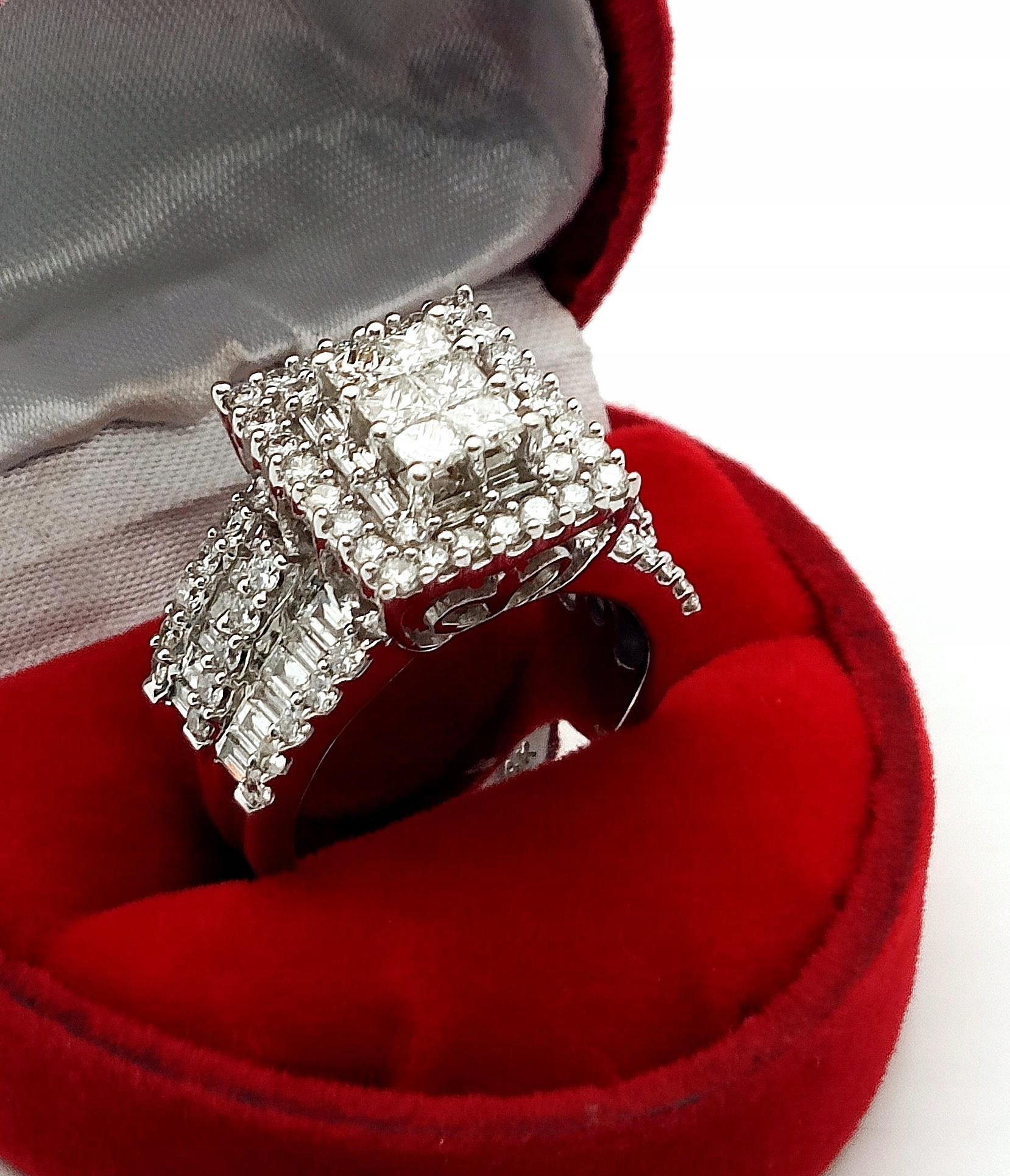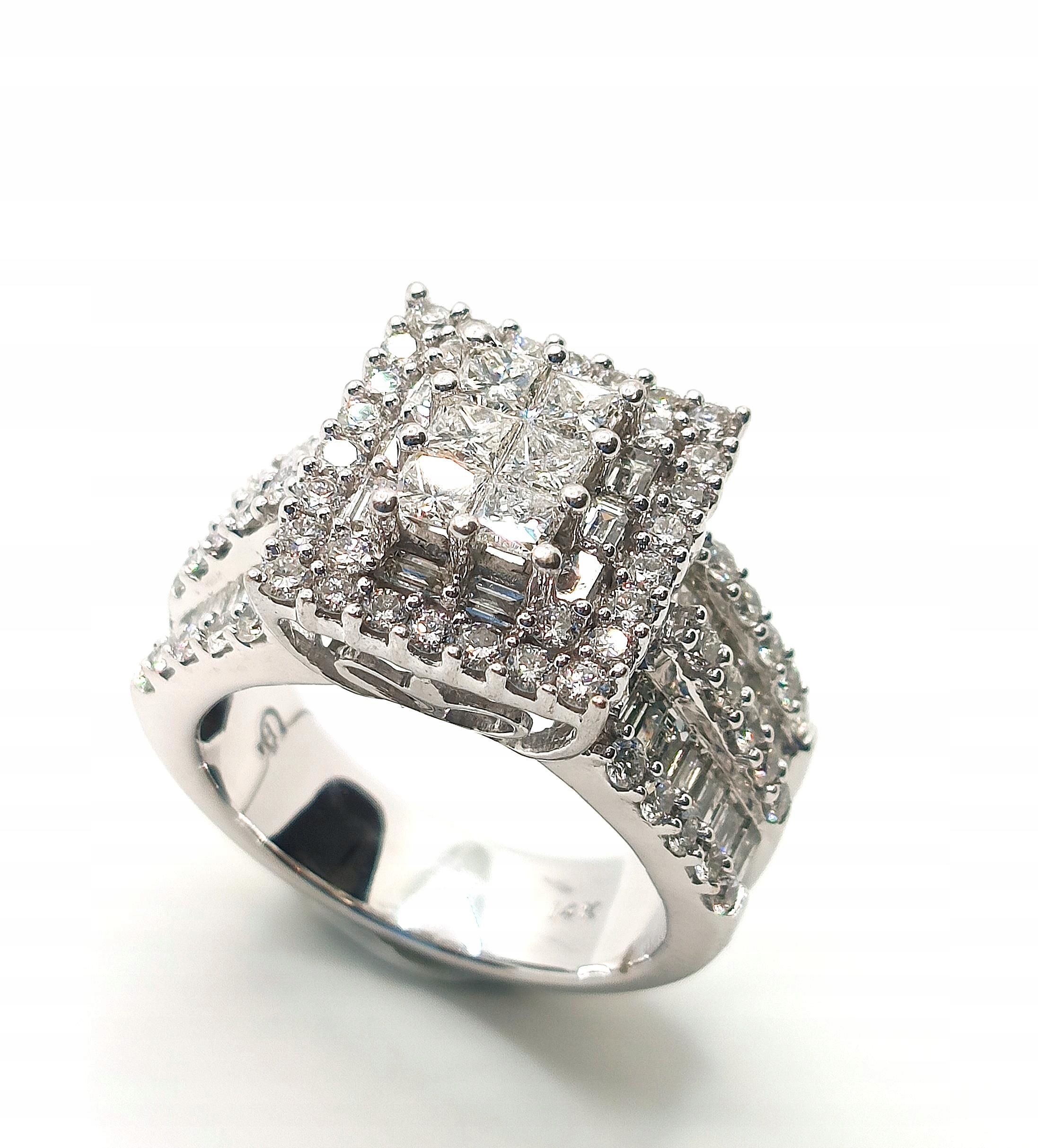W ofercie na sprzedaż mamy dla Państwa Piękny, złoty pierścionek okazale zdobiony diamentami o sumarycznej masie aż 2,67ct. Od strony wewnętrznej pierścionka ornamentowe ażurowa stylizacja.