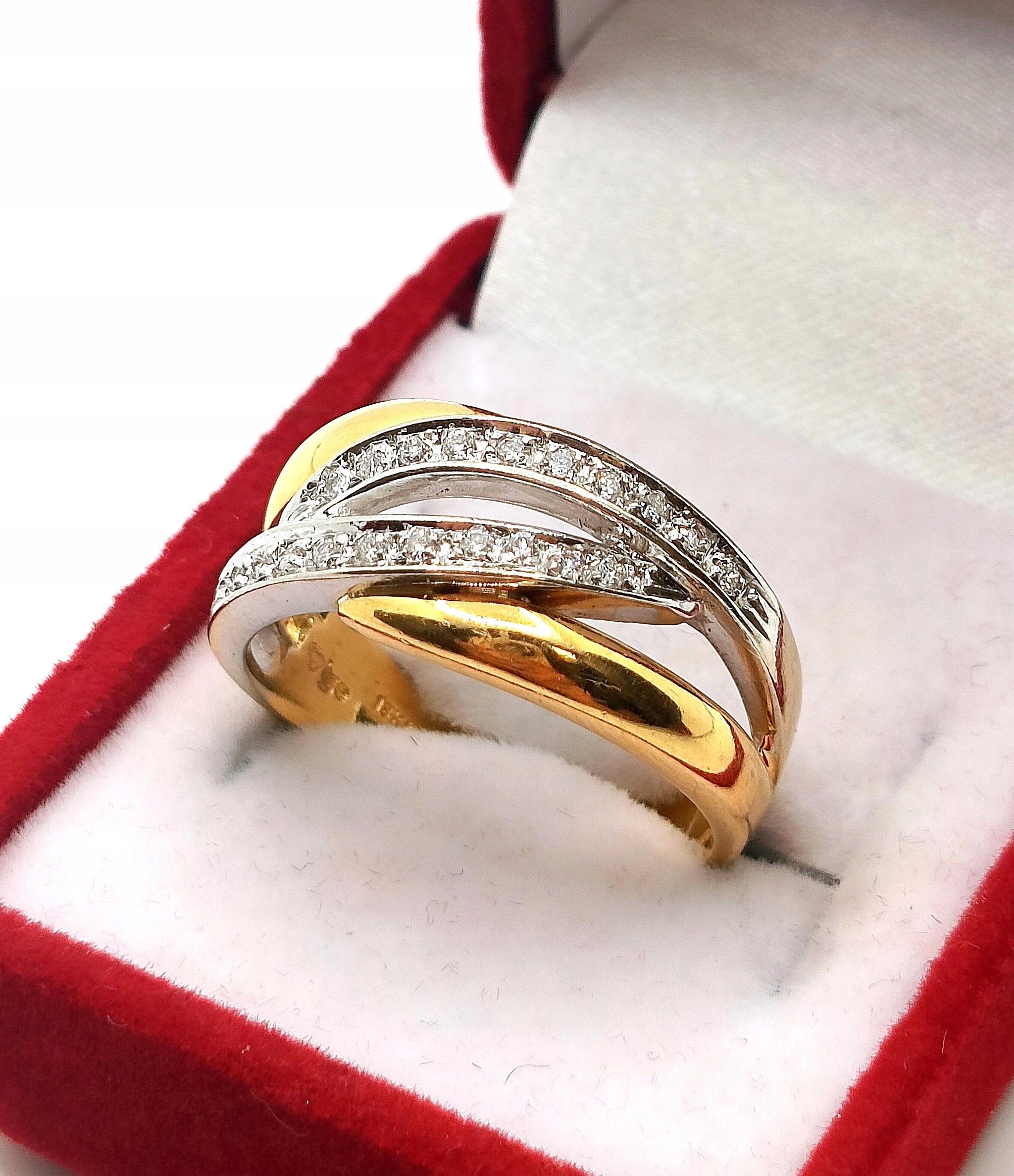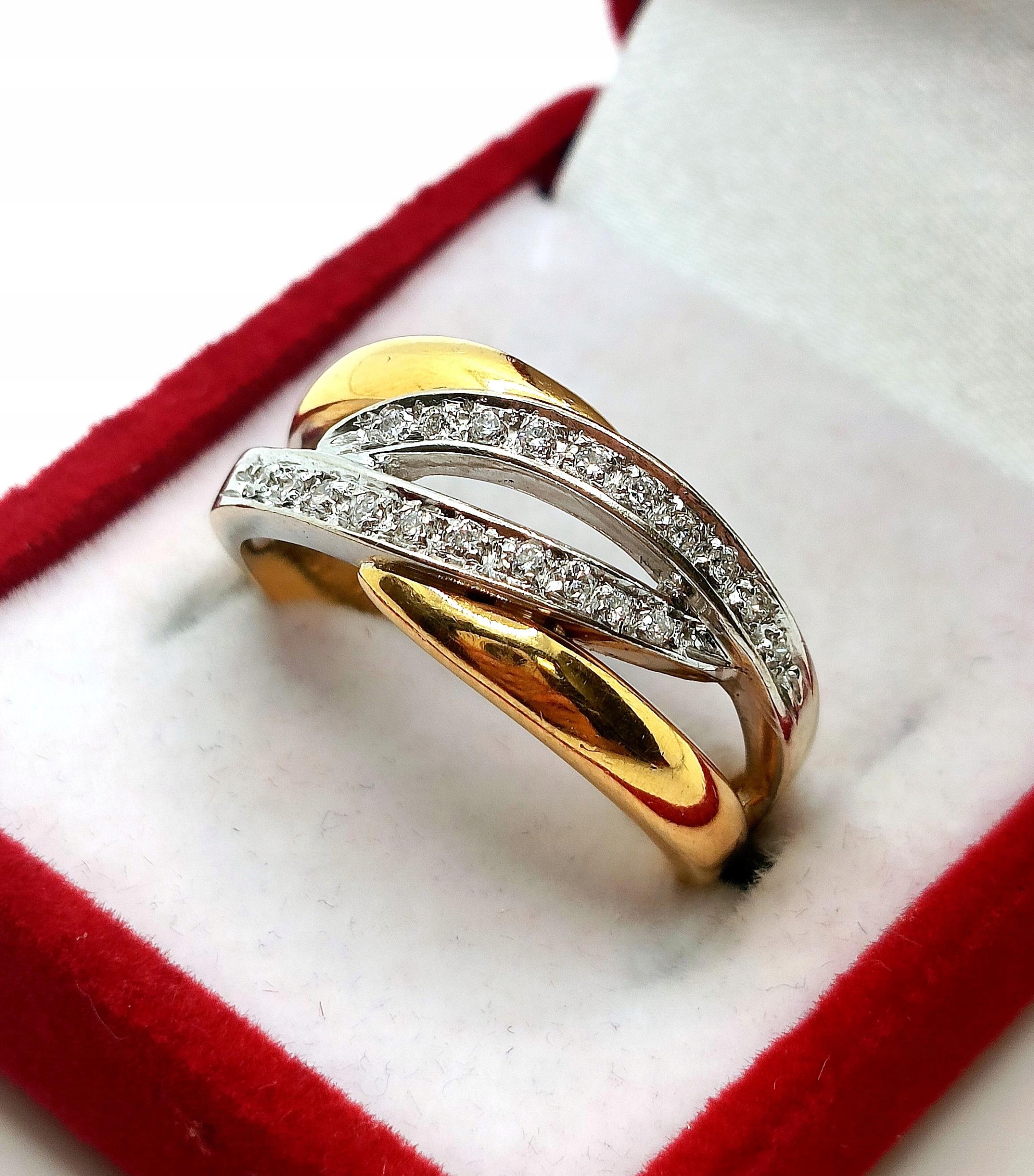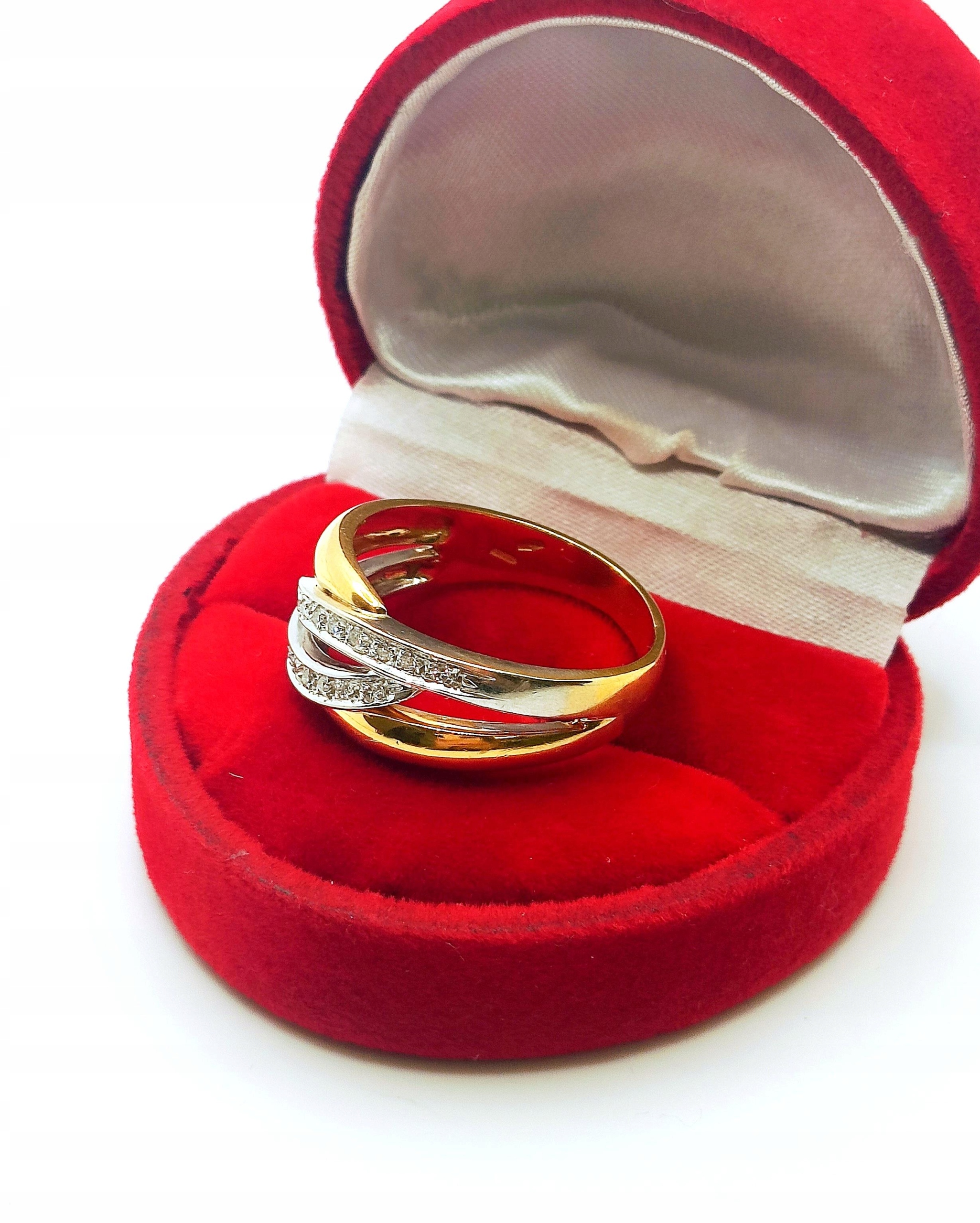 Złoty pierścionek szeroki Diamenty 20szt 0,20ct Pr.750 W:5,68gr Roz.17