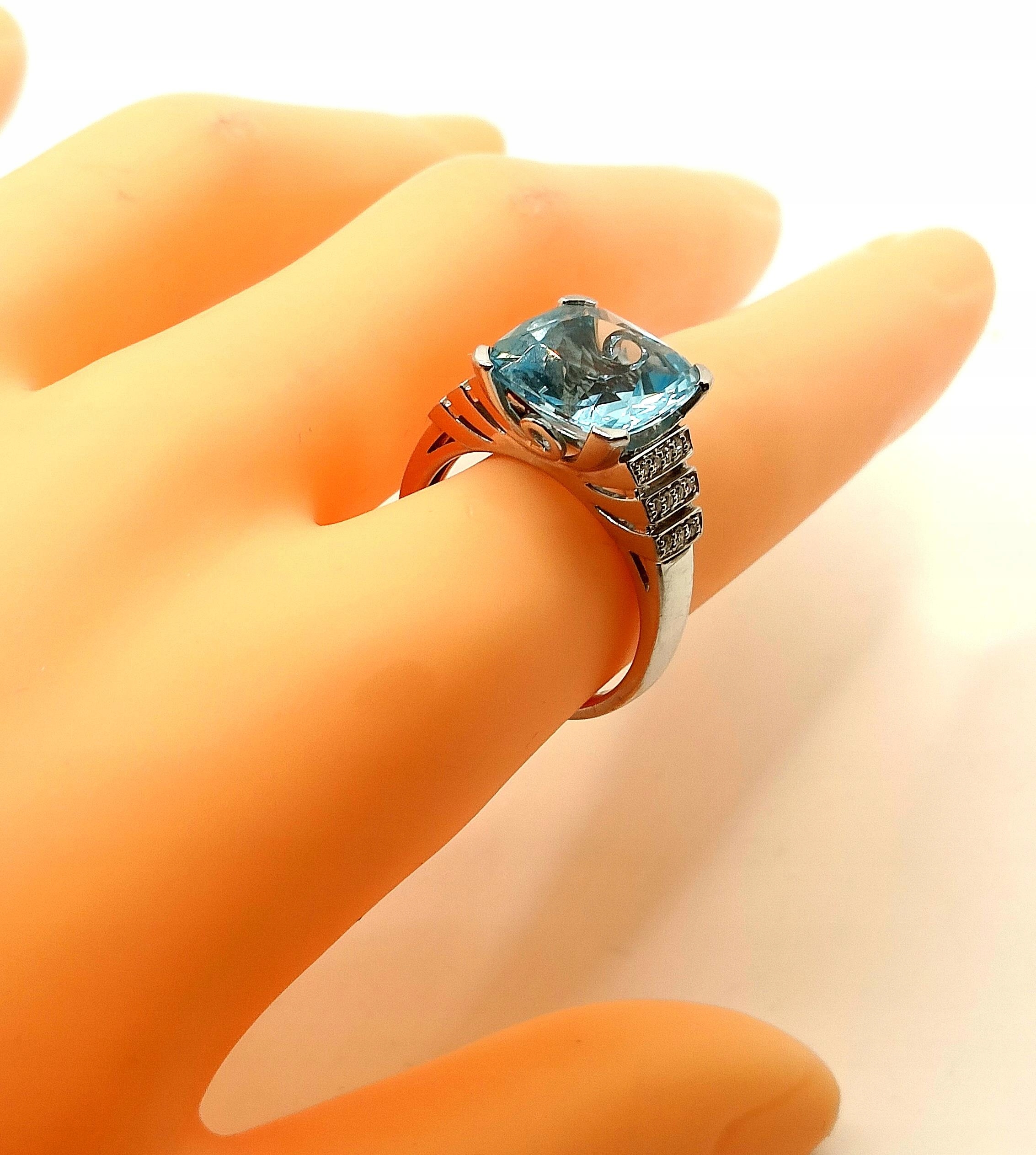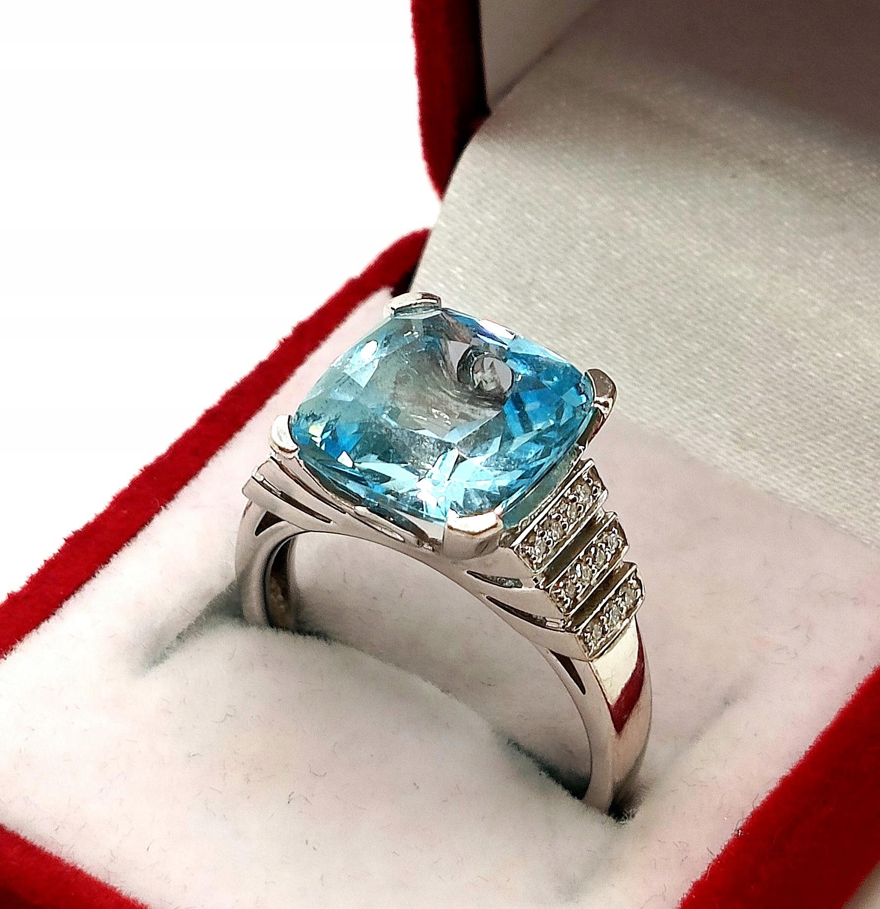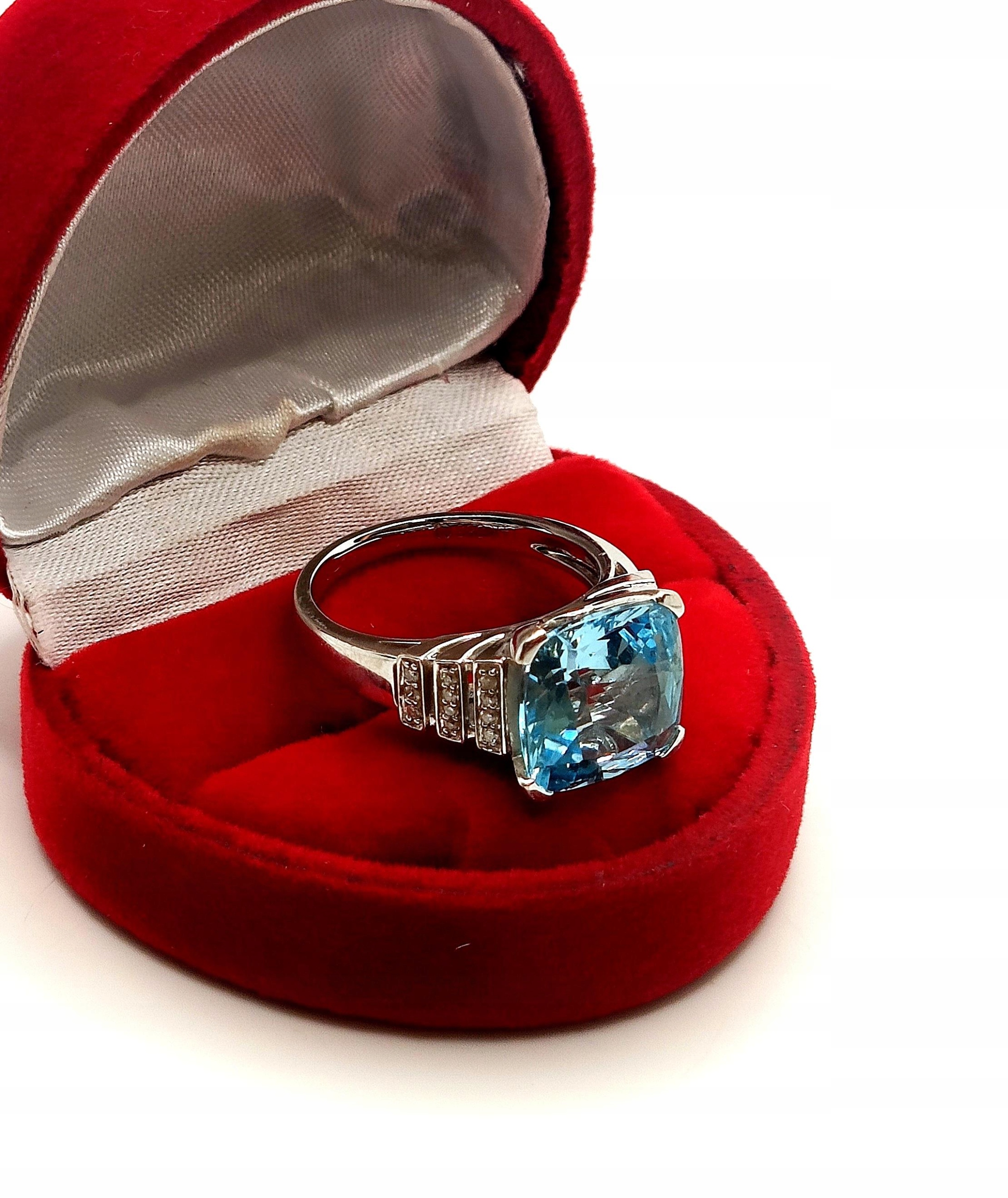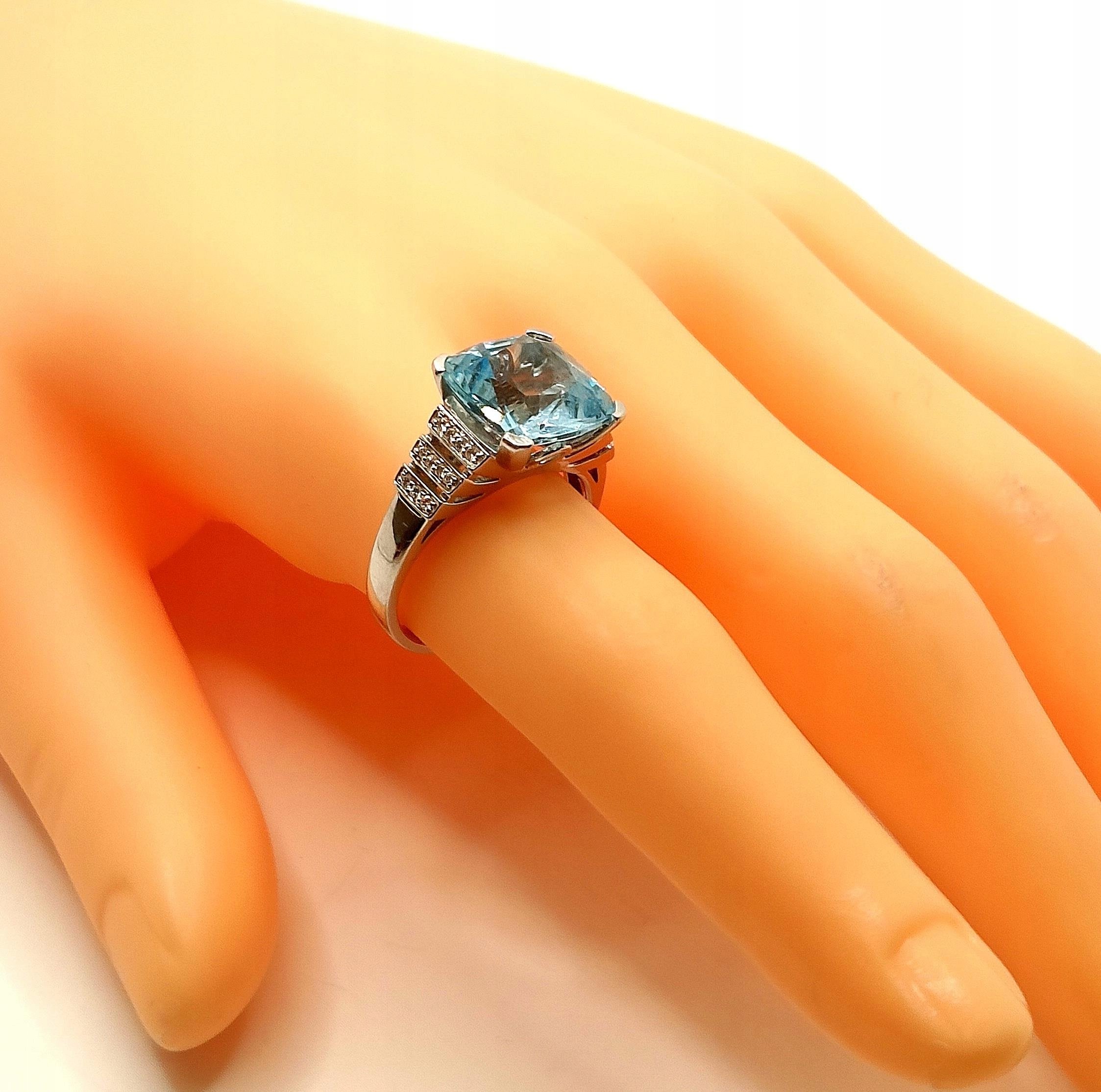 Złoty pierścionek z Akwamarynem i diamentami Pr.585 W:5,69gr Roz.14