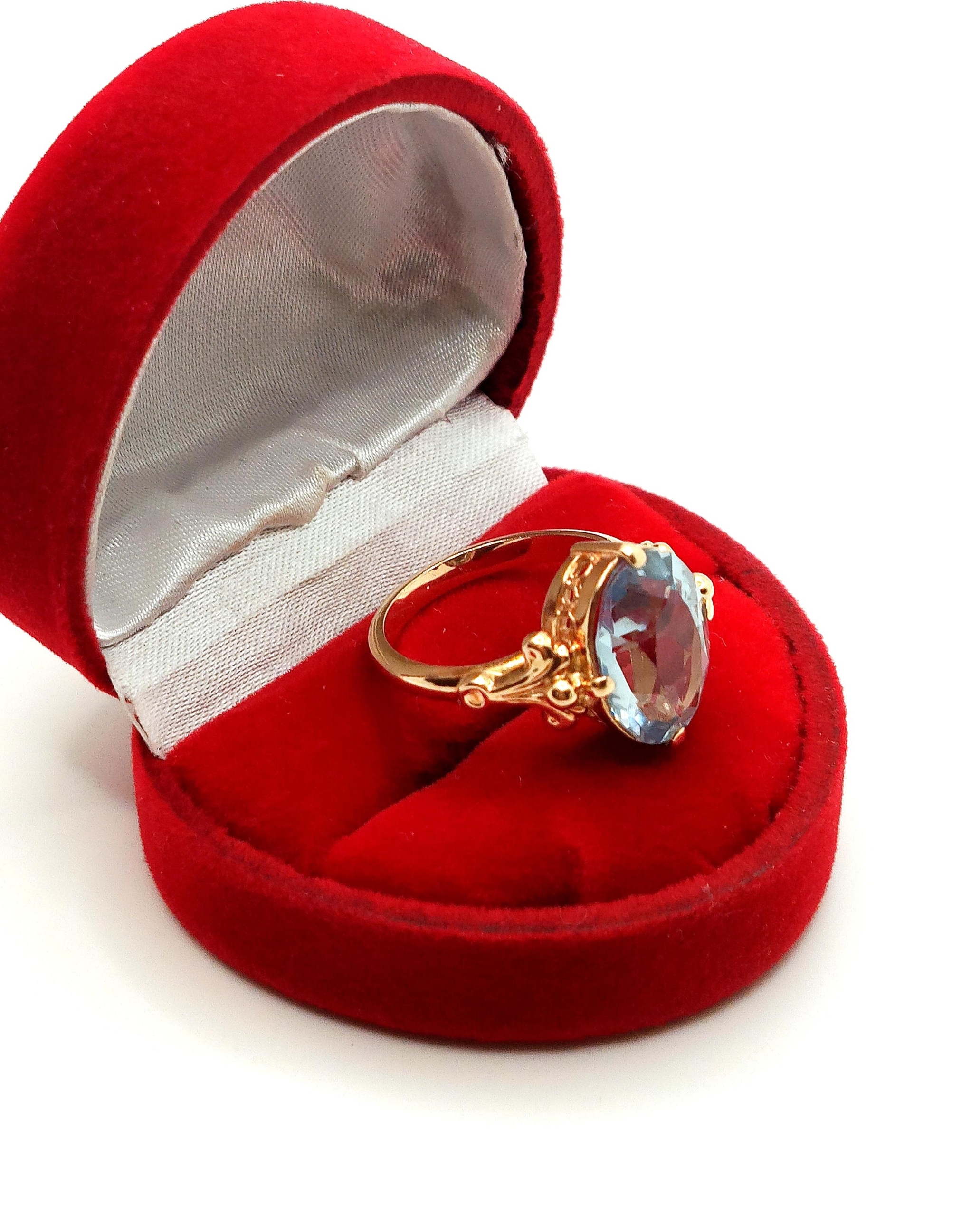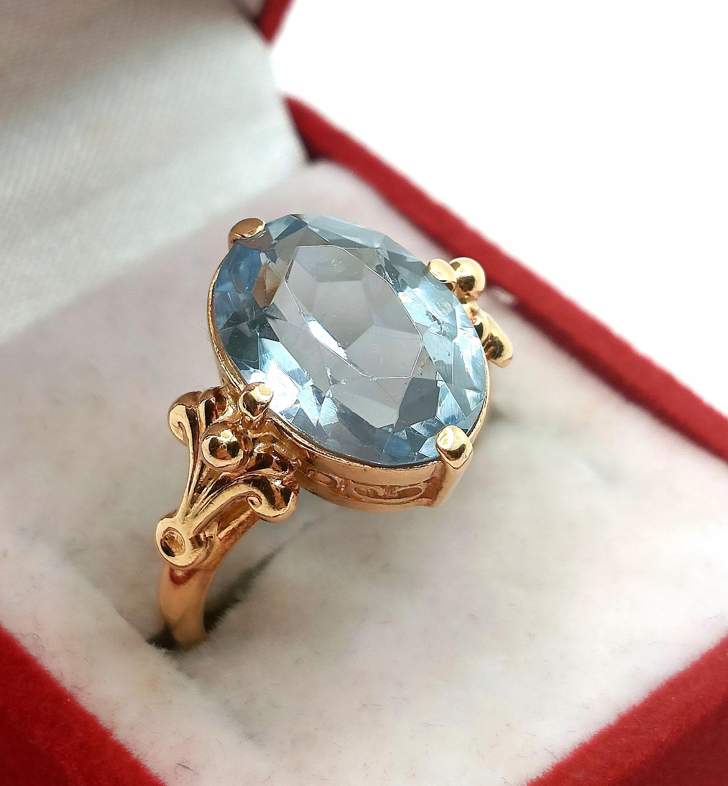 Oferujemy na sprzedaż piękny, złoty pierścionek ozdobiony akwamarynem.