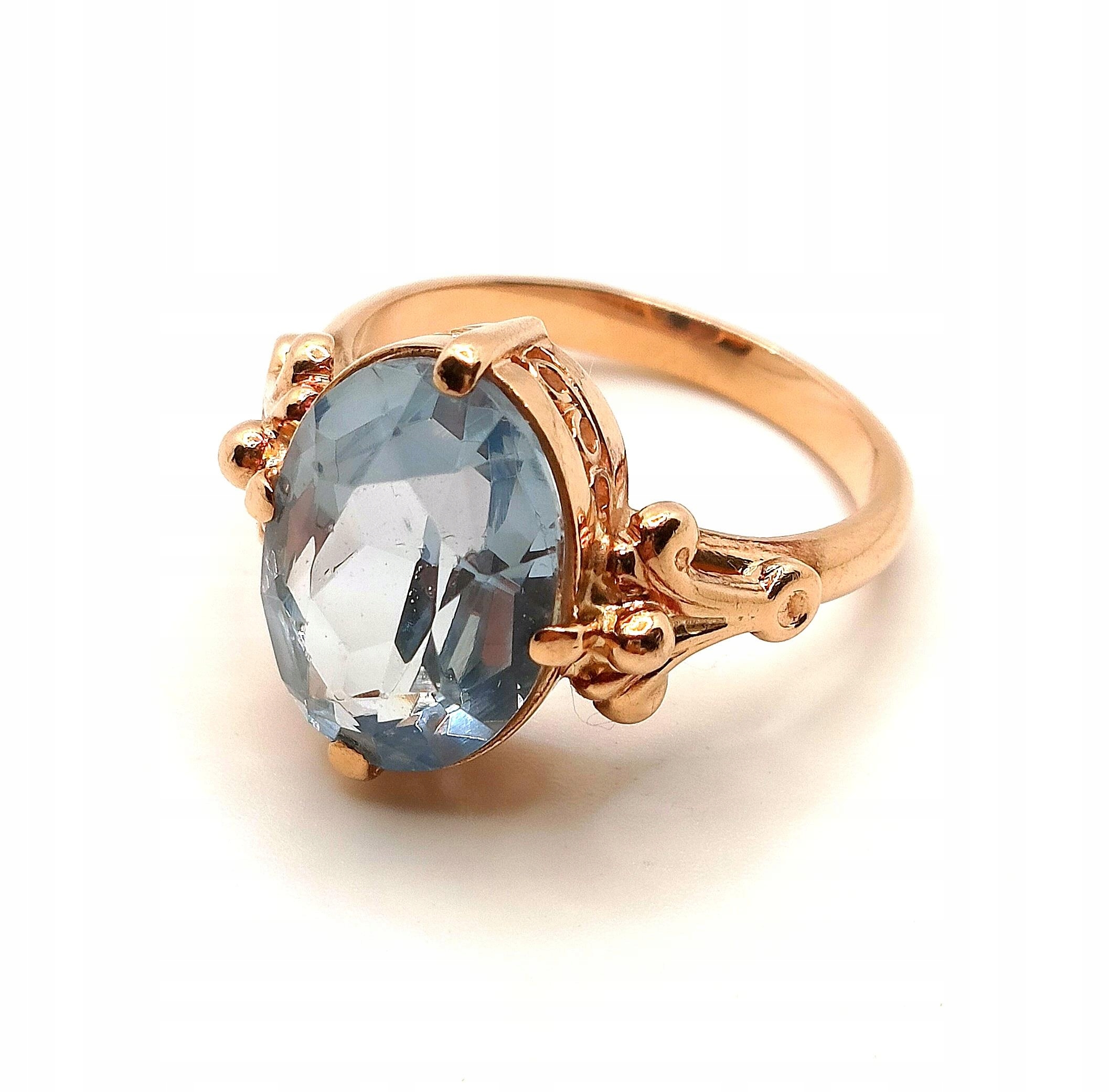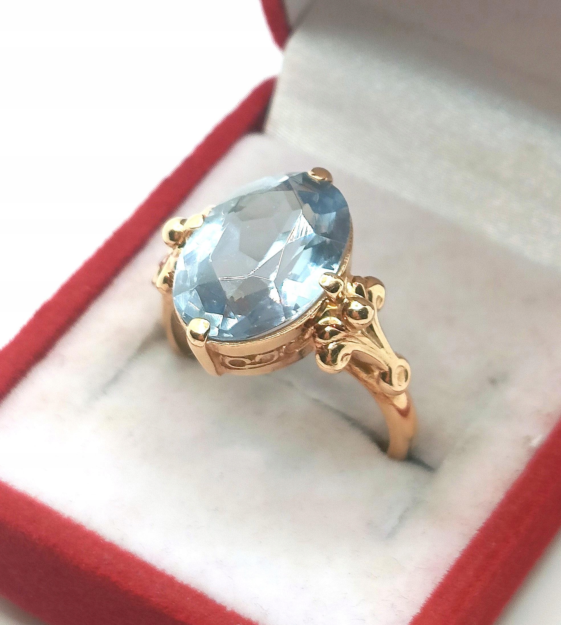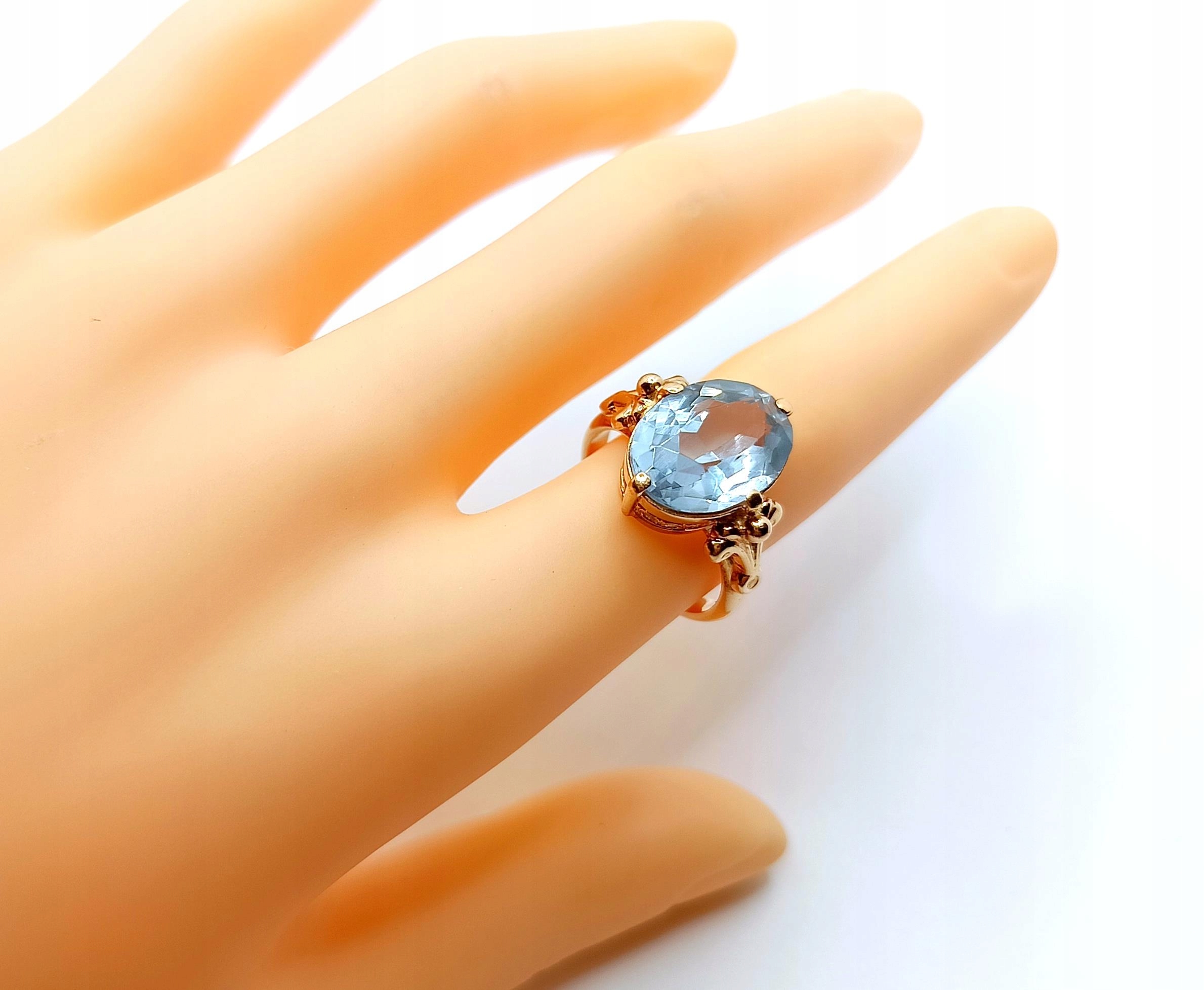 Złoty pierścionek z Akwamarynem Pr.583 W:5,61gr R.13