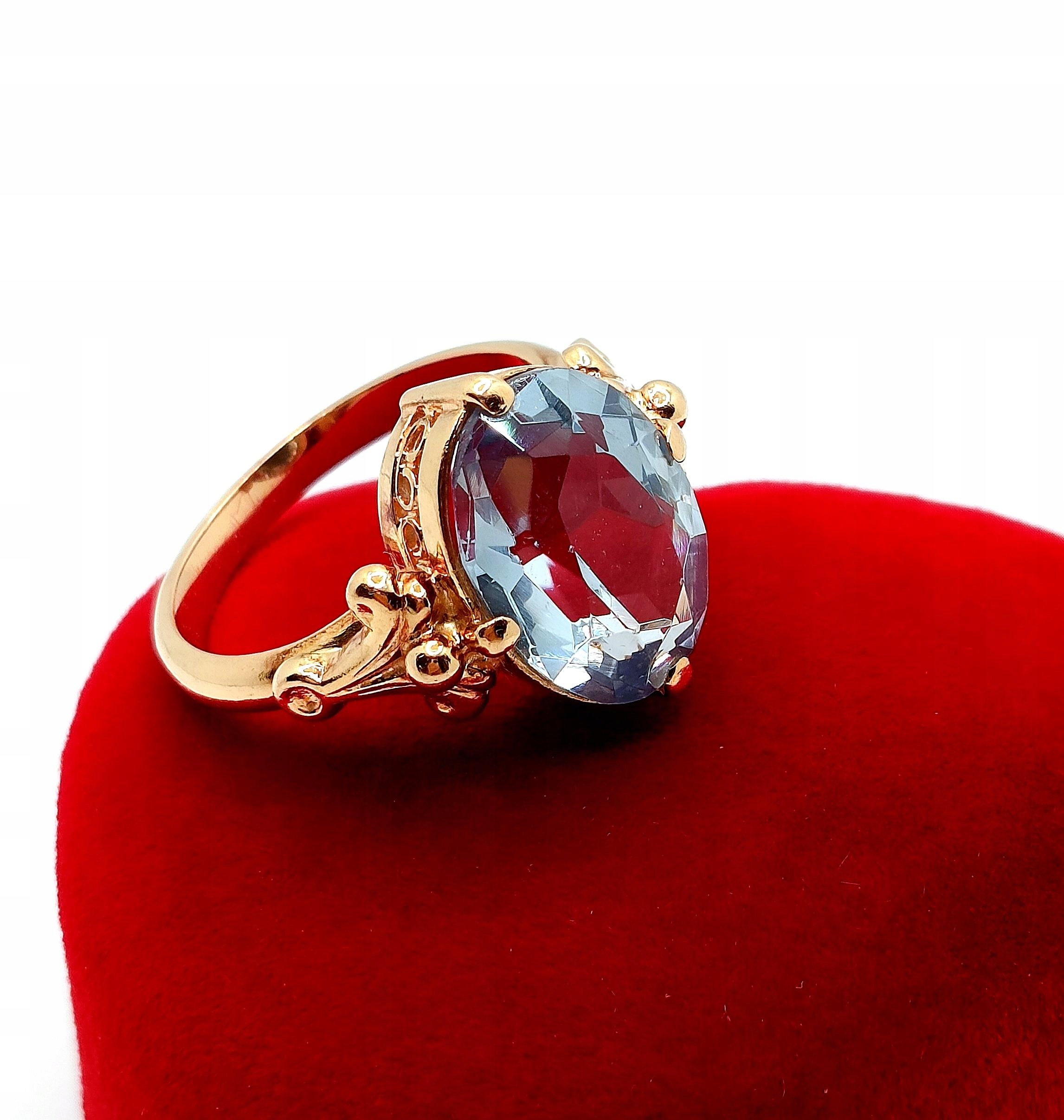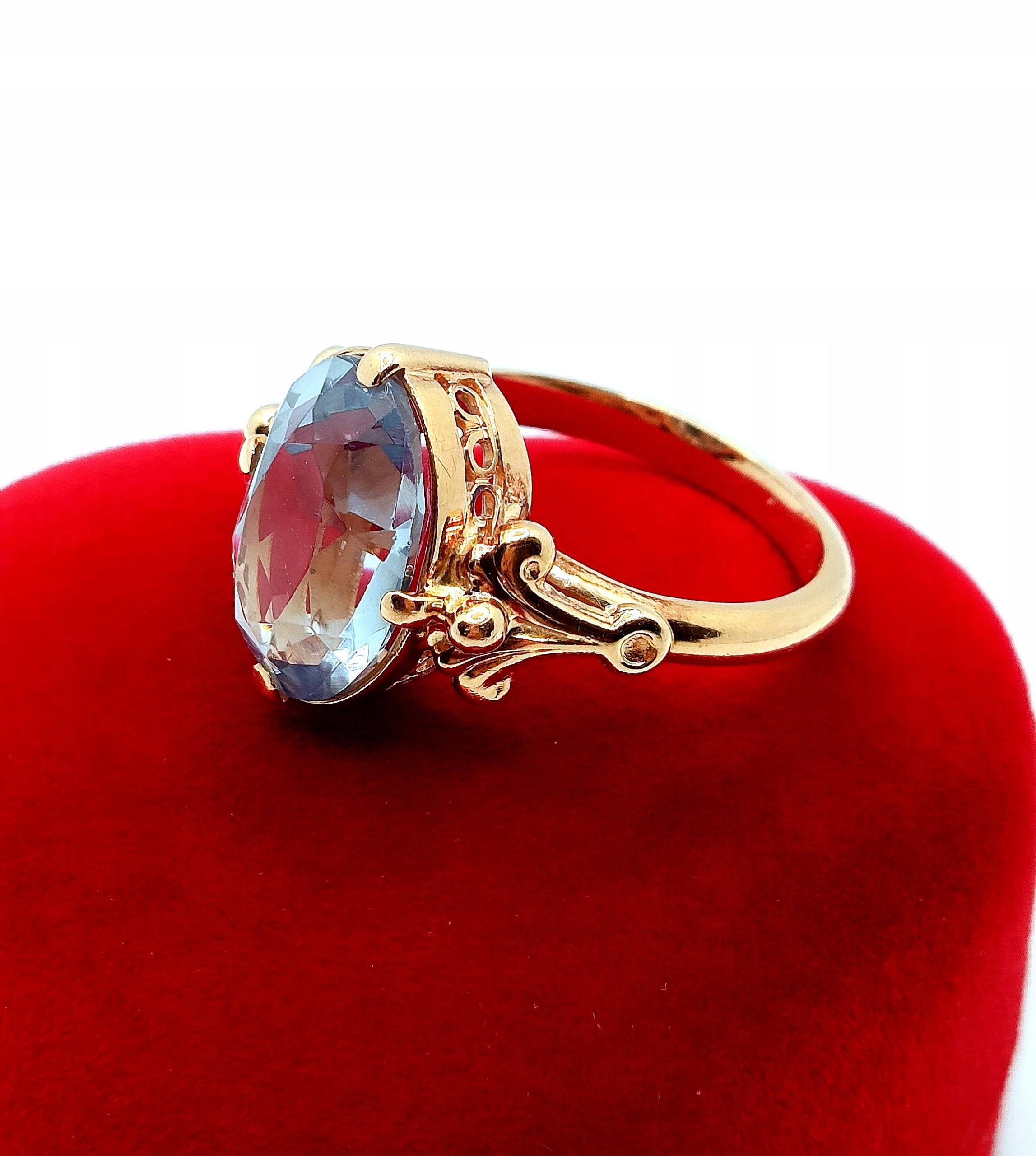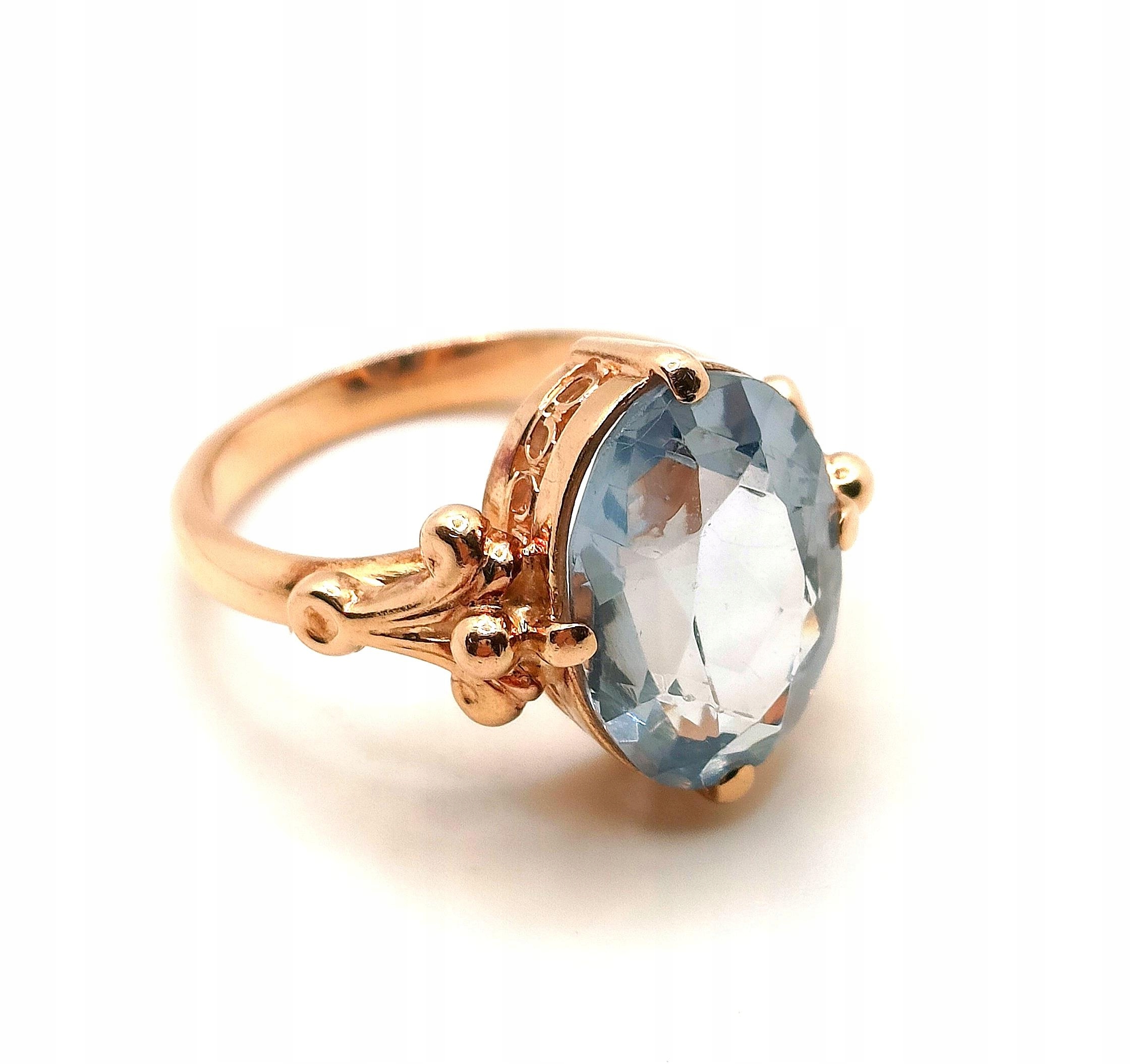 Złoty pierścionek z Akwamarynem Pr.583 W:5,61gr R.13