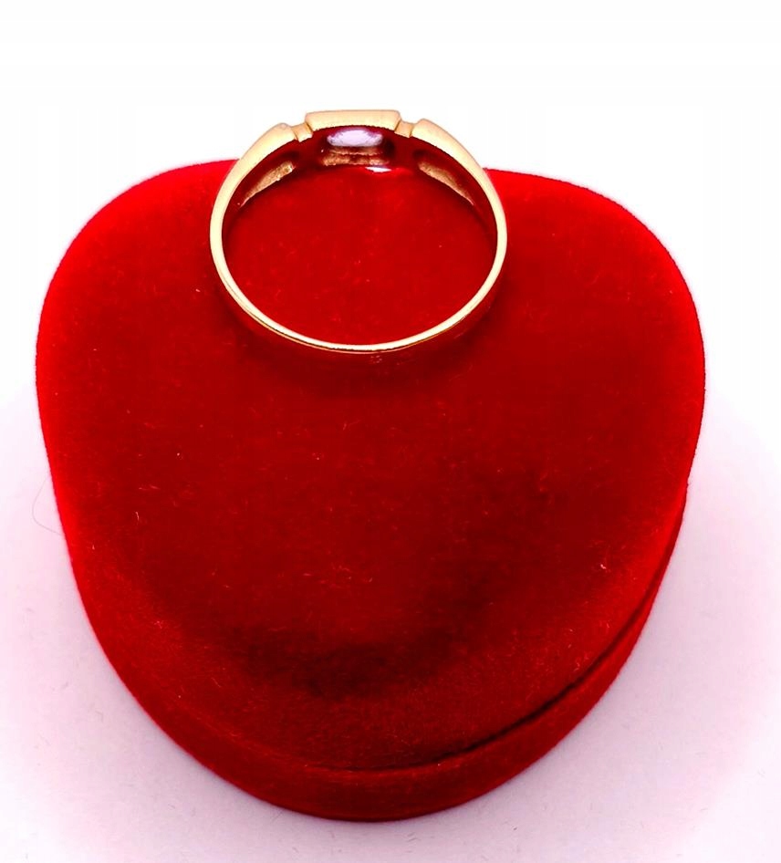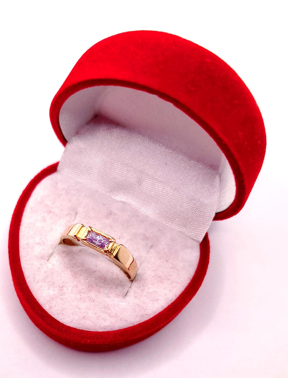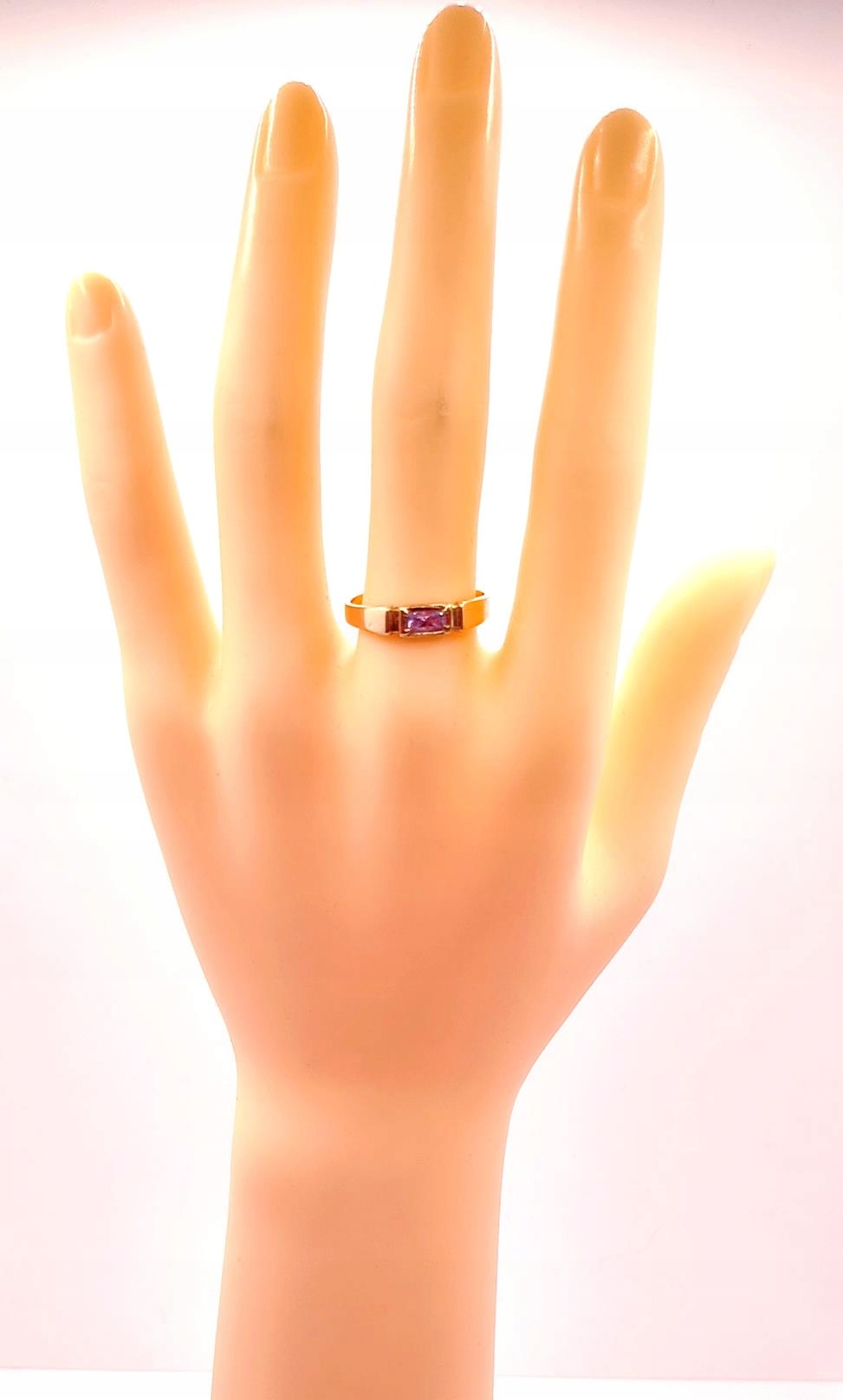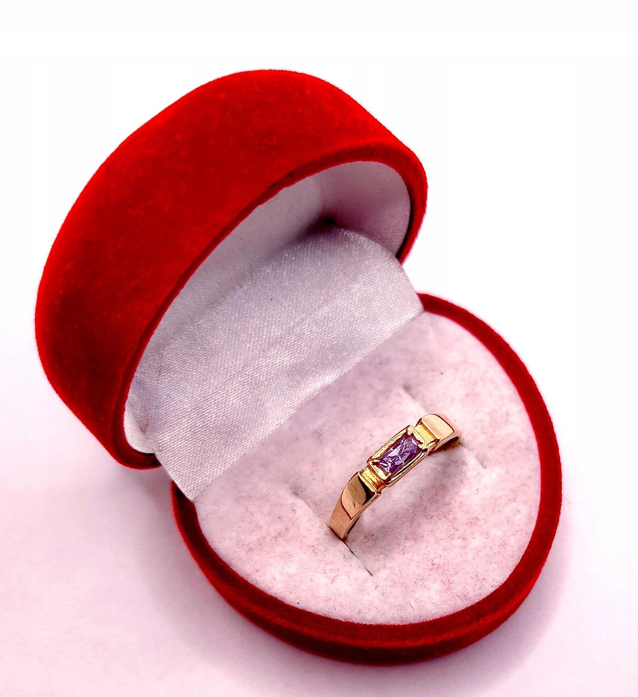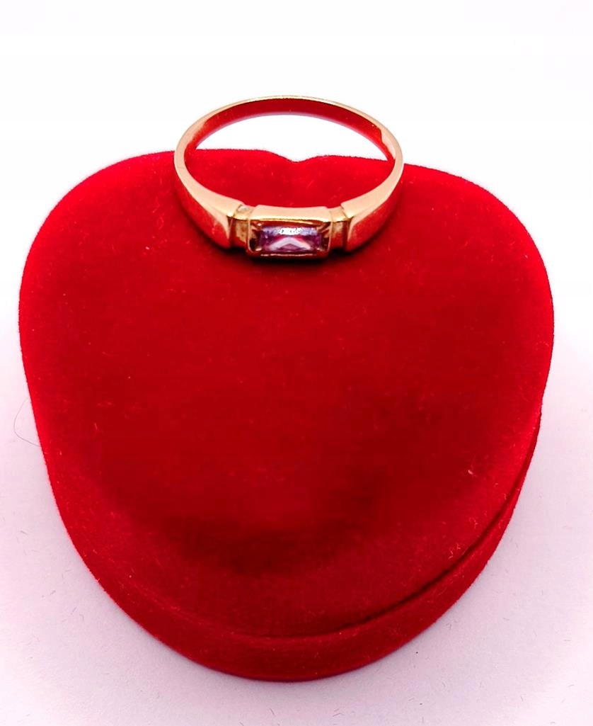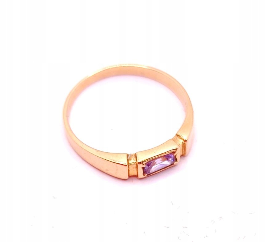 W ofercie sprzedaży posiadamy piękny, złoty pierścionek ozdobiony syntetycznym ametystem.