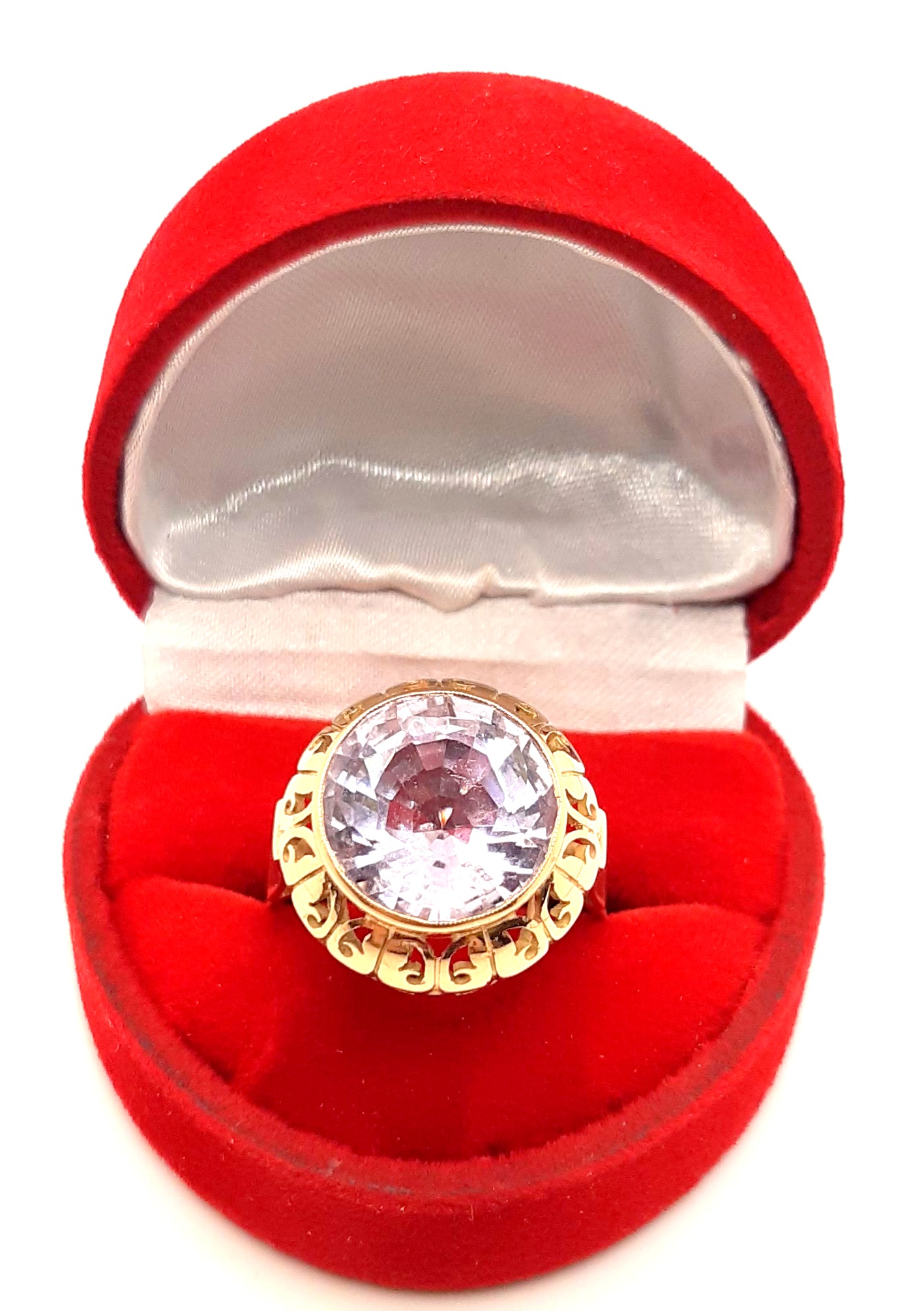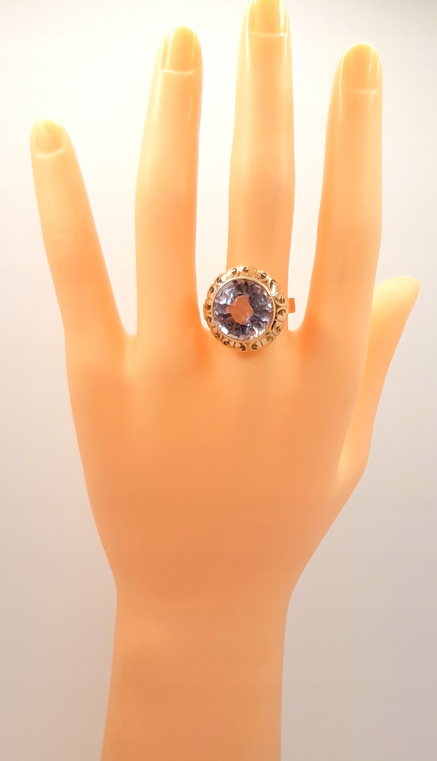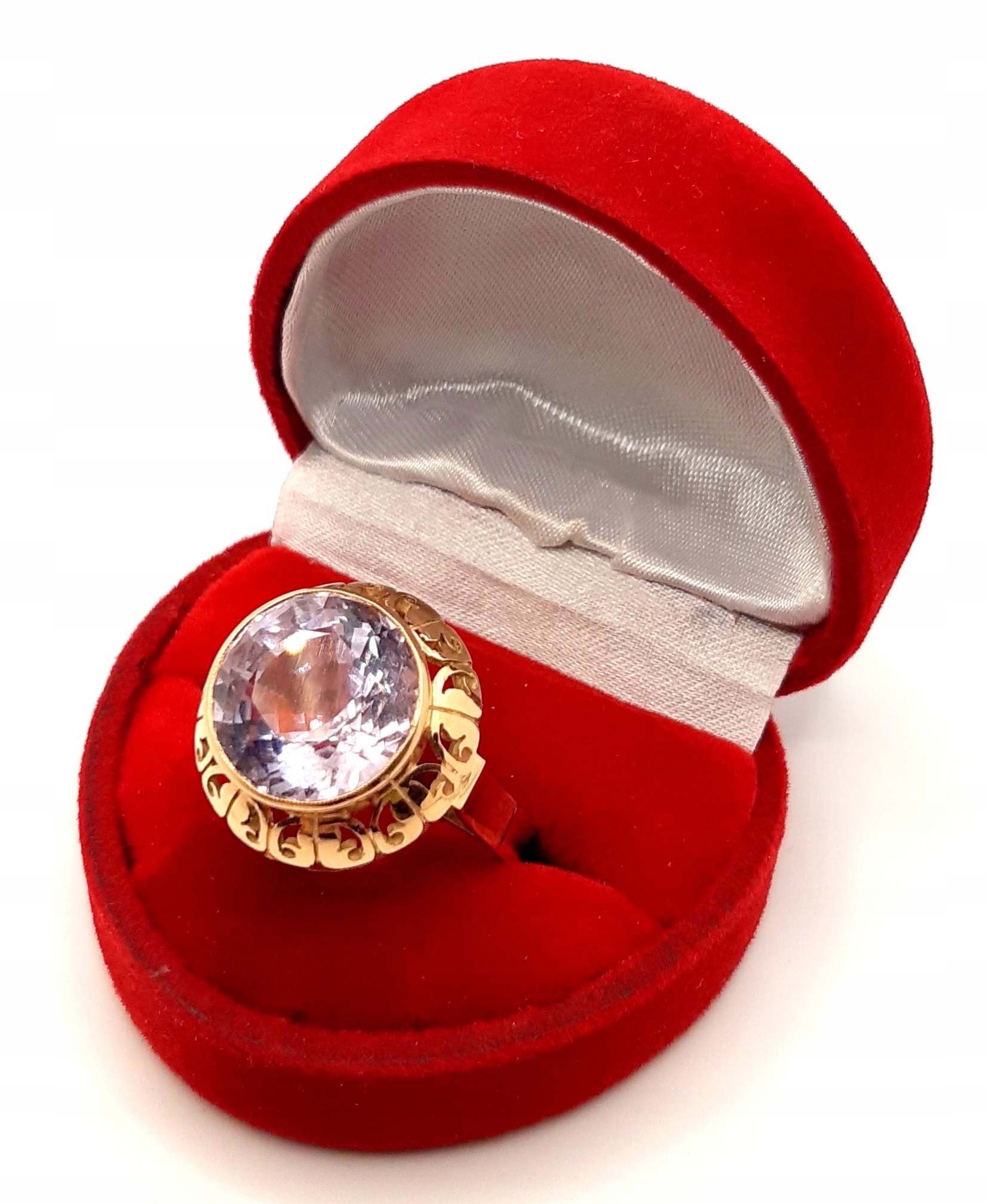 W ofercie na sprzedaż mamy dla Państwa piękny, złoty pierścionek ozdobiony syntetycznym ametystem.