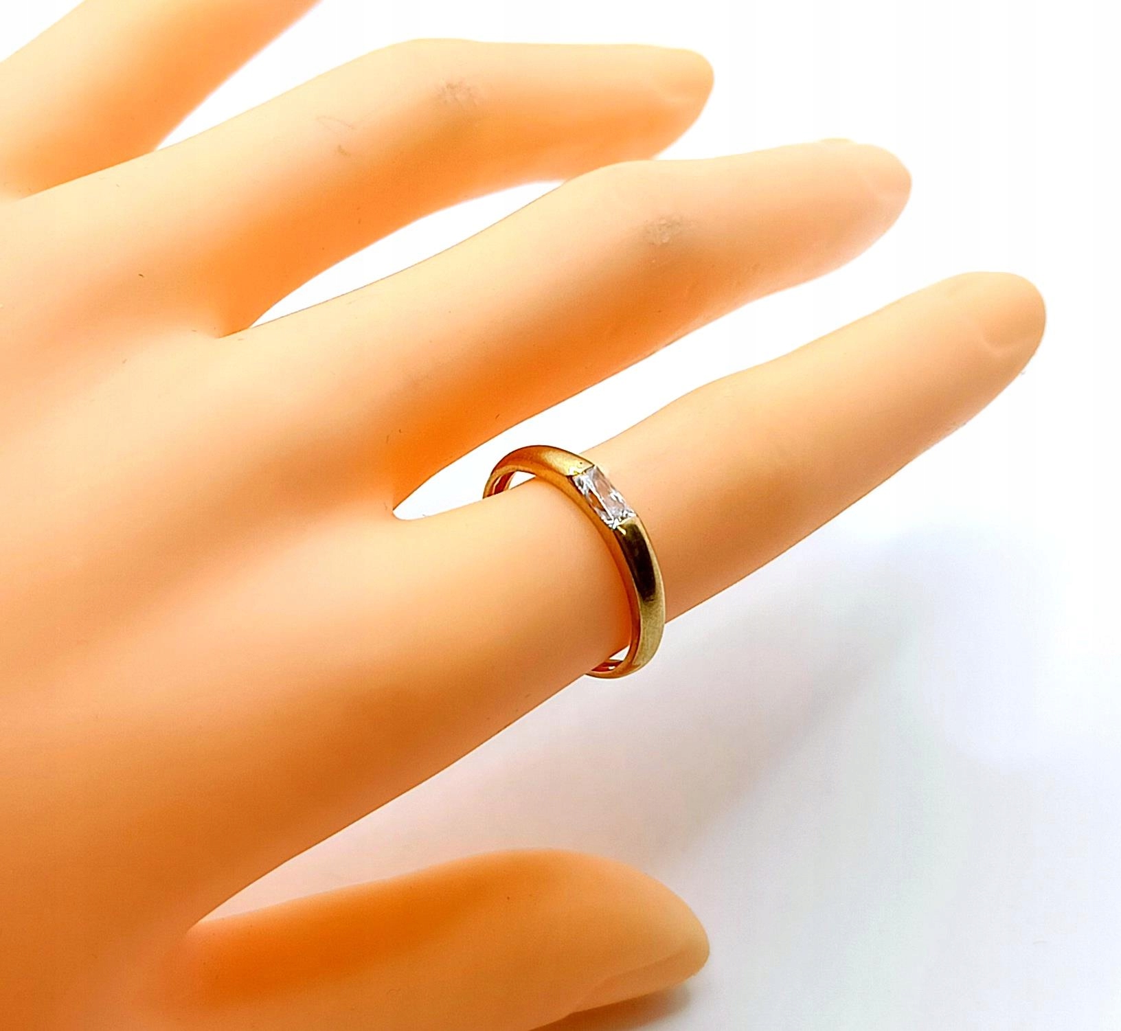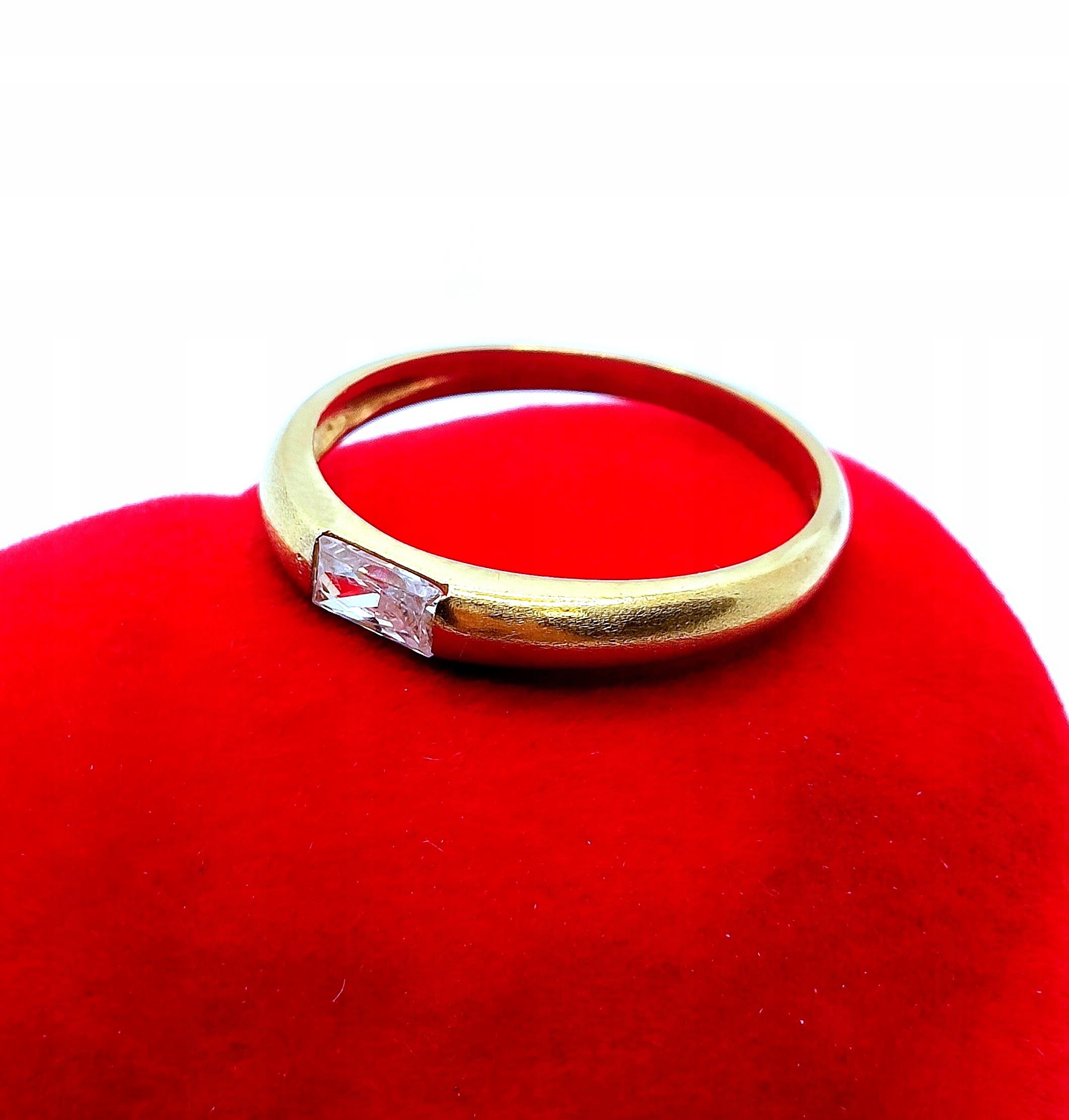 W ofercie na sprzedaż mamy dla Państwa złoty pierścionek, ozdobiony prostokątną cyrkonią.