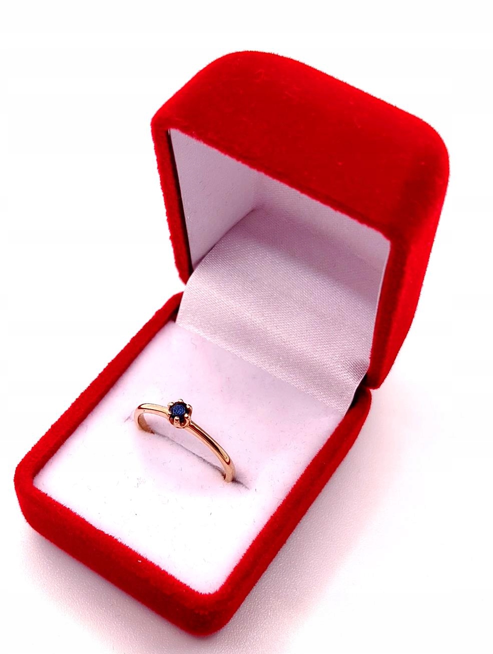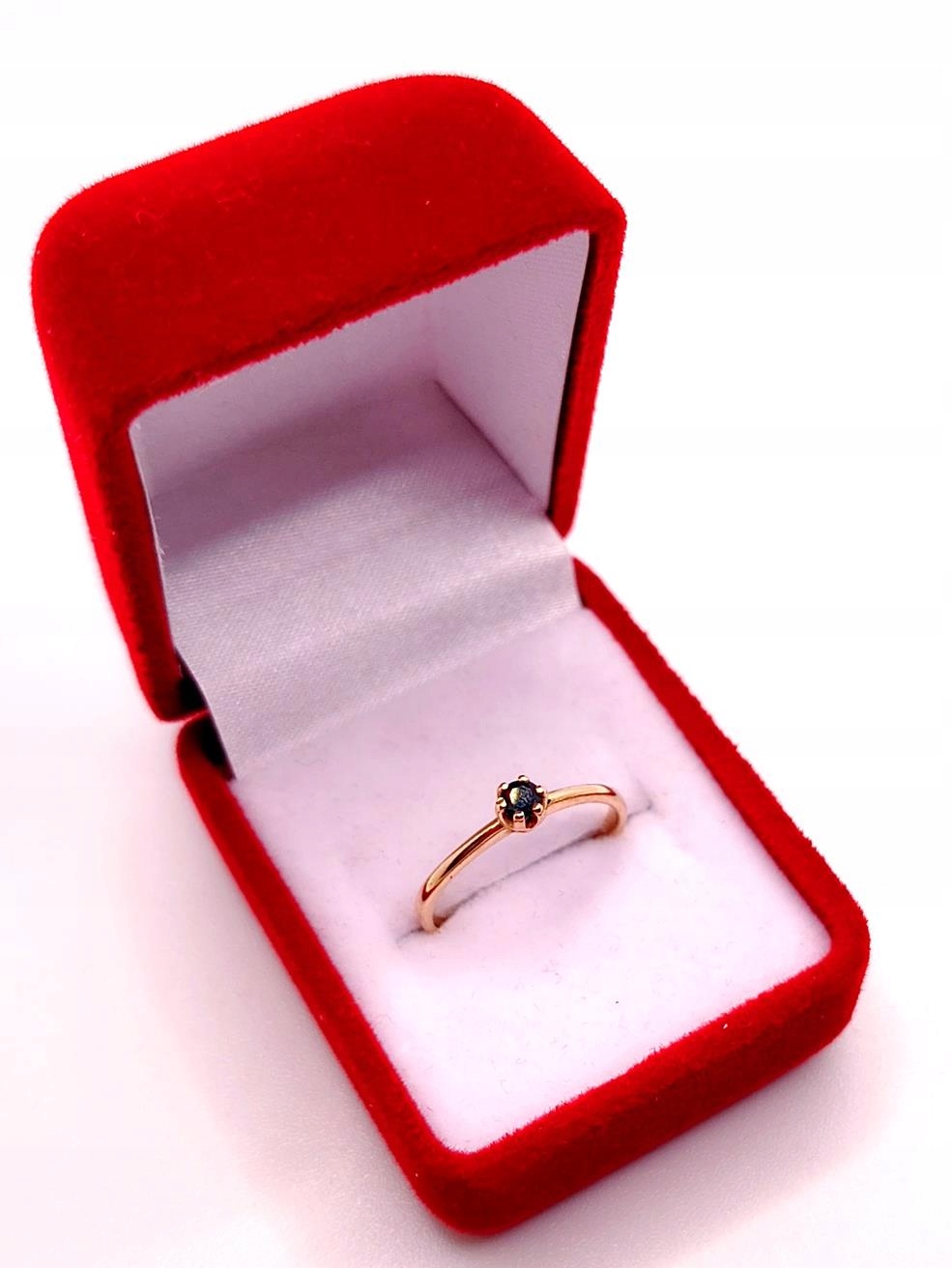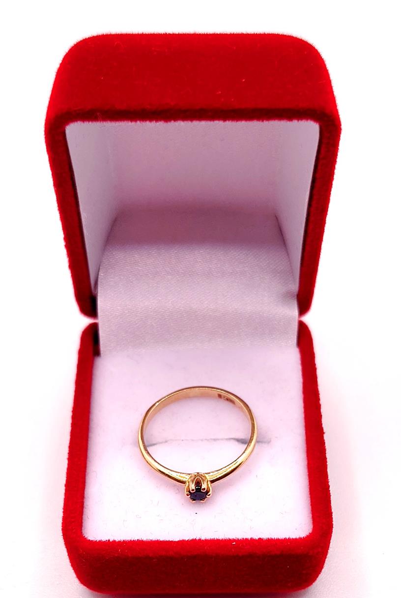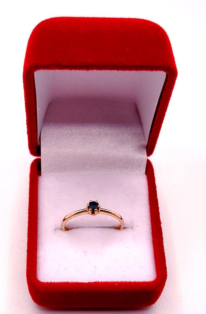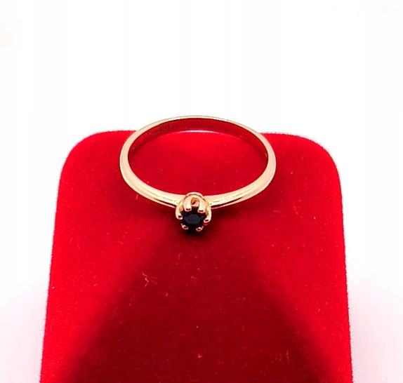 W ofercie sprzedaży posiadamy piękny, złoty pierścionek ozdobiony granatową cyrkonią.