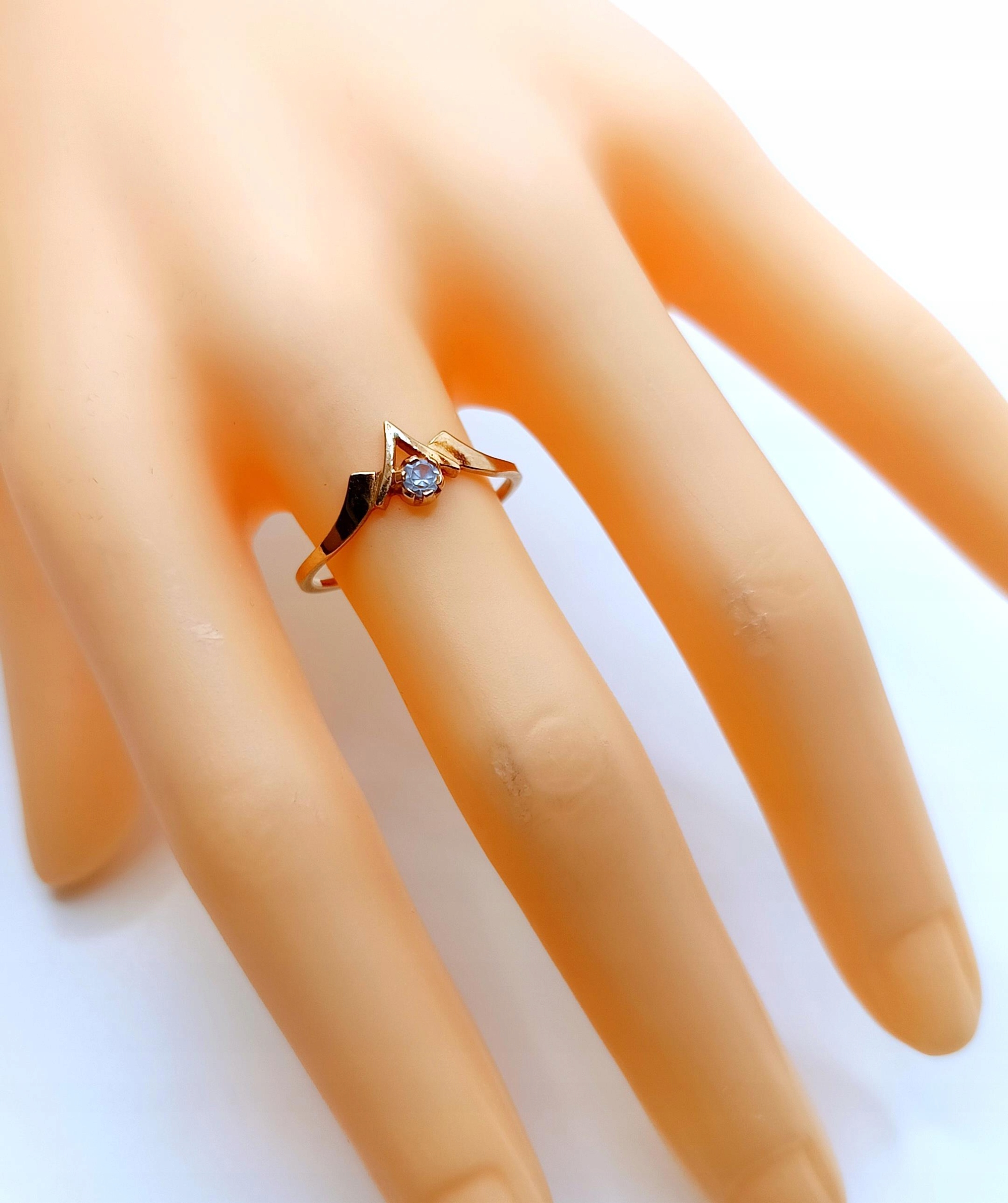 W ofercie na sprzedaż mamy dla Państwa złoty pierścionek ozdobiony błękitną cyrkonią .