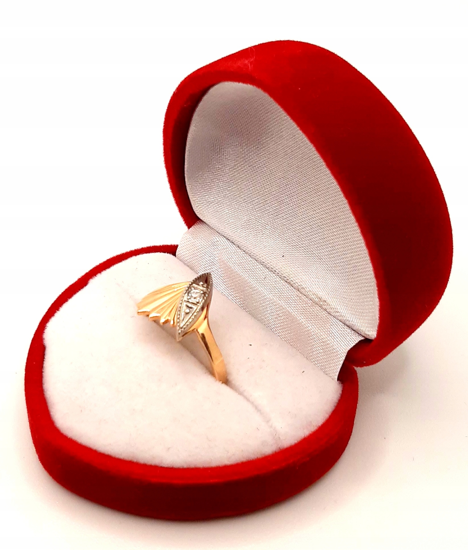 Wykonany z różowego i białego złota próby 585.