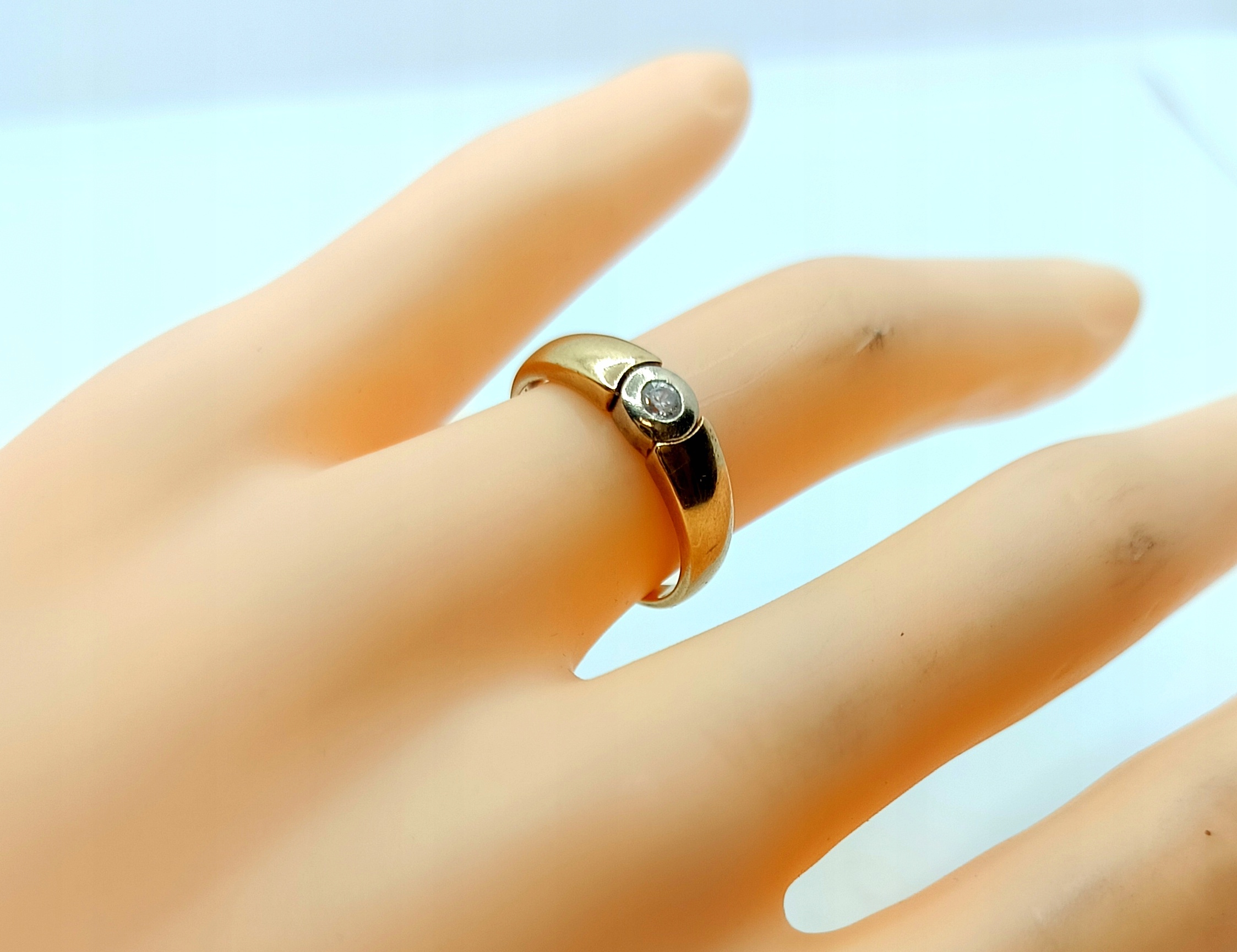 W ofercie na sprzedaż mamy dla Państwa złoty pierścionek ozdobiony cyrkonią.