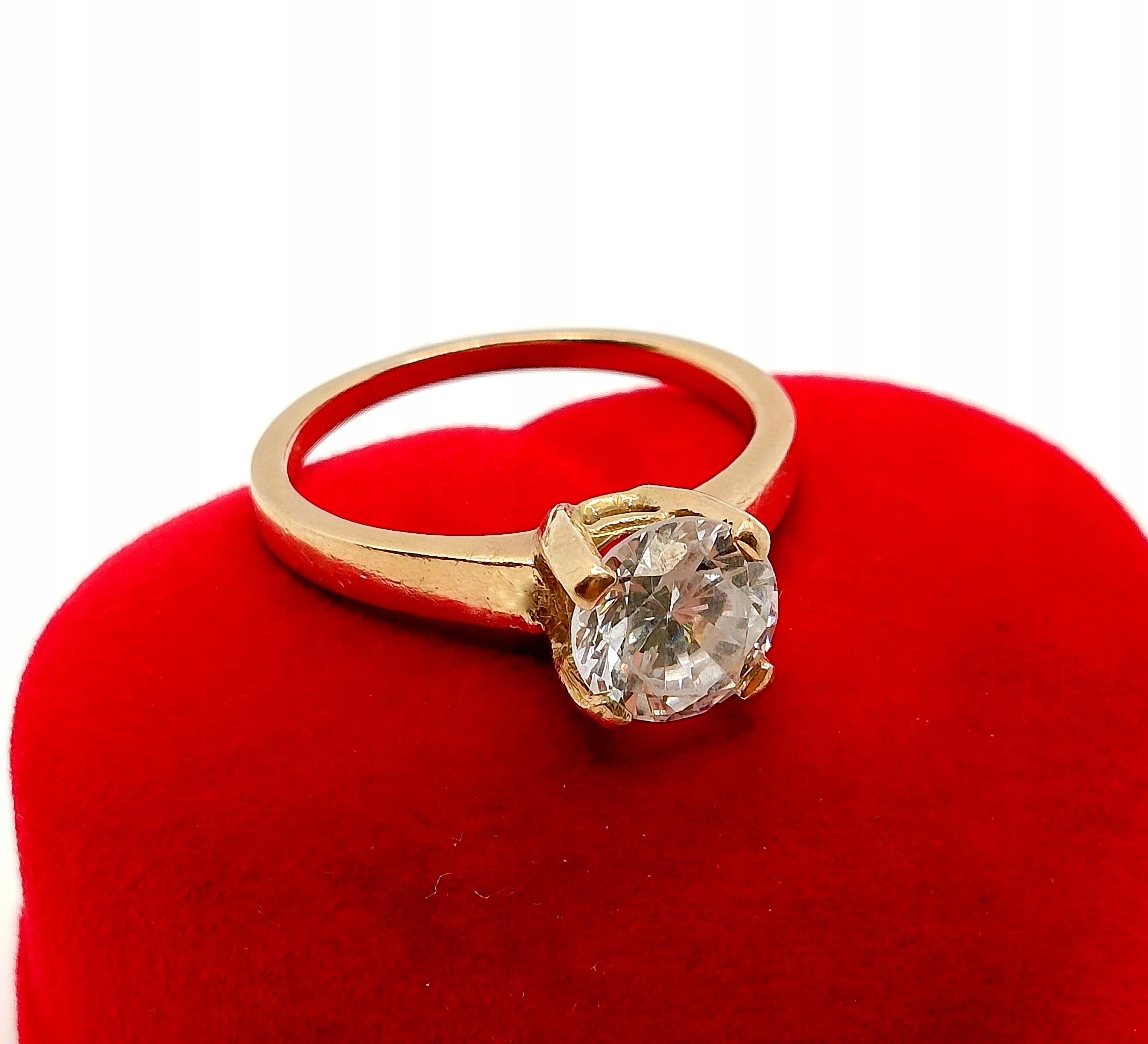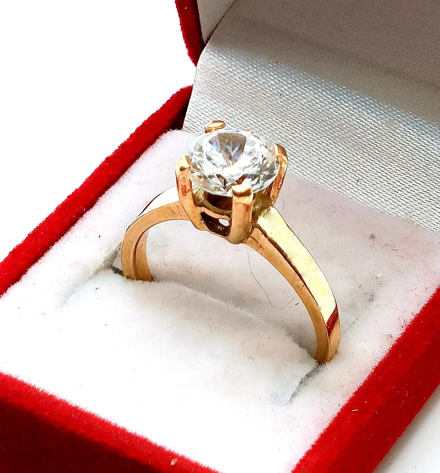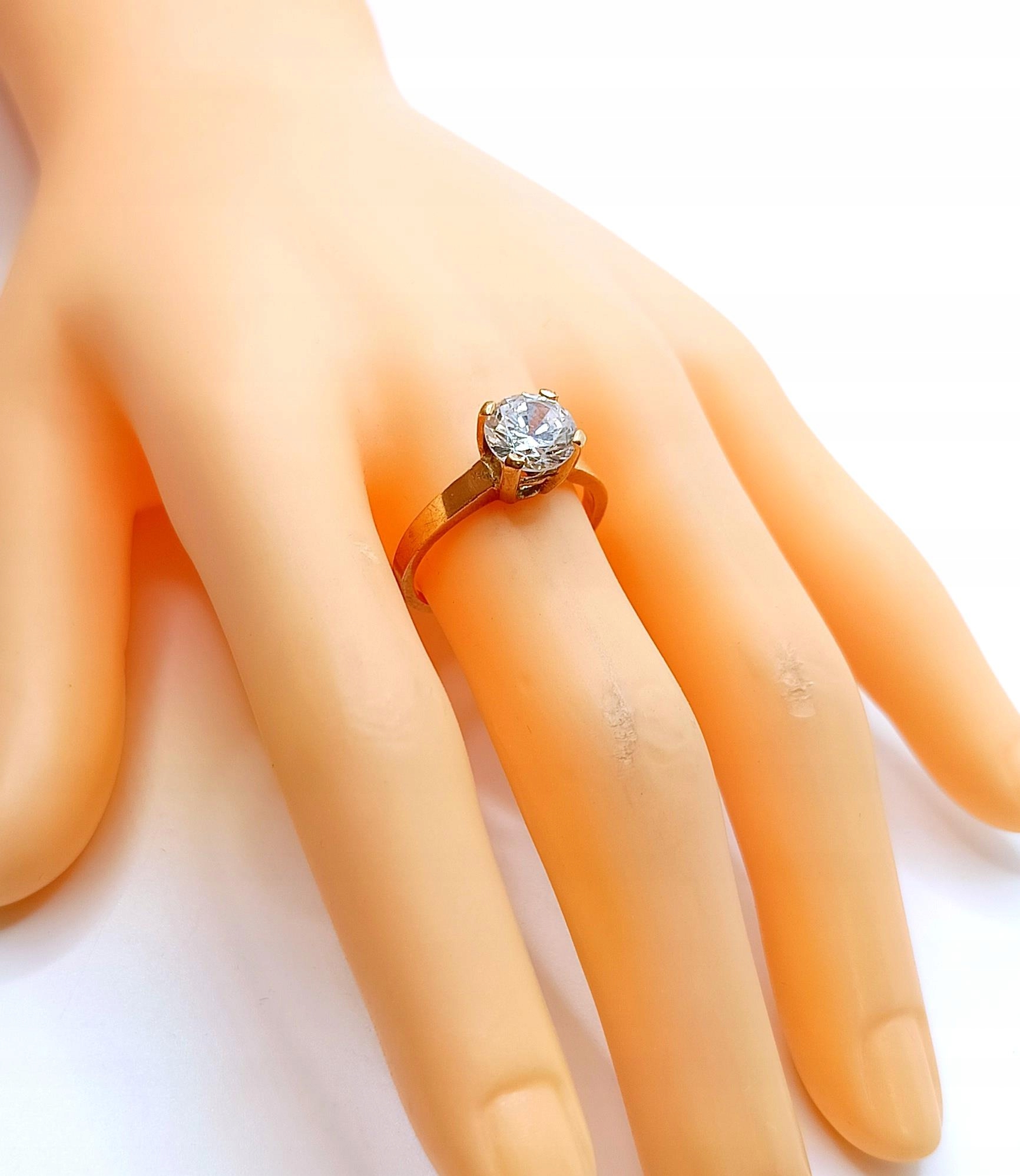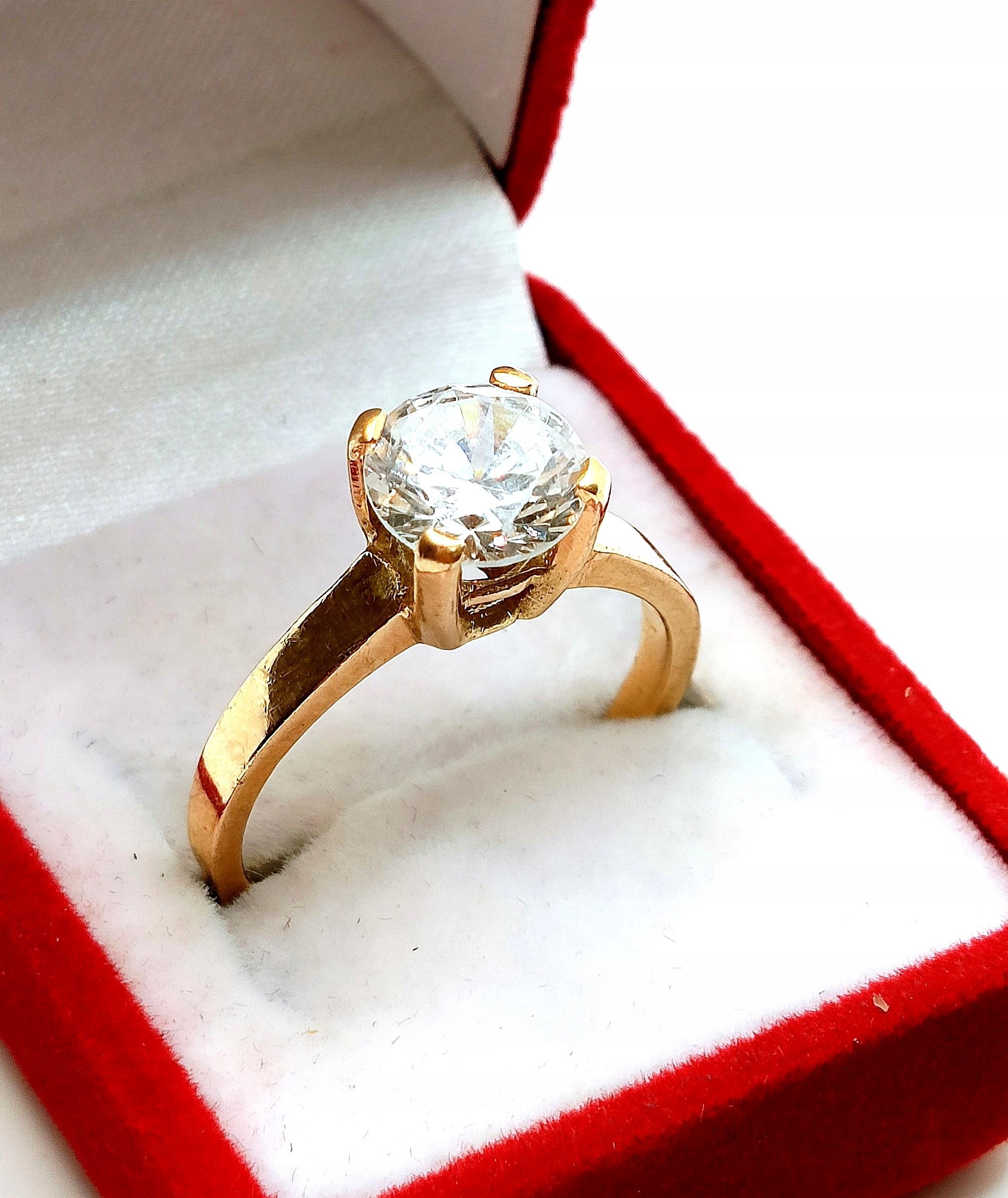W ofercie na sprzedaż mamy dla Państwa złoty pierścionek ozdobiony piękną okazałą cyrkonią, osadzoną na wysokiej koronie..