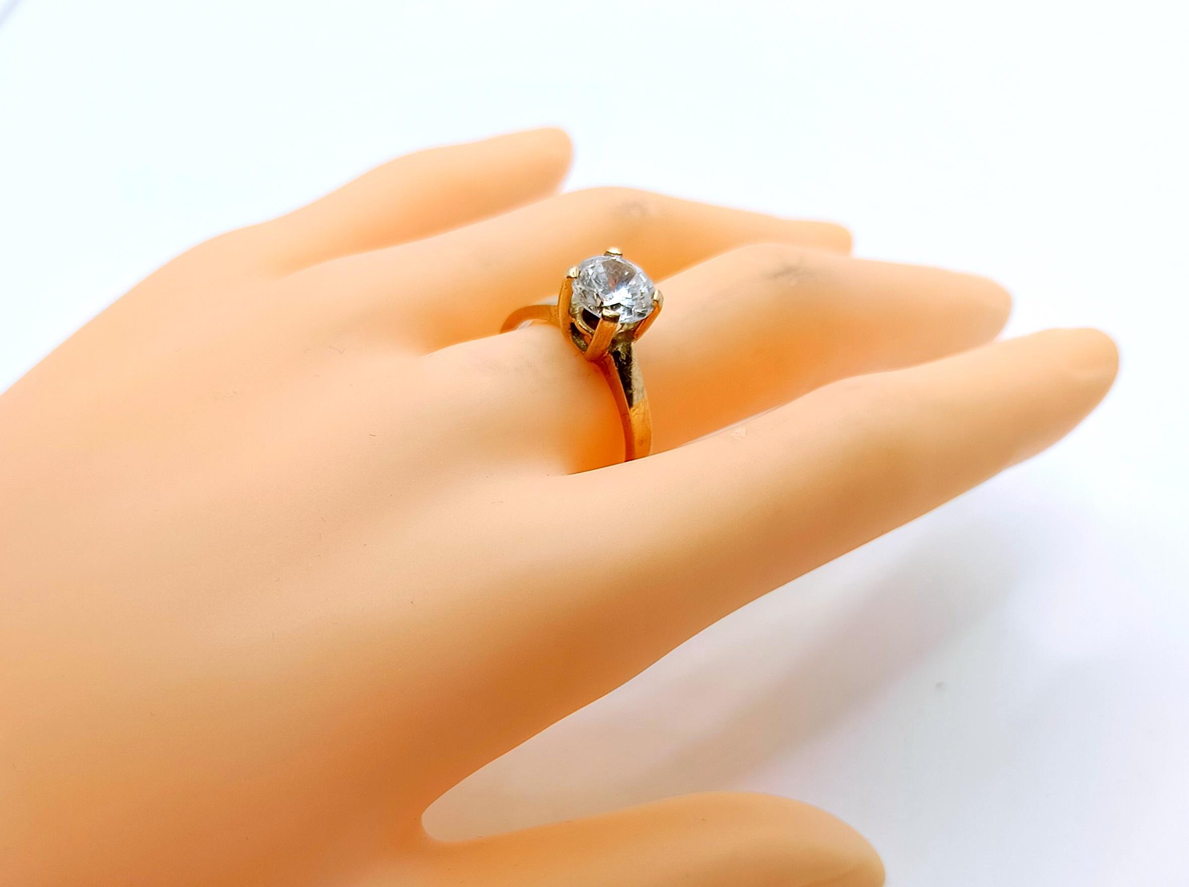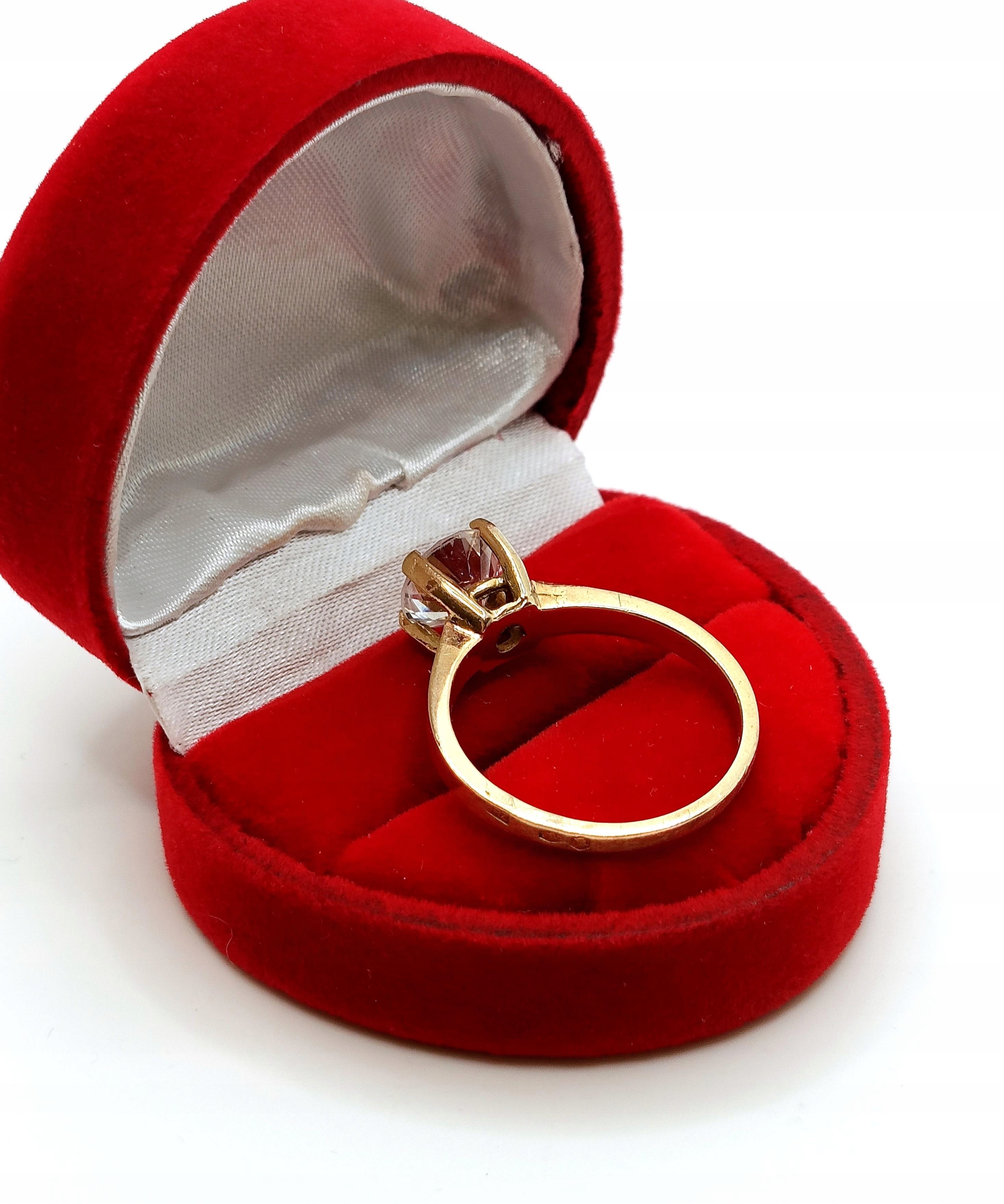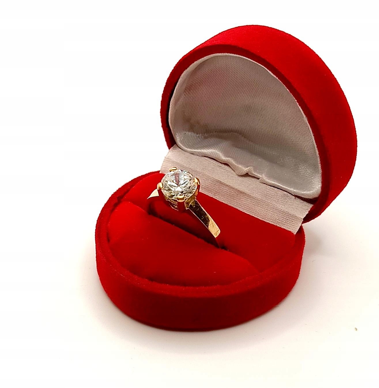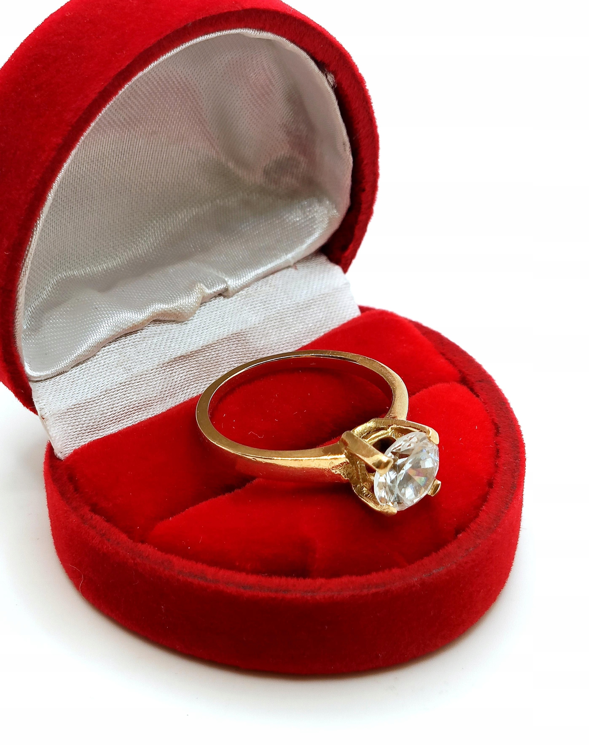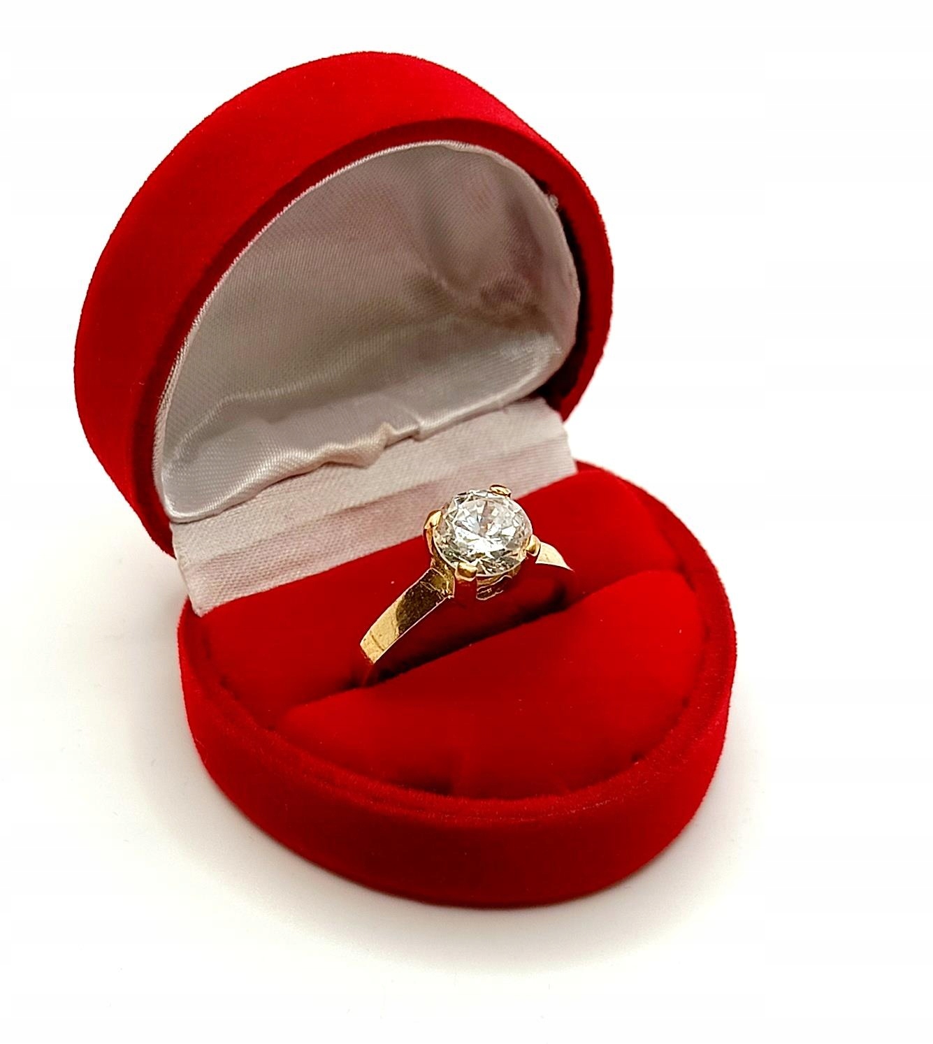 W ofercie na sprzedaż mamy dla Państwa złoty pierścionek ozdobiony piękną okazałą cyrkonią, osadzoną na wysokiej koronie..