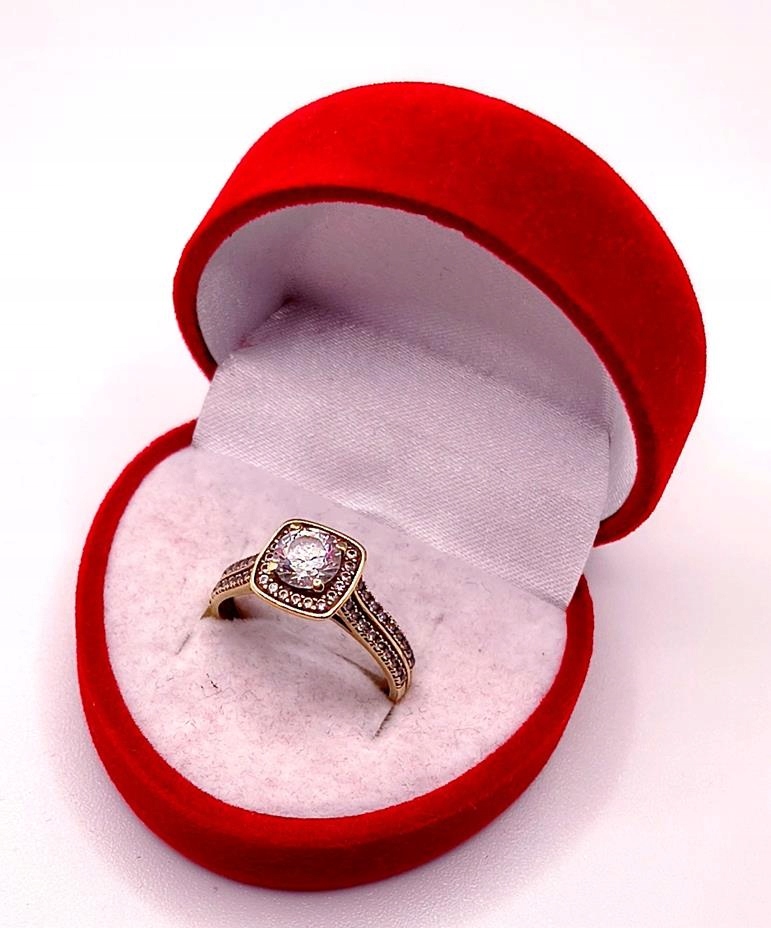 W ofercie sprzedaży posiadamy piękny, złoty pierścionek ozdobiony cyrkoniami.