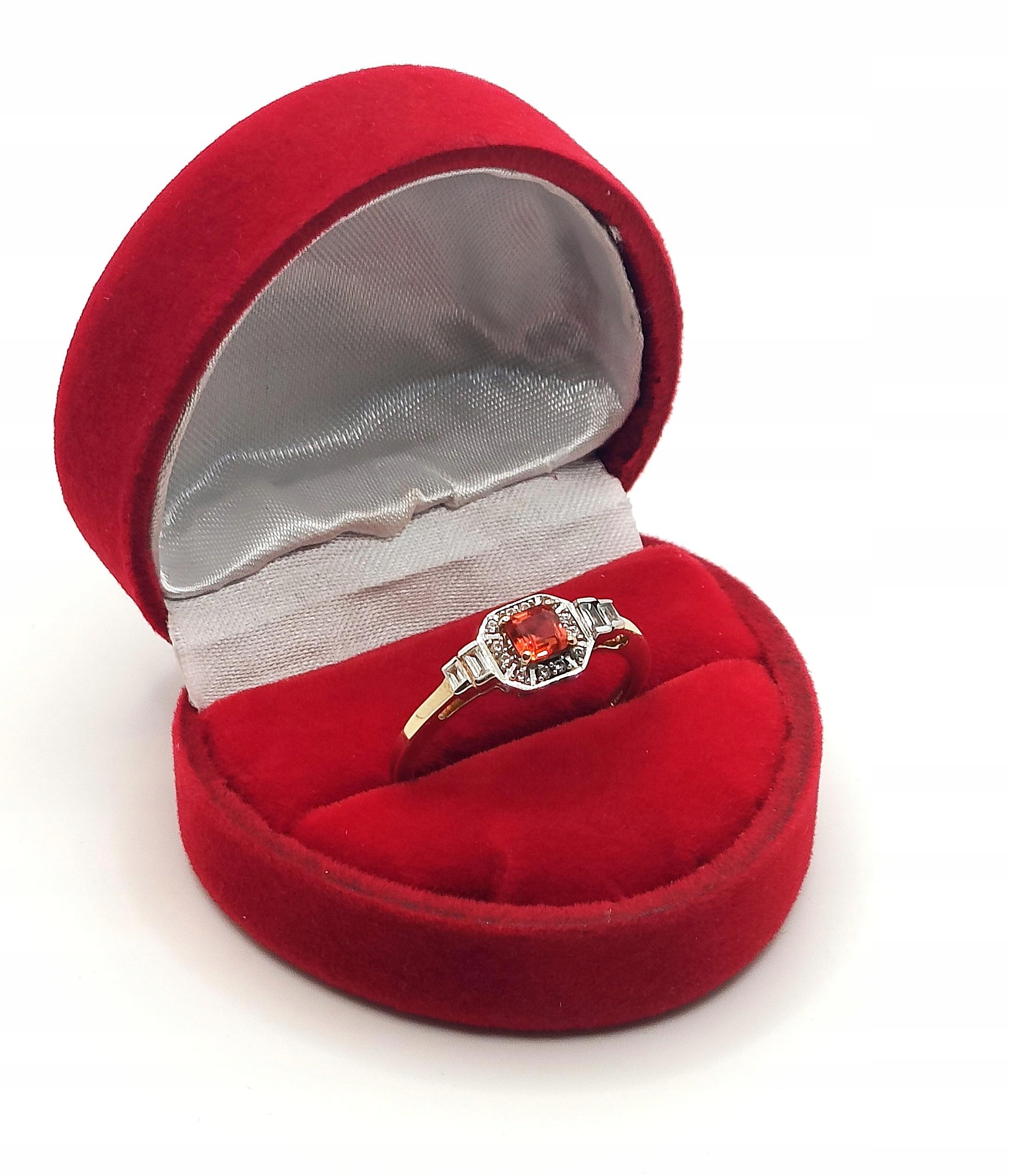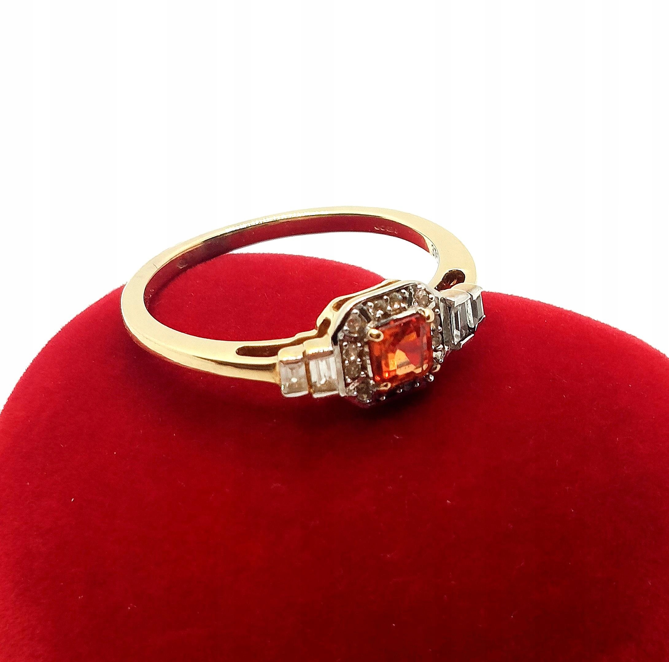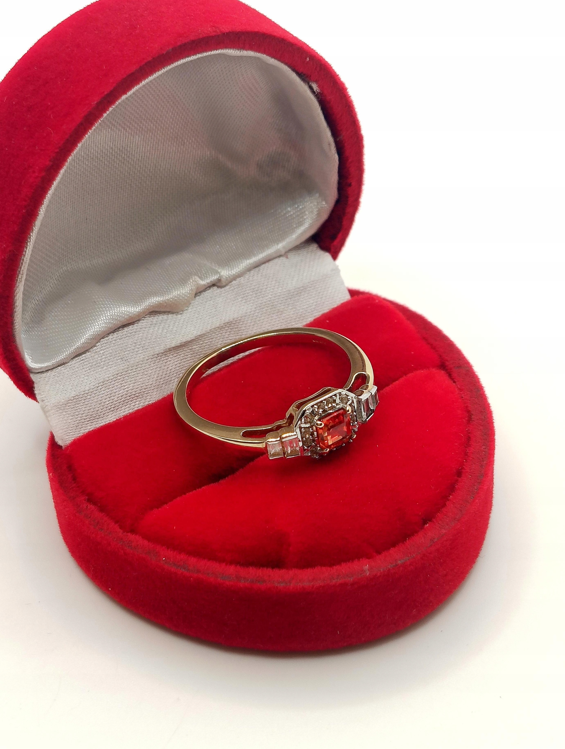 Oferujemy na sprzedaż piękny, złoty pierścionek ozdobiony cyrkoniami. Centralny kamień o pięknej pomarańczowej barwie.
