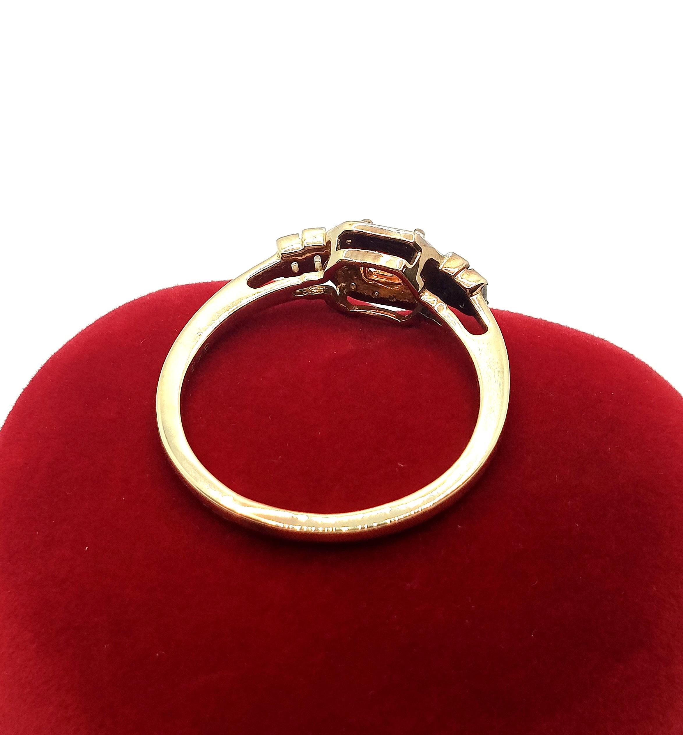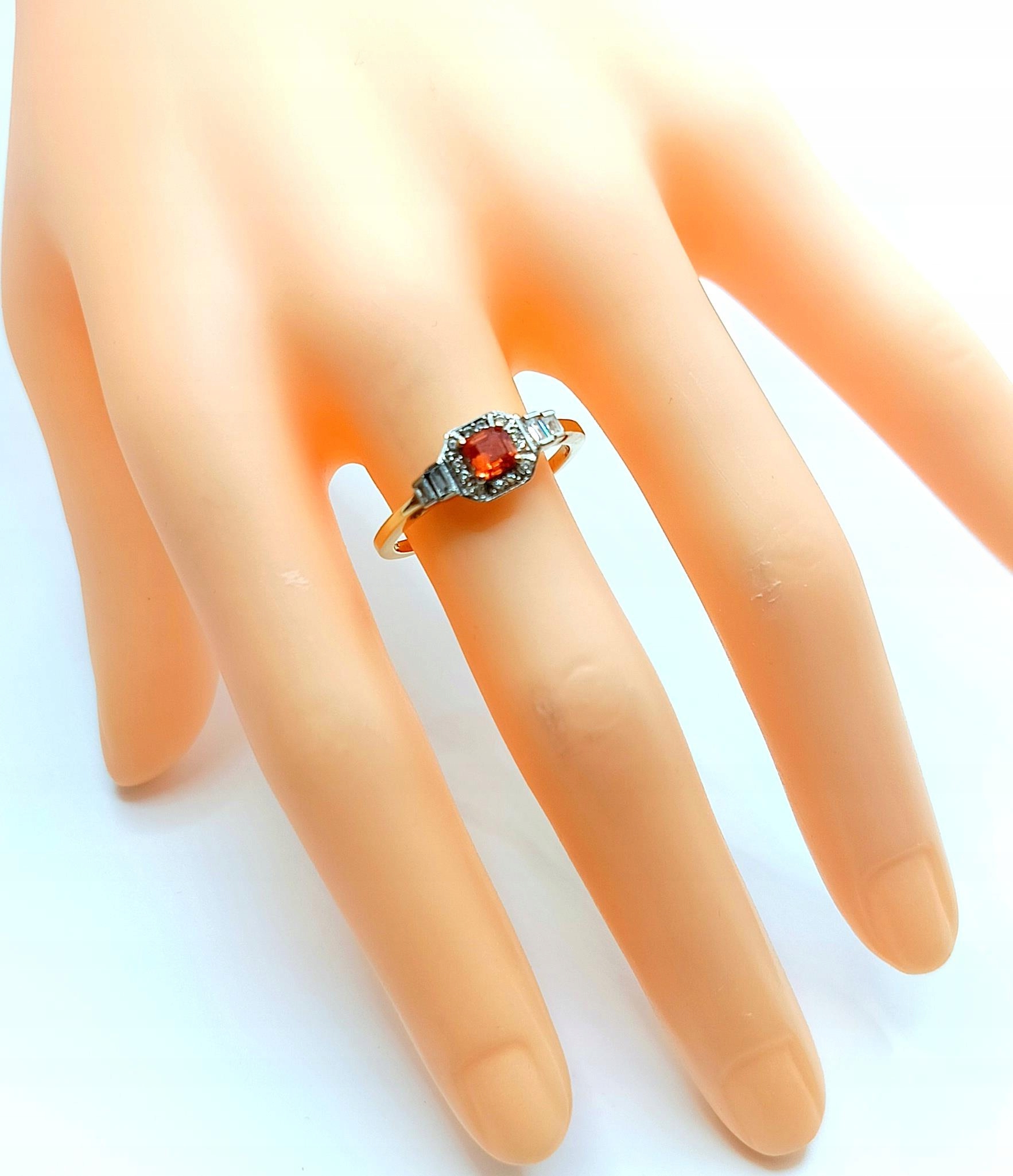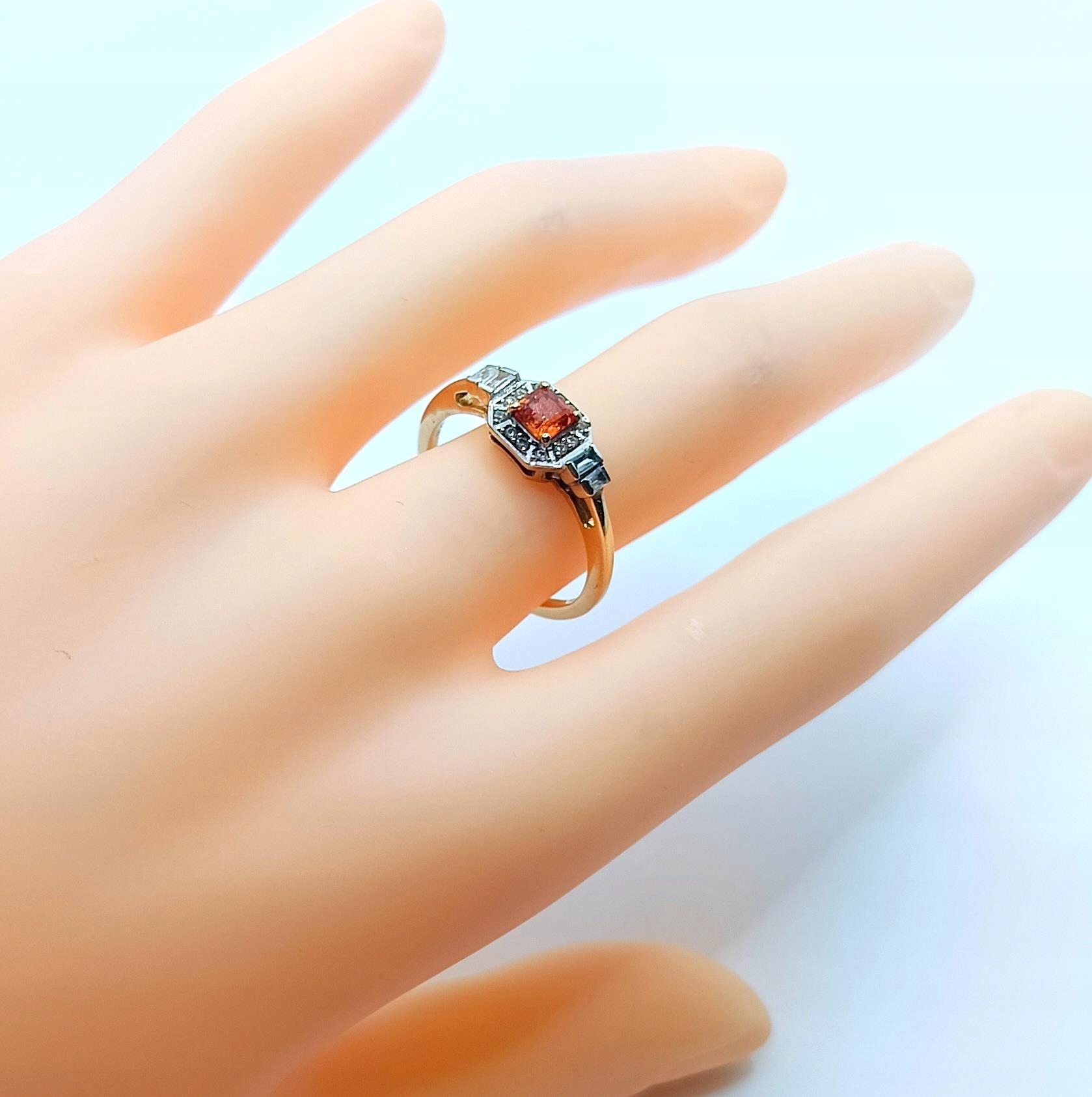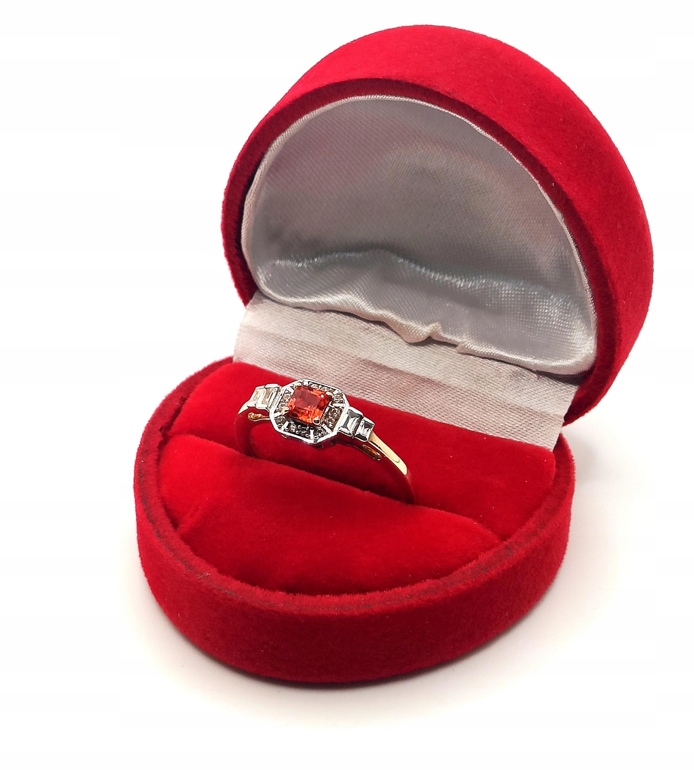 Oferujemy na sprzedaż piękny, złoty pierścionek ozdobiony cyrkoniami. Centralny kamień o pięknej pomarańczowej barwie.